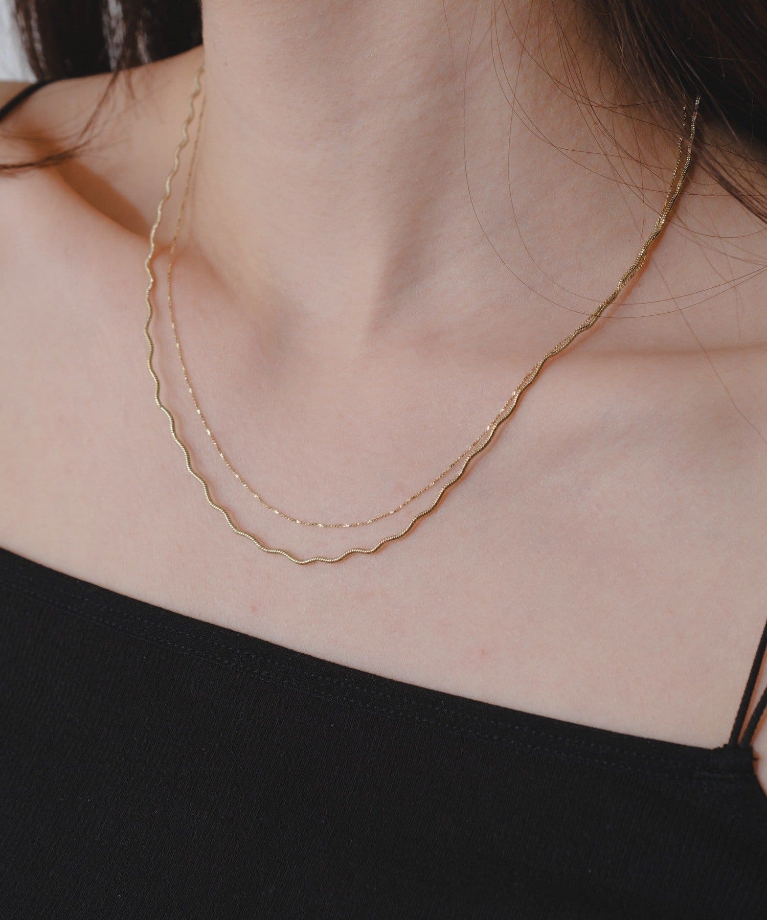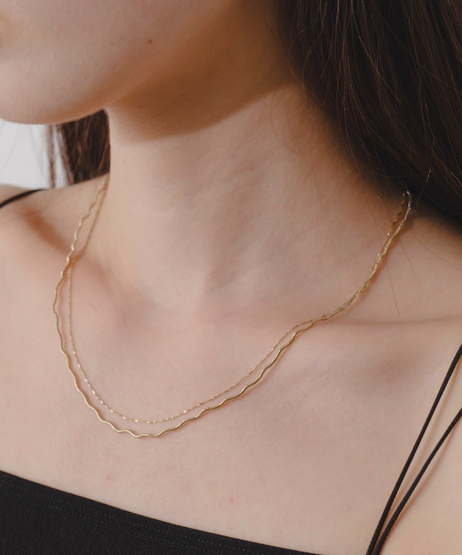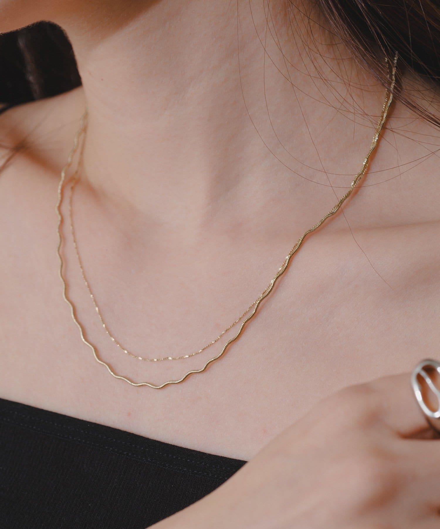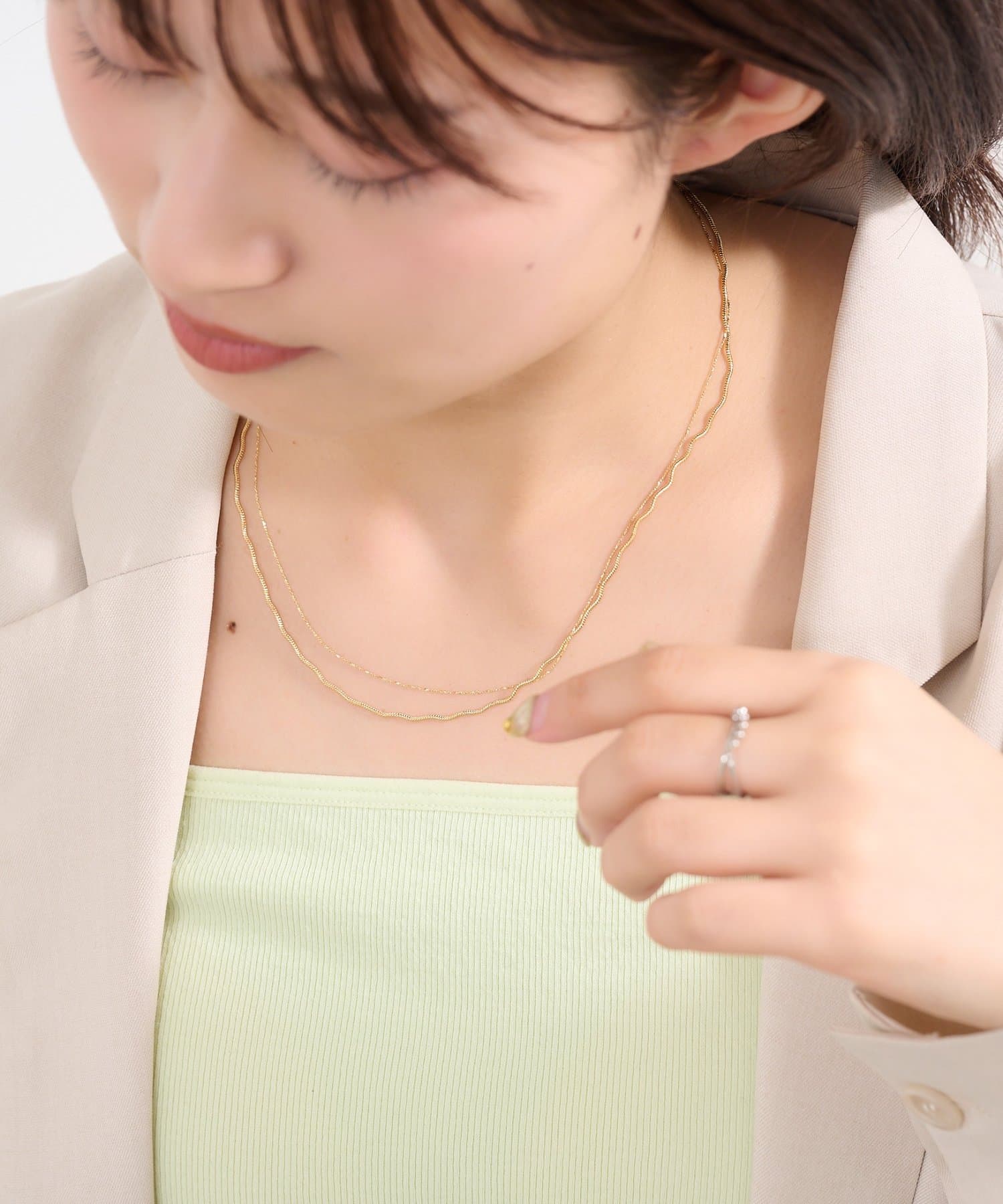 華奢な二種類のチェーンが特徴のレイヤードネックレス。
