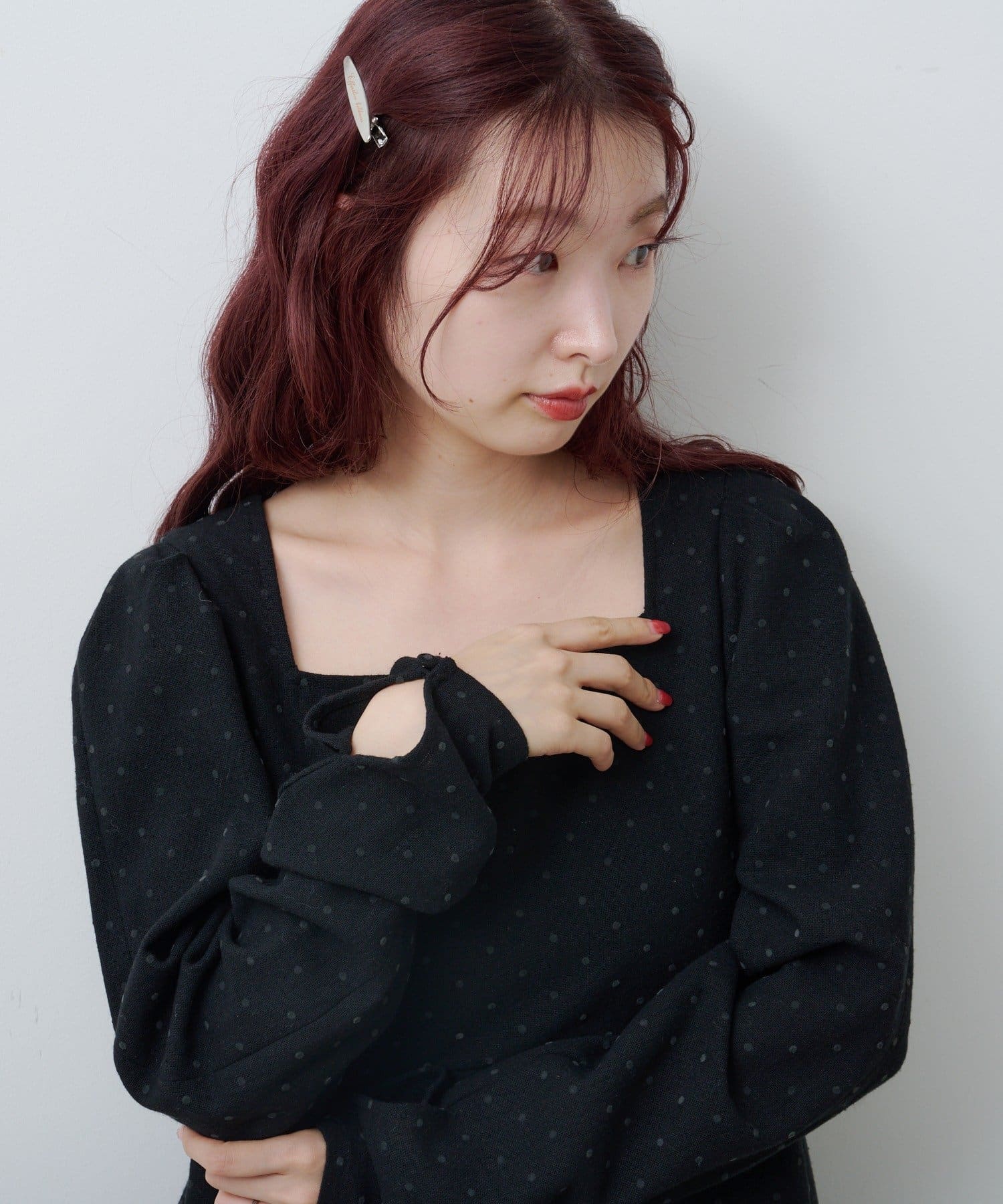 上品なツヤ感とミニマルなフォルムで、どんなヘアスタイルにもマッチ。