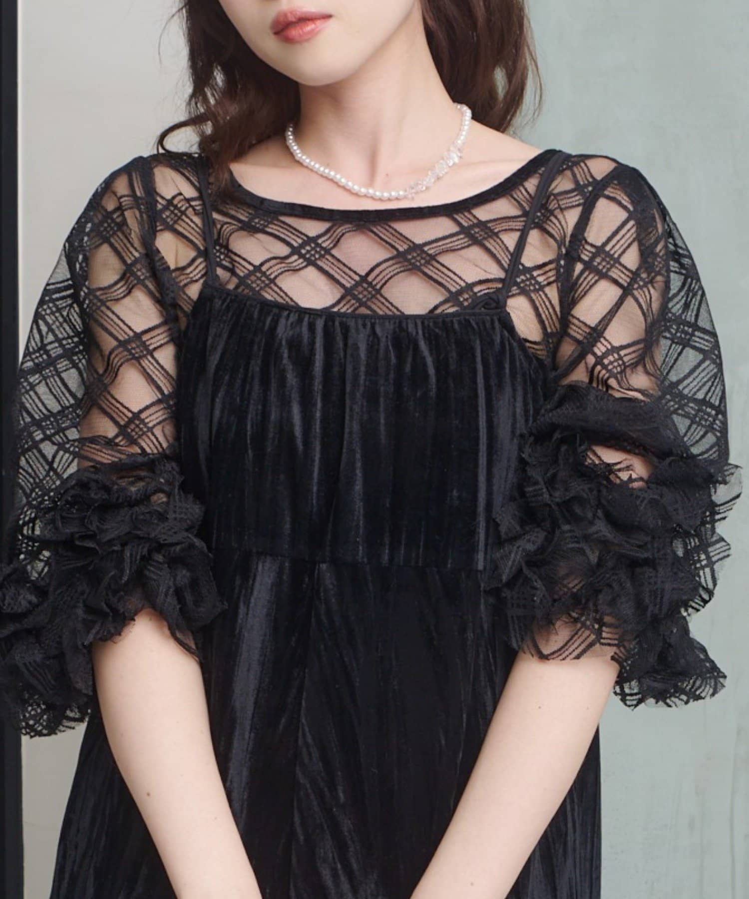 クラシカルな雰囲気の中に、透明感のあるディテールが軽やかな印象をプラスし、顔まわりに華やかさと抜け感を与えてくれます。