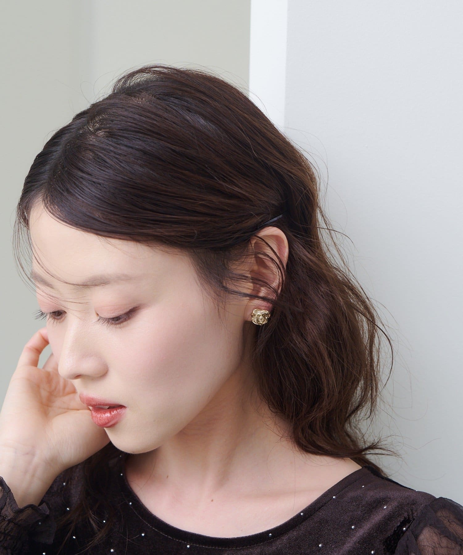 立体感のあるフォルムが耳元に上品な華やかさを添え、特別な日の装いをより一層引き立てます。