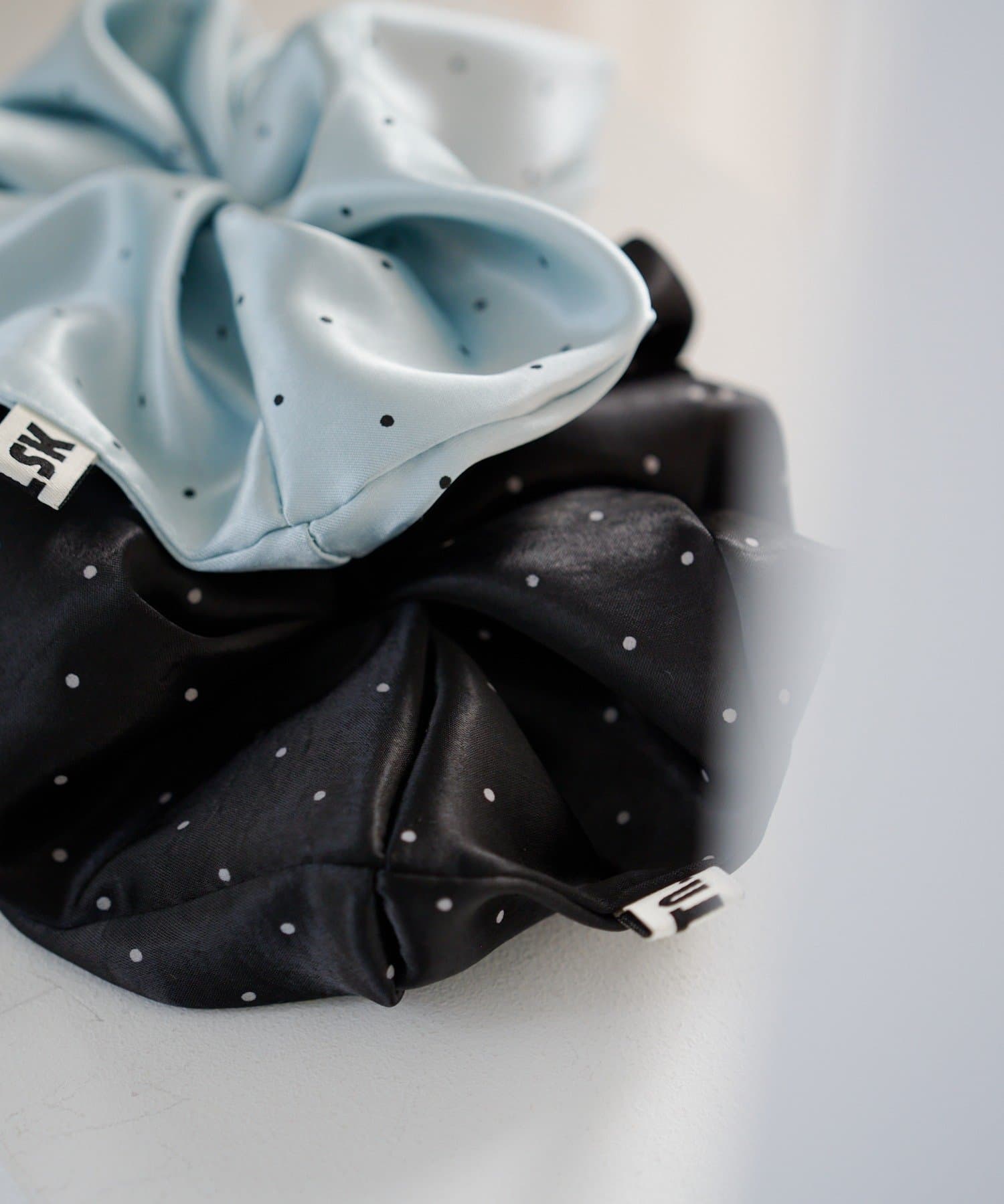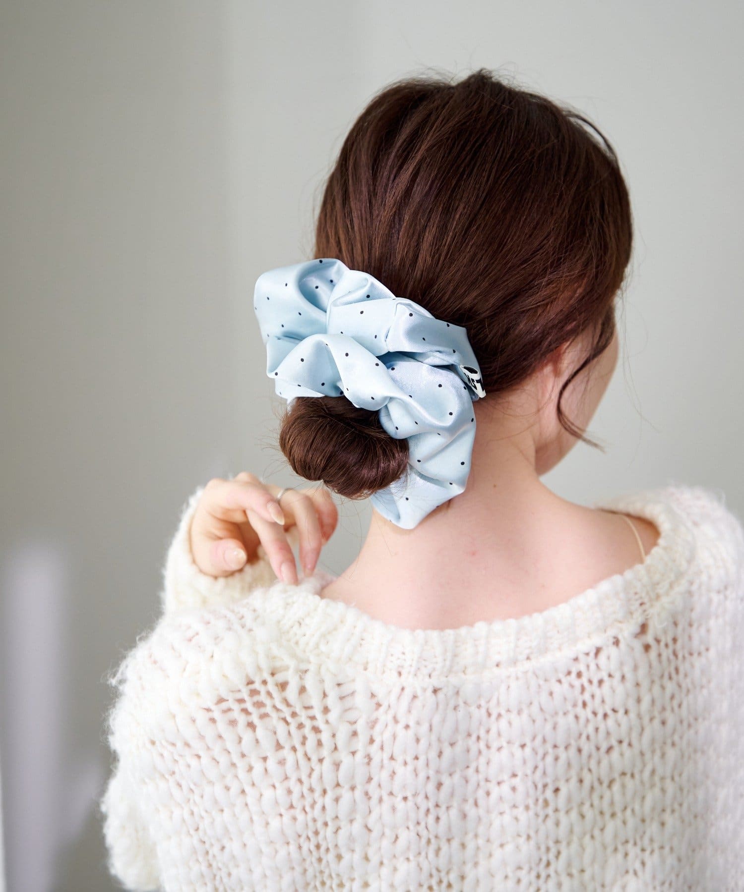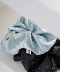ツヤ感とドットが可愛い、軽やかサテンの上品シュシュ