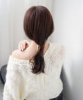 普段のラフなひとつ結びに添えるだけで、女性らしい雰囲気がぐっとアップ。