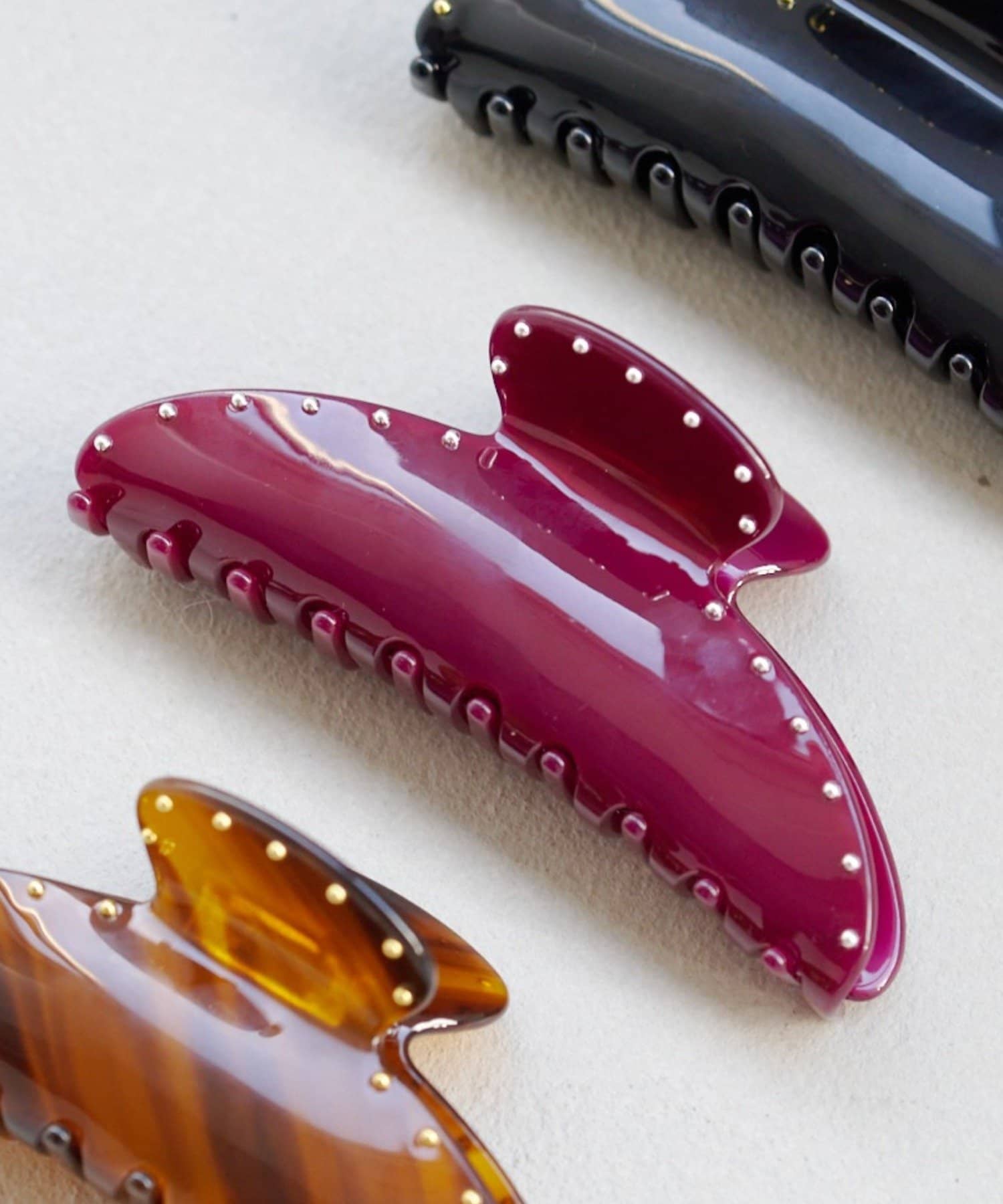上品なカラーに、細かいスタッズを丁寧にあしらった高級感のあるバンスクリップ。