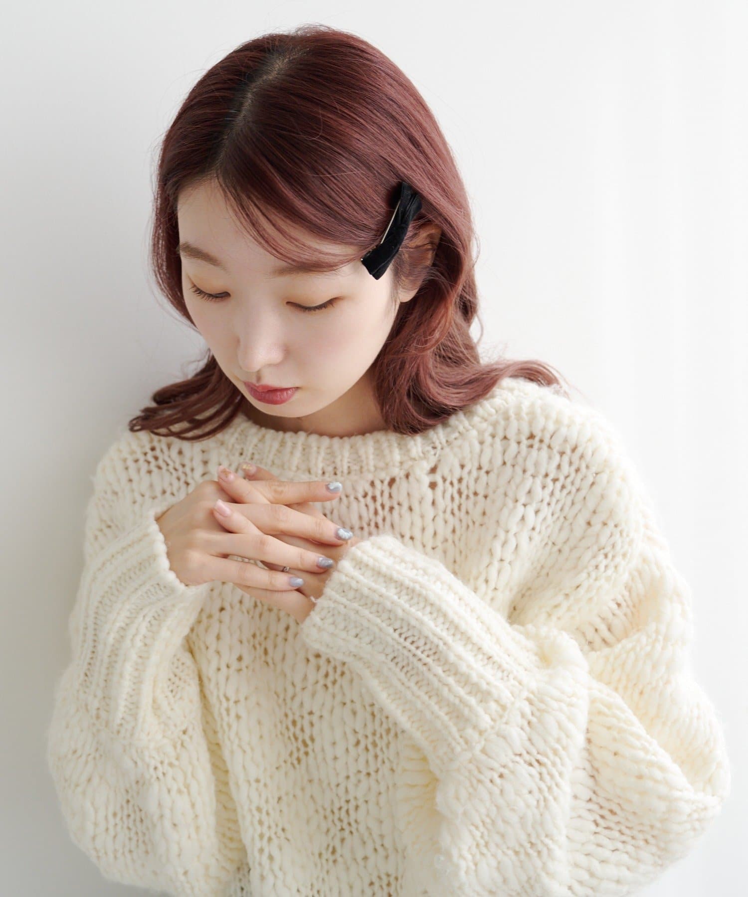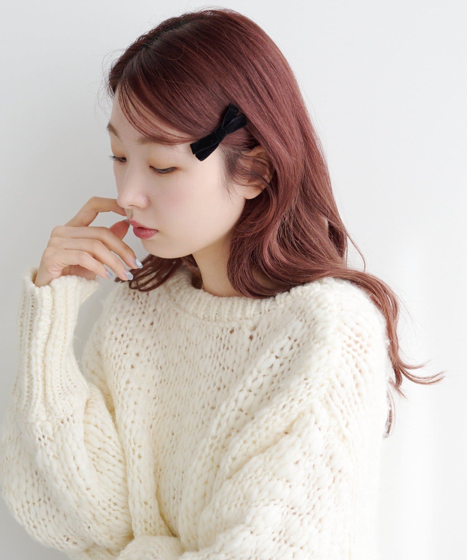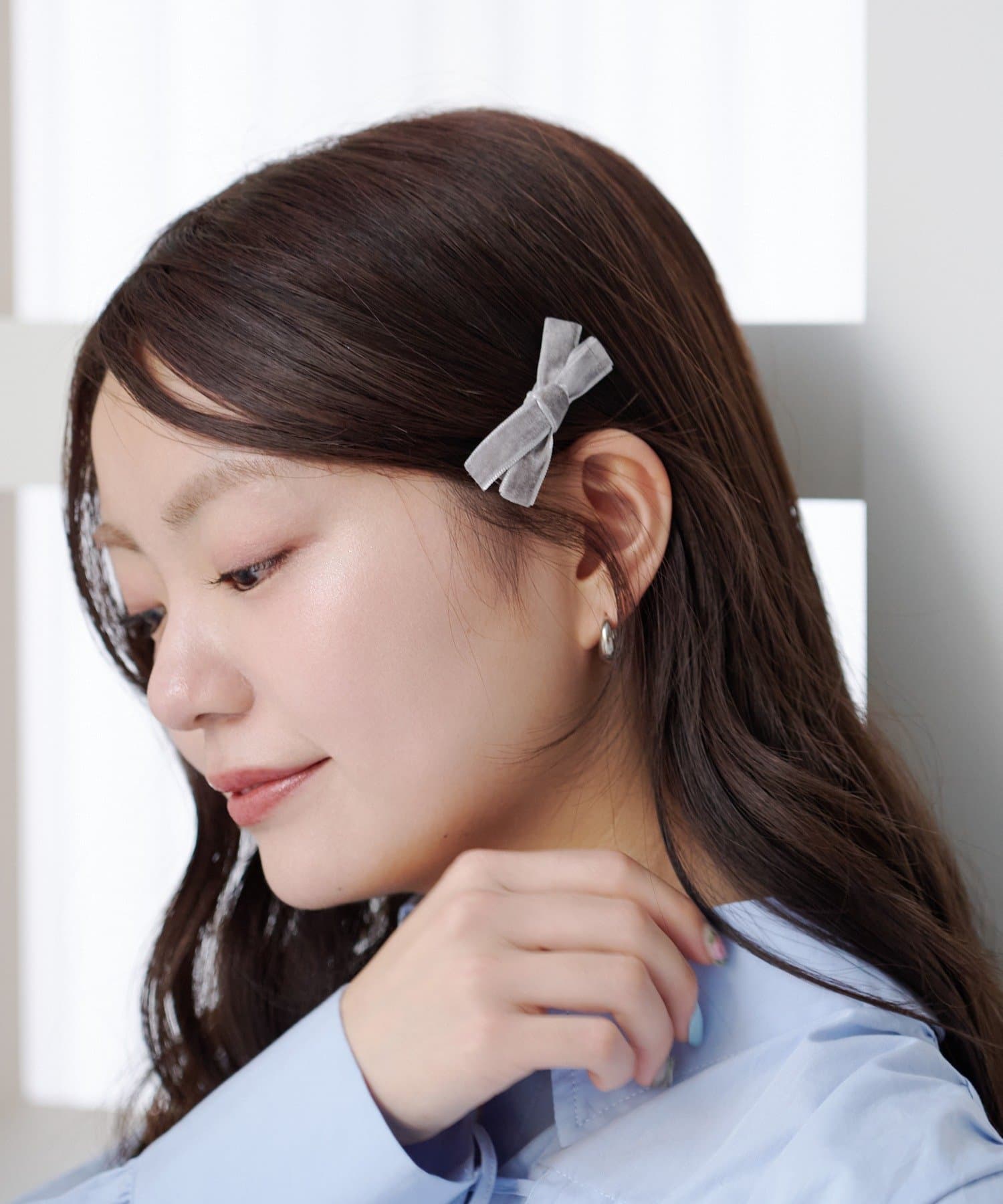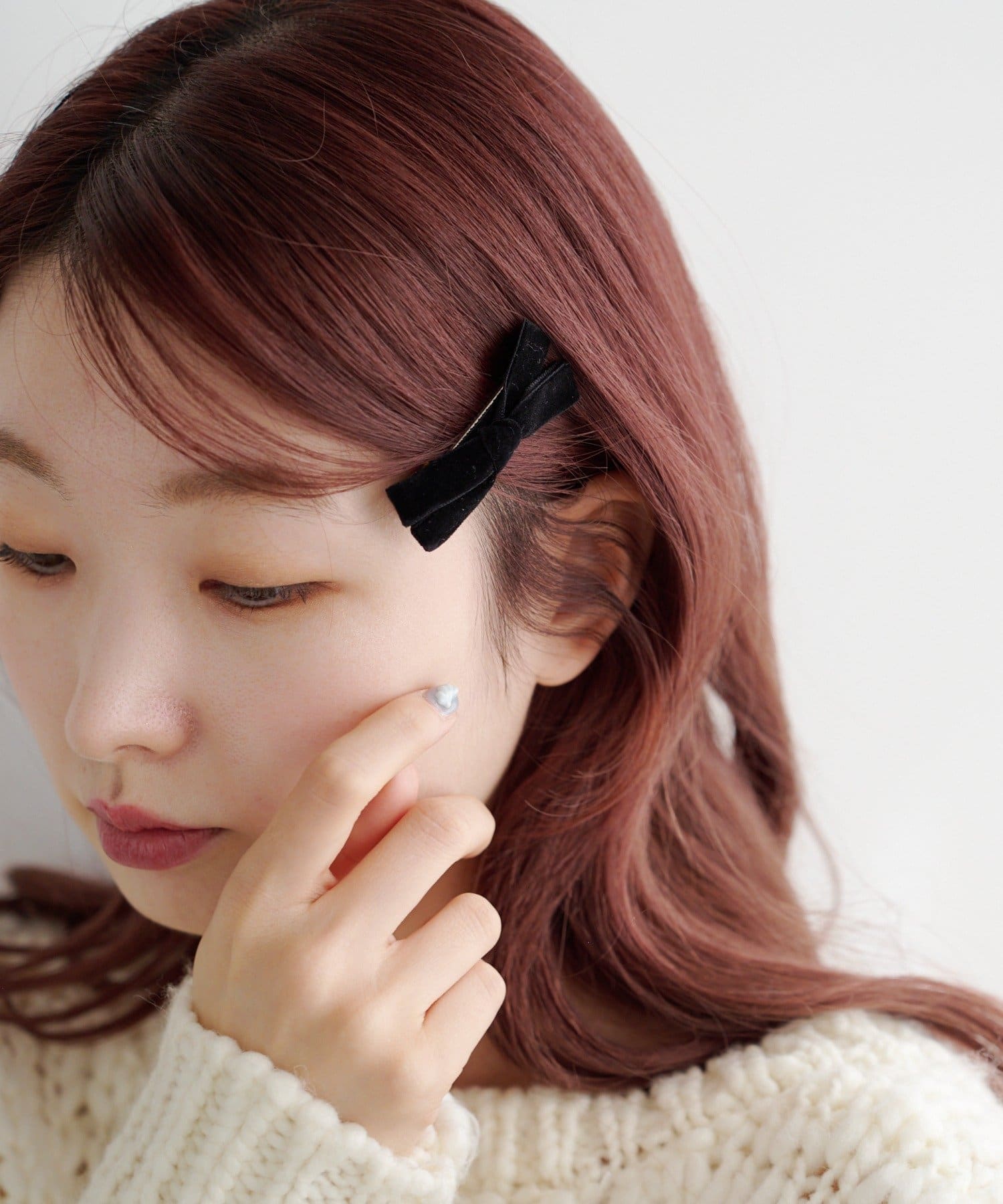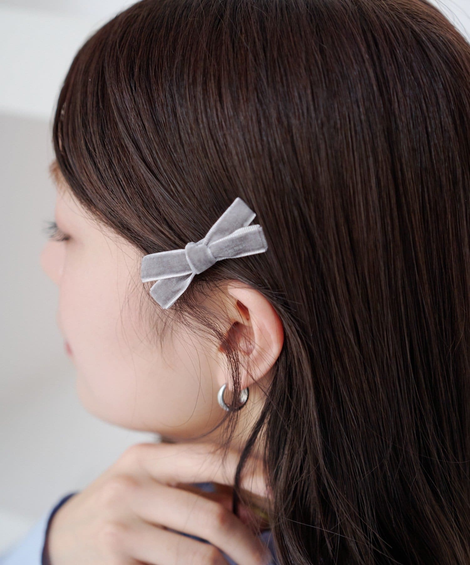 ベロアピンはほどよい厚みと質感で、髪にやわらかくフィットしつつ上品な存在感をプラス。