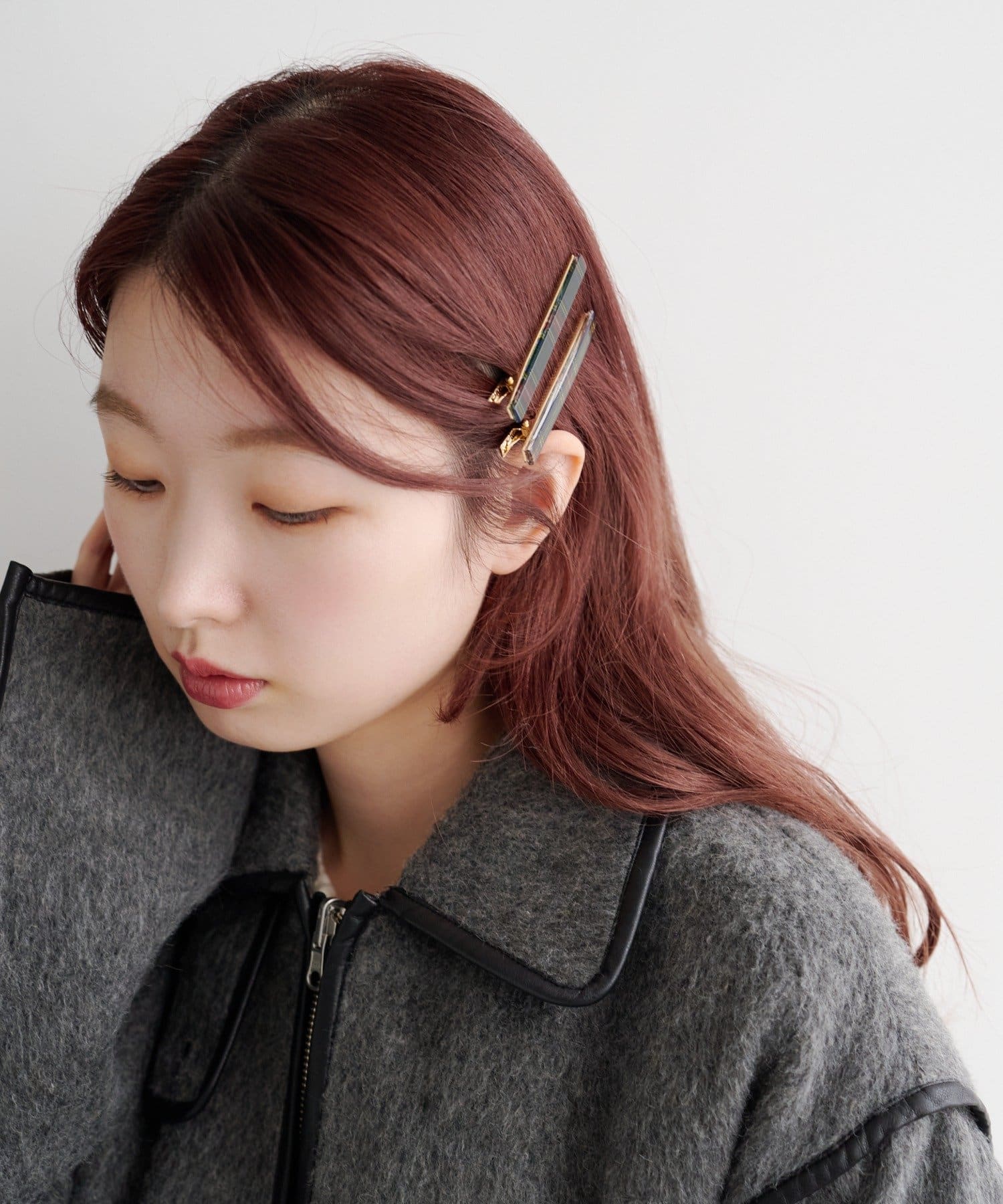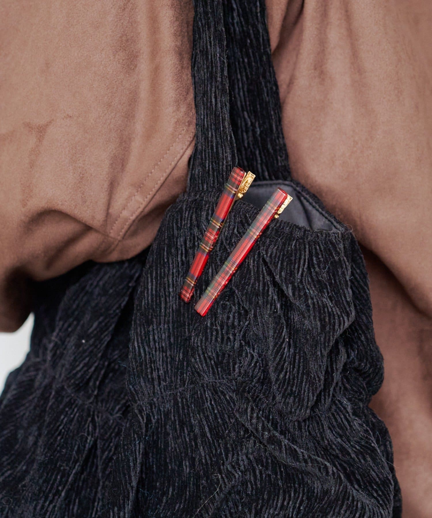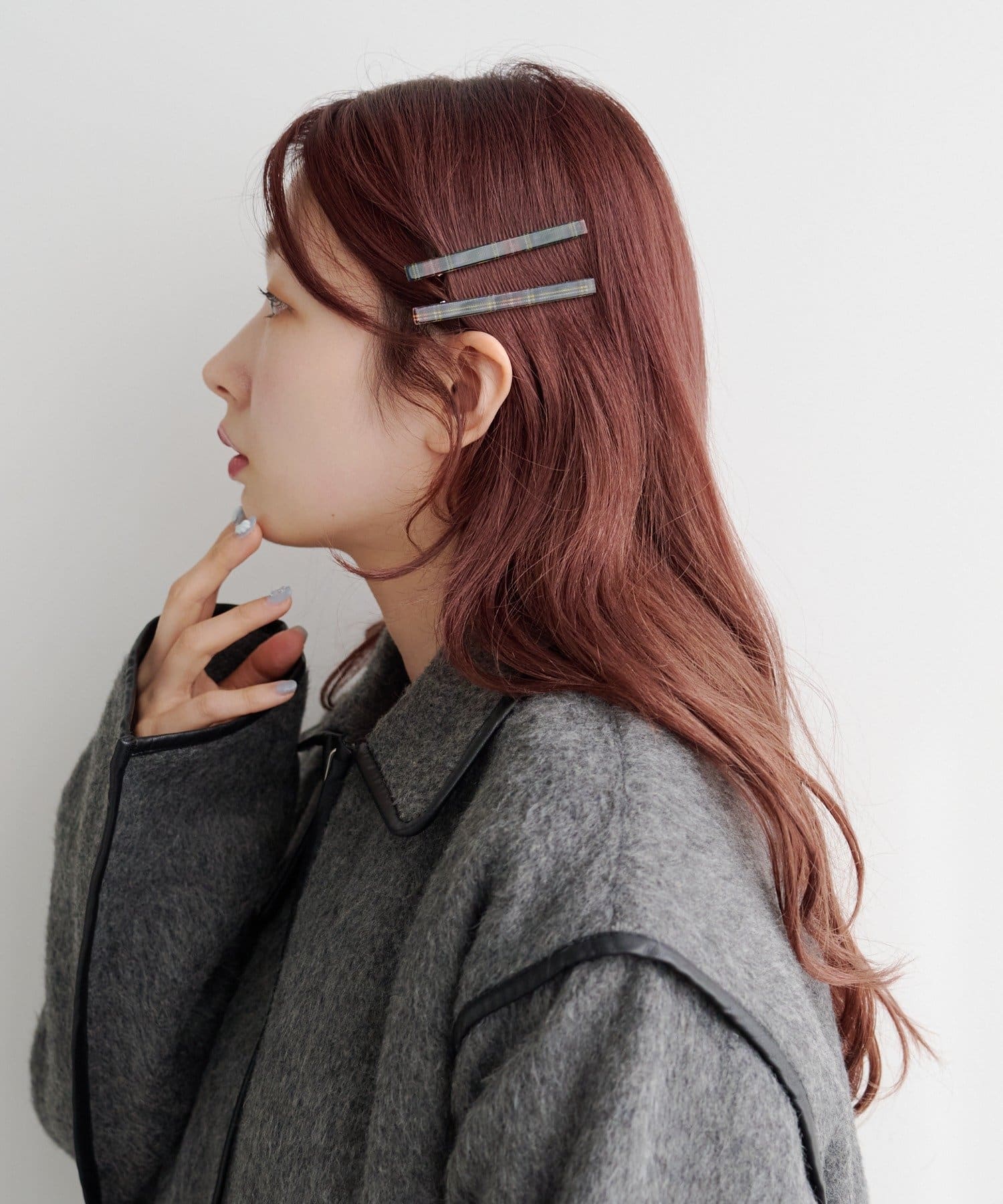 チェックピンは軽やかな付け心地で、前髪やサイドの髪をすっきりまとめながら、コーディネートのアクセントになる華やかさがあります。