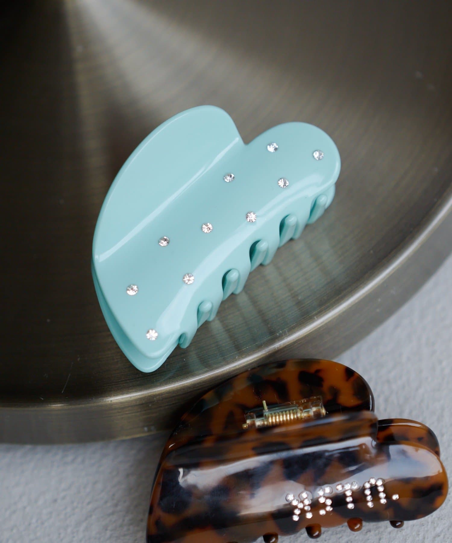 小さめのストーンをあしらったハートシルエットが、光に当たるたび控えめに輝くマルチクリップ。