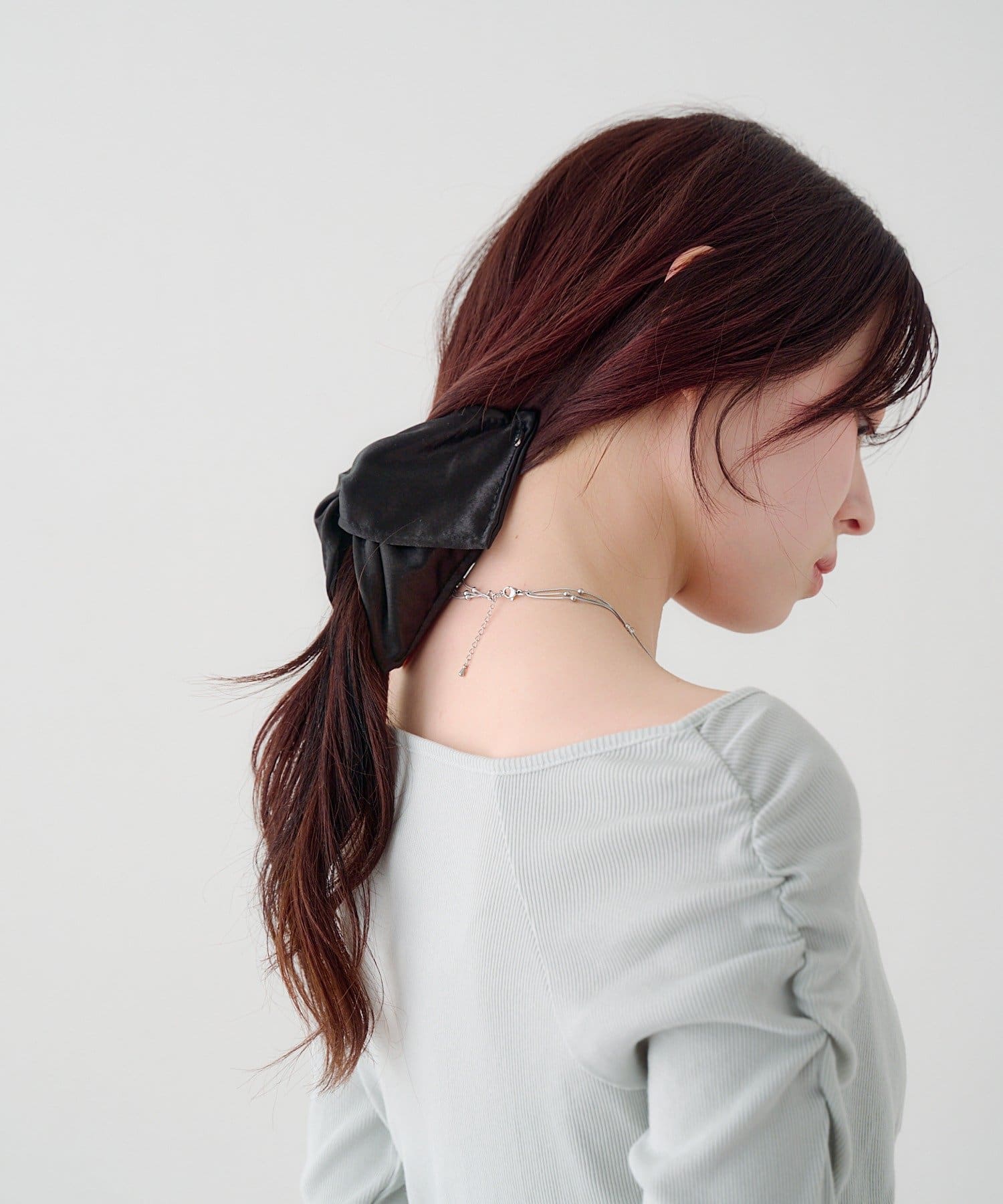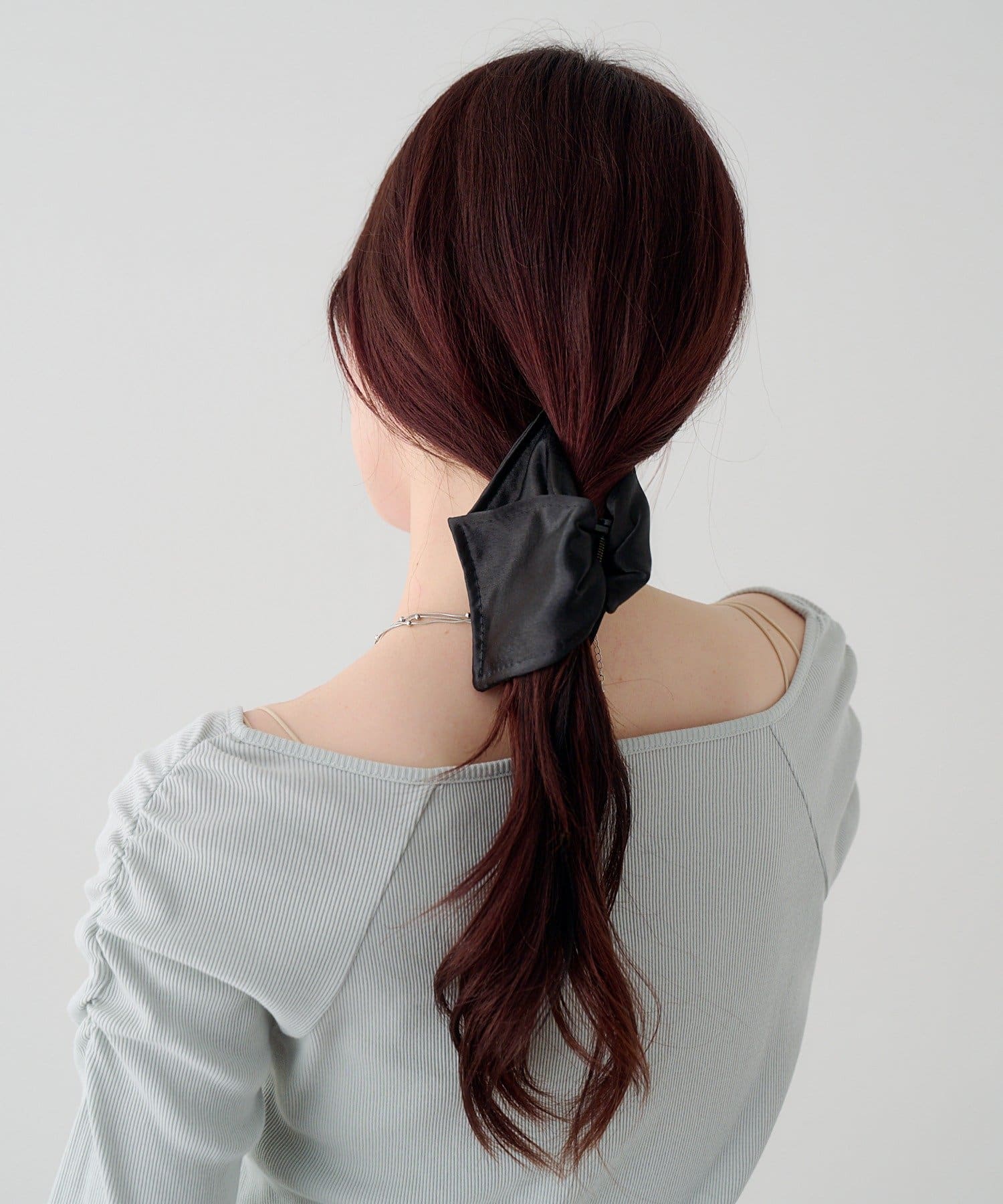 大きめのリボンシルエットが後ろ姿に華やかさをプラスし、さっと挟むだけで簡単にヘアアレンジが完成します。