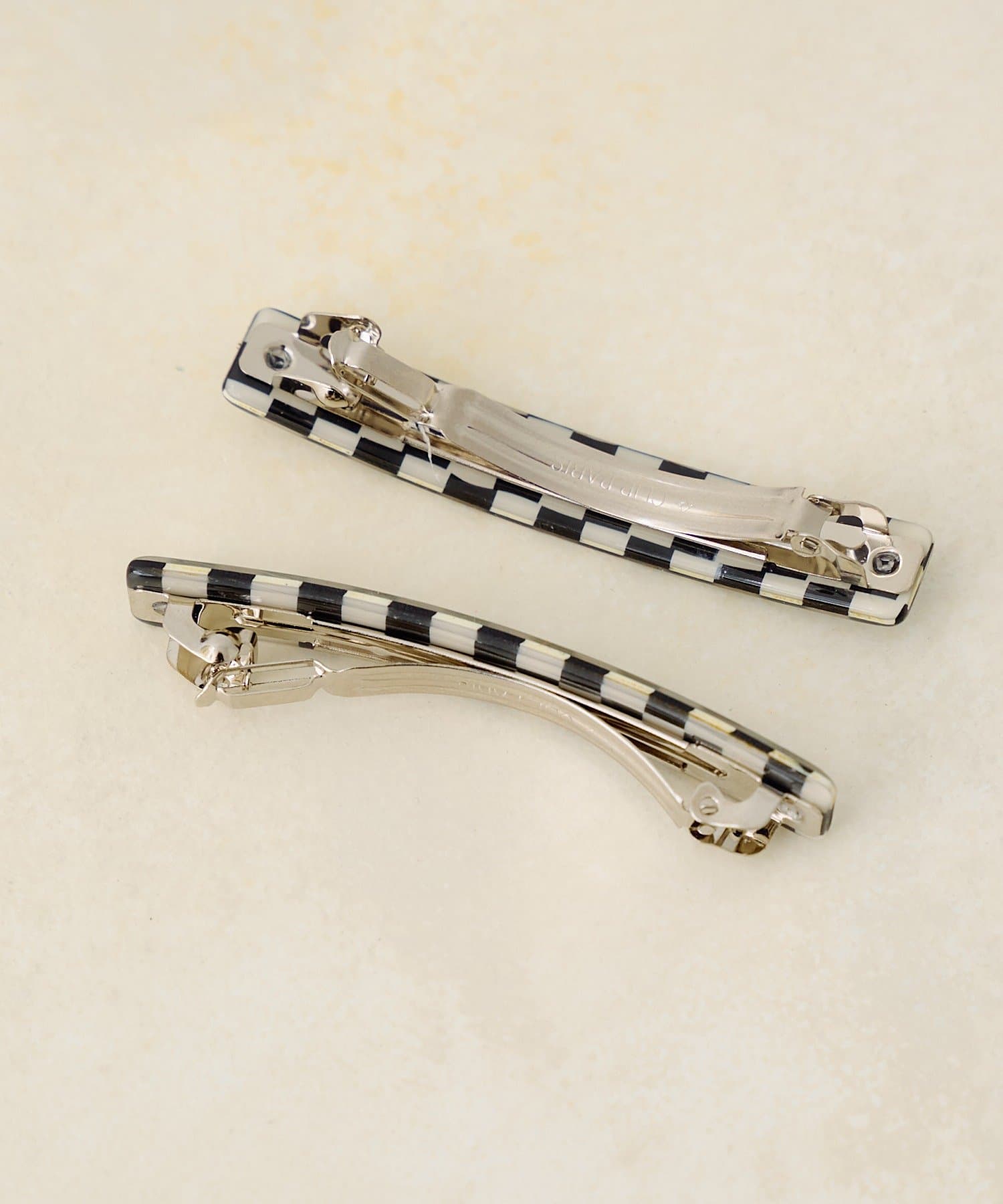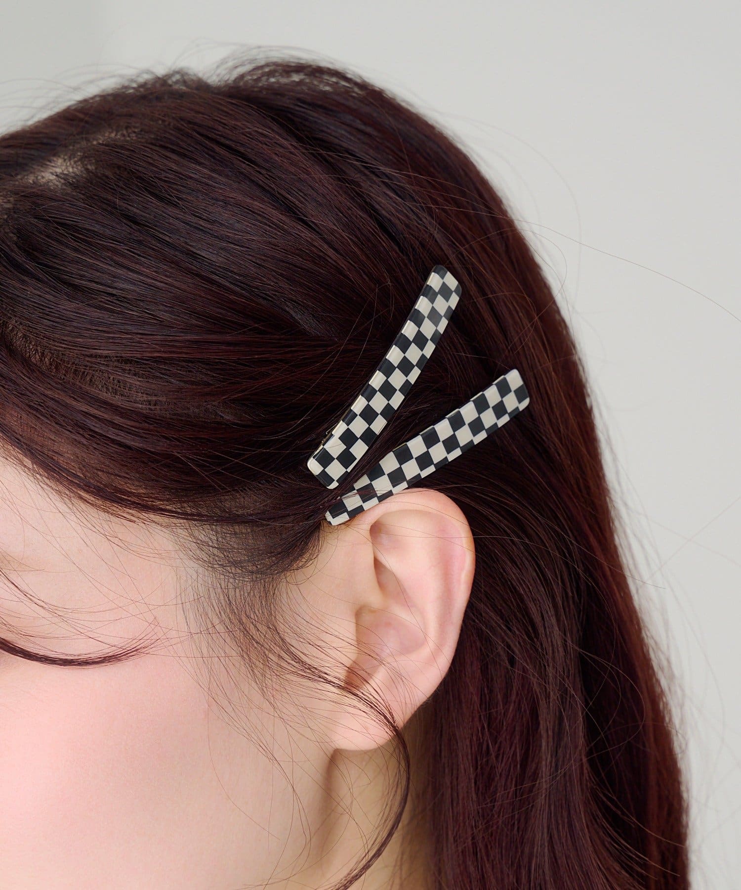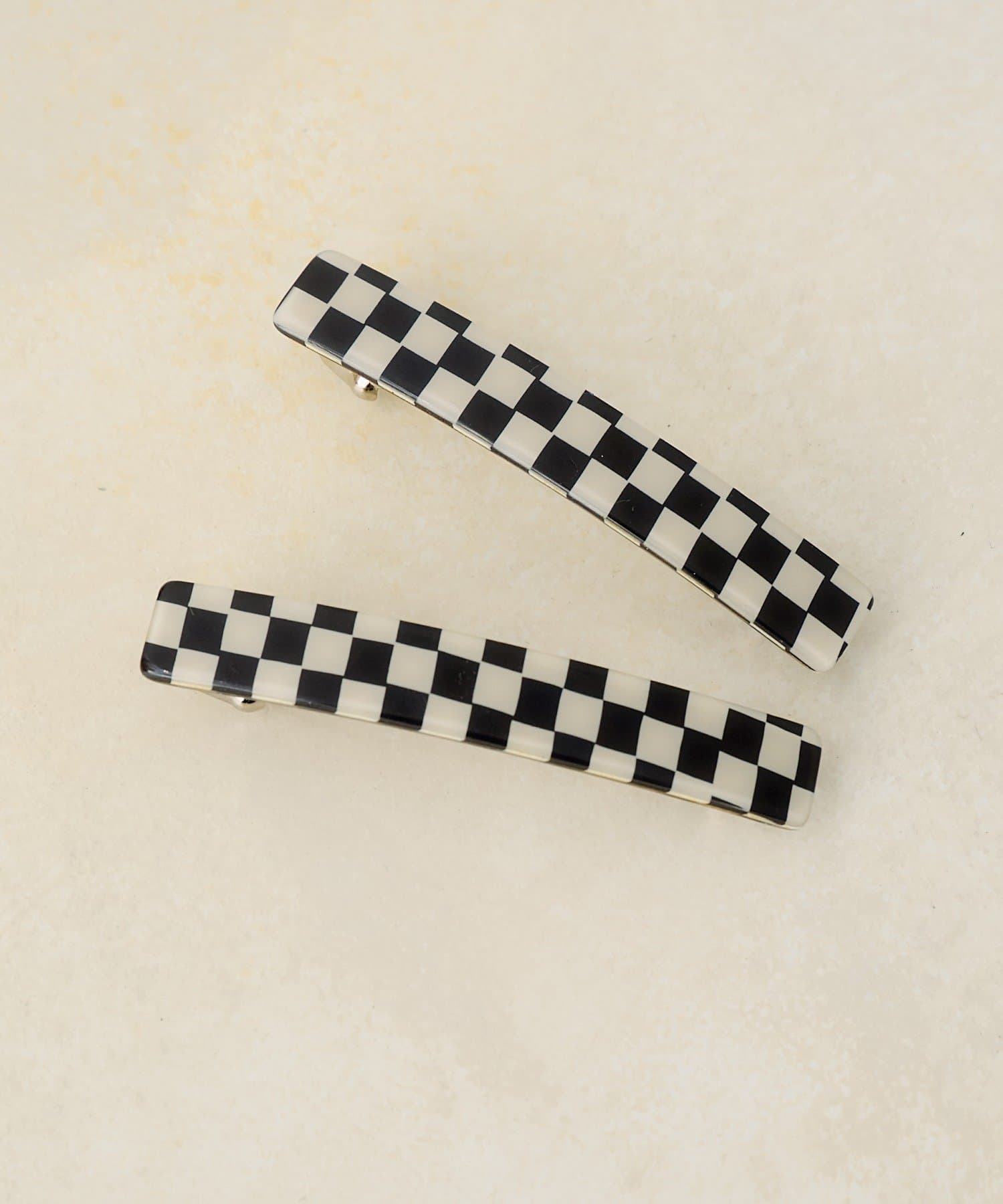 存在感のあるブロックチェック柄が目を惹くバレッタ。