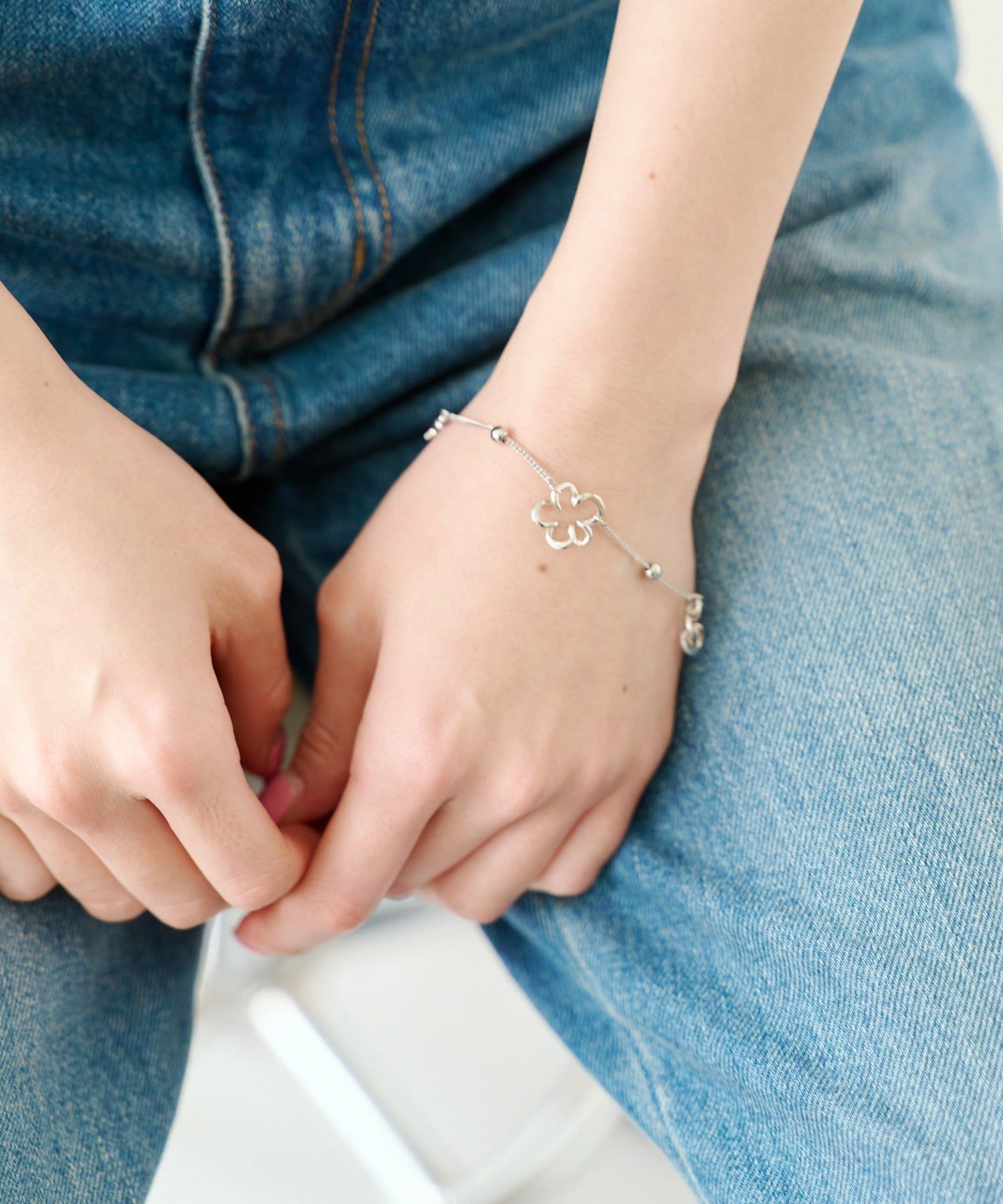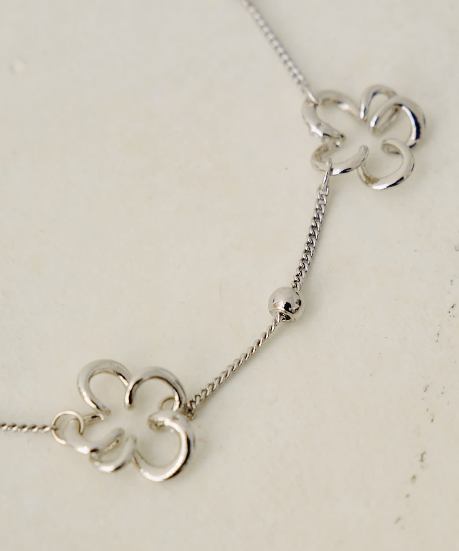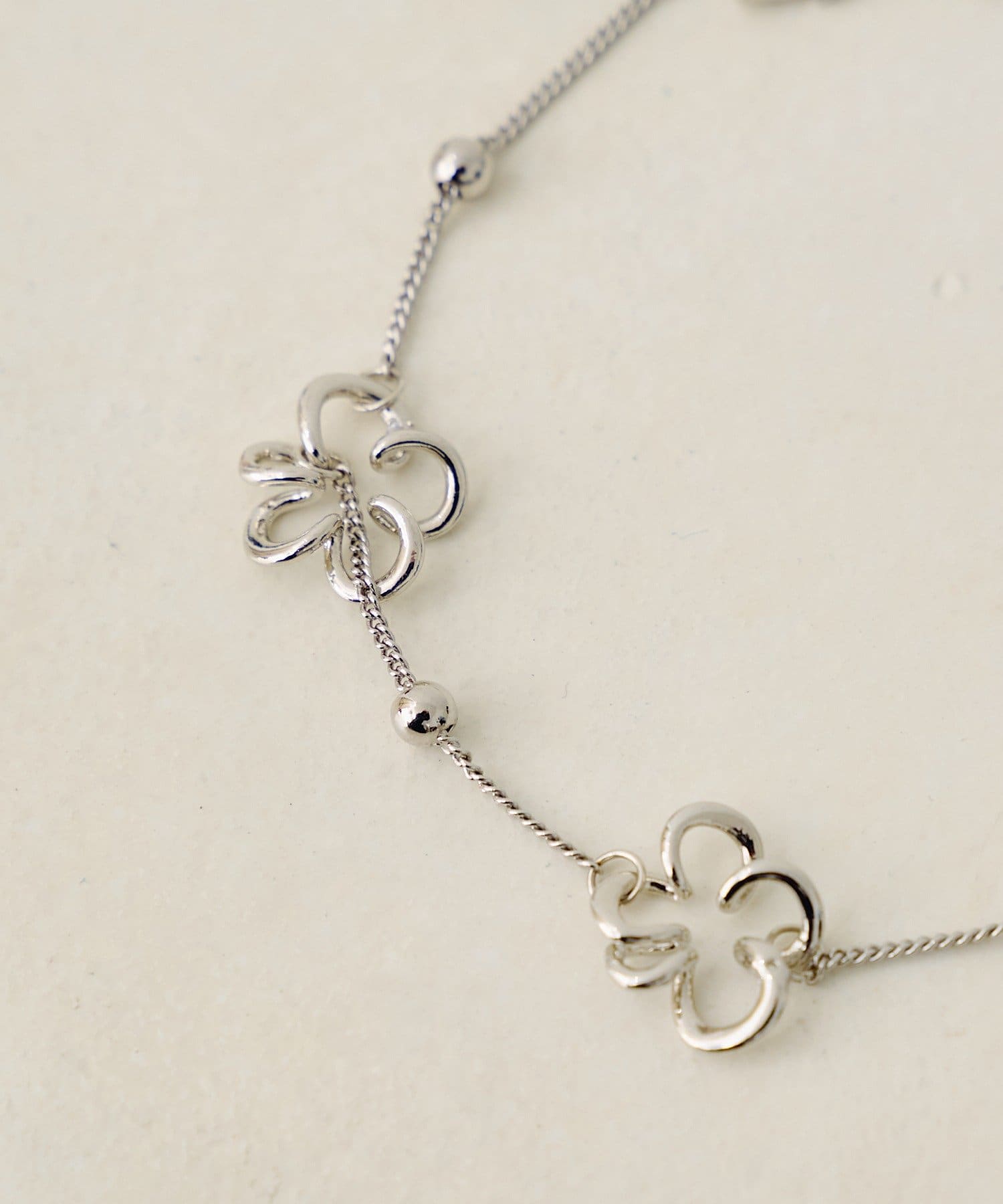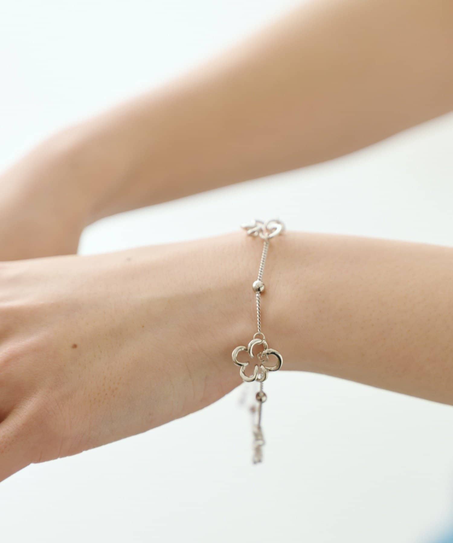 繊細なチェーンに、フラワーモチーフをあしらったシルバーブレスレット。