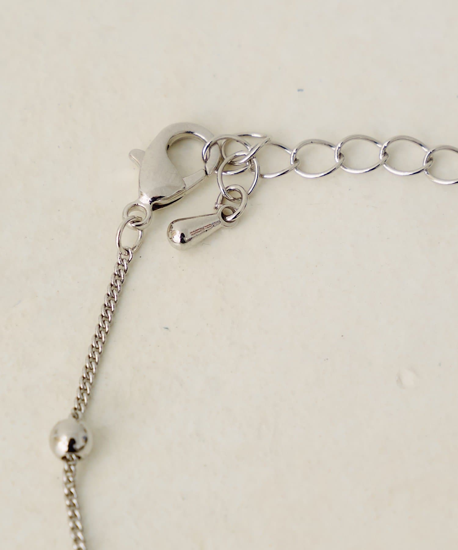 さりげなく配置されたミニビーズがアクセントとなり、シンプルながらも女性らしいディテールが魅力。