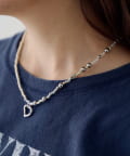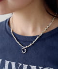 大小のビーズをランダムに組み合わせたチェーンに、抜け感のあるハートパーツを添えたデザイン。