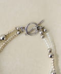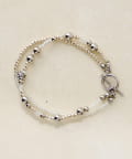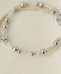 光を柔らかく反射するクリア系ビーズとメタルビーズをアクセントにしたデザインで、重ね付けしたような立体感とさりげない存在感を楽しめます。