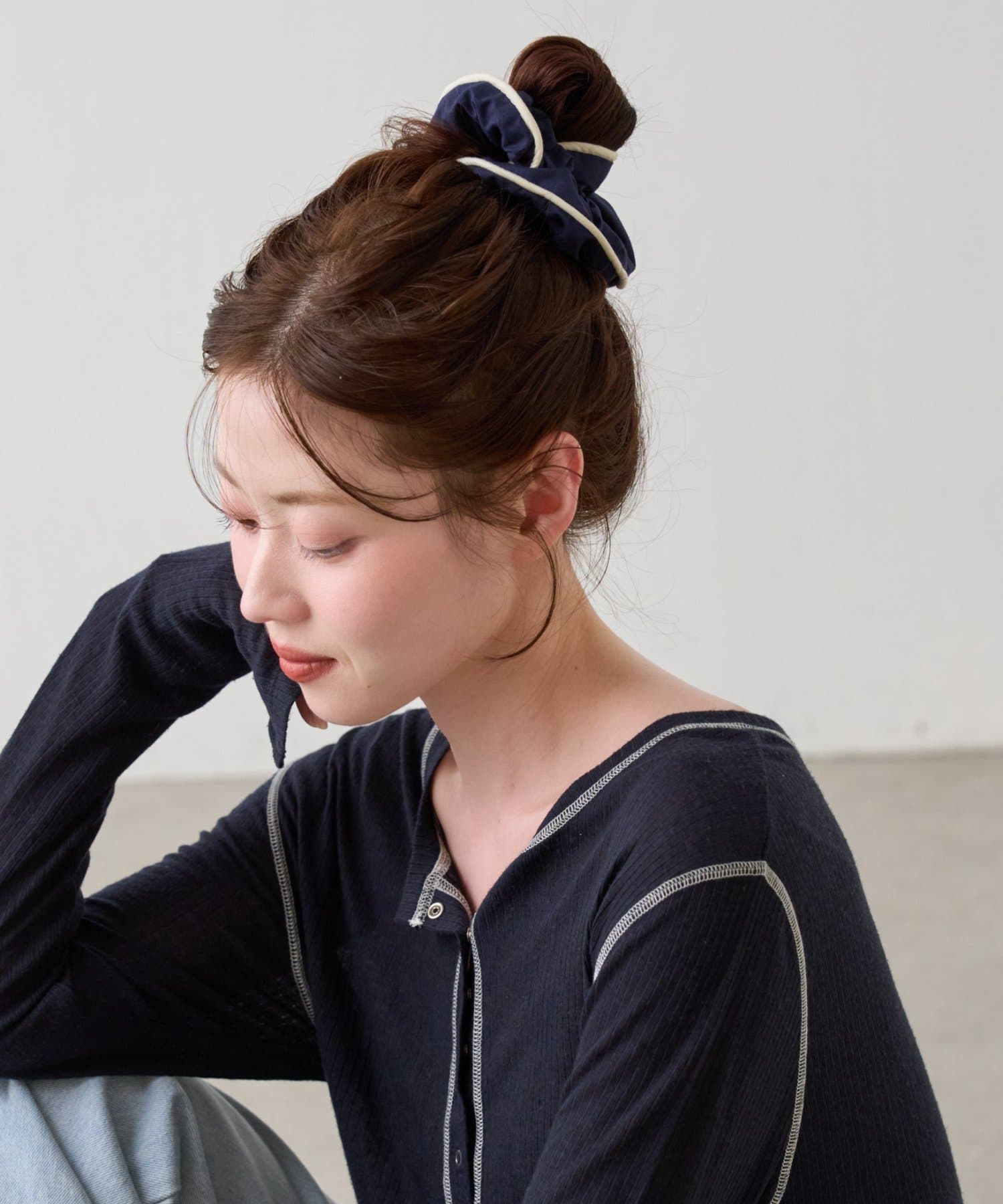 柔らかい素材感で髪に優しくフィットし、さっと結ぶだけでこなれたスタイルが完成。