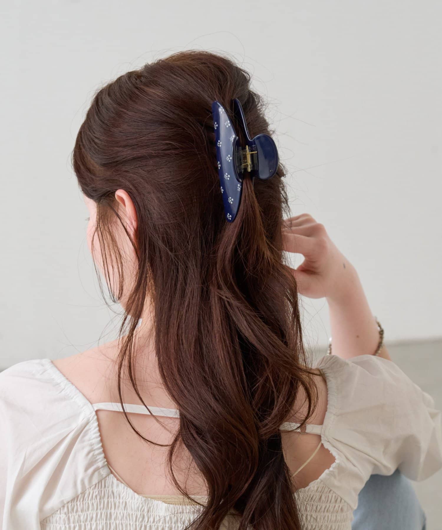 小さなフラワーモチーフが散りばめられた、大人かわいいヘアクリップ