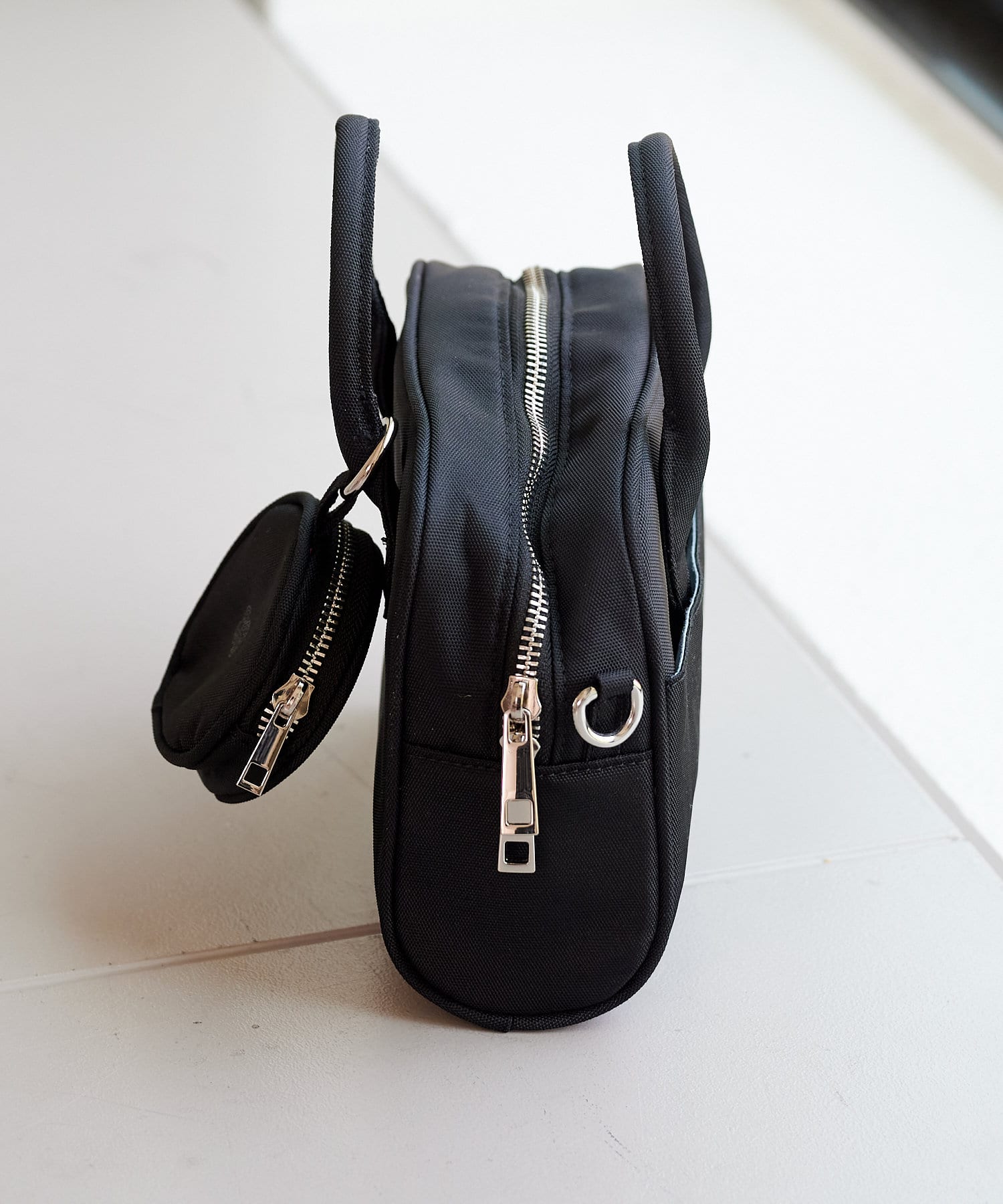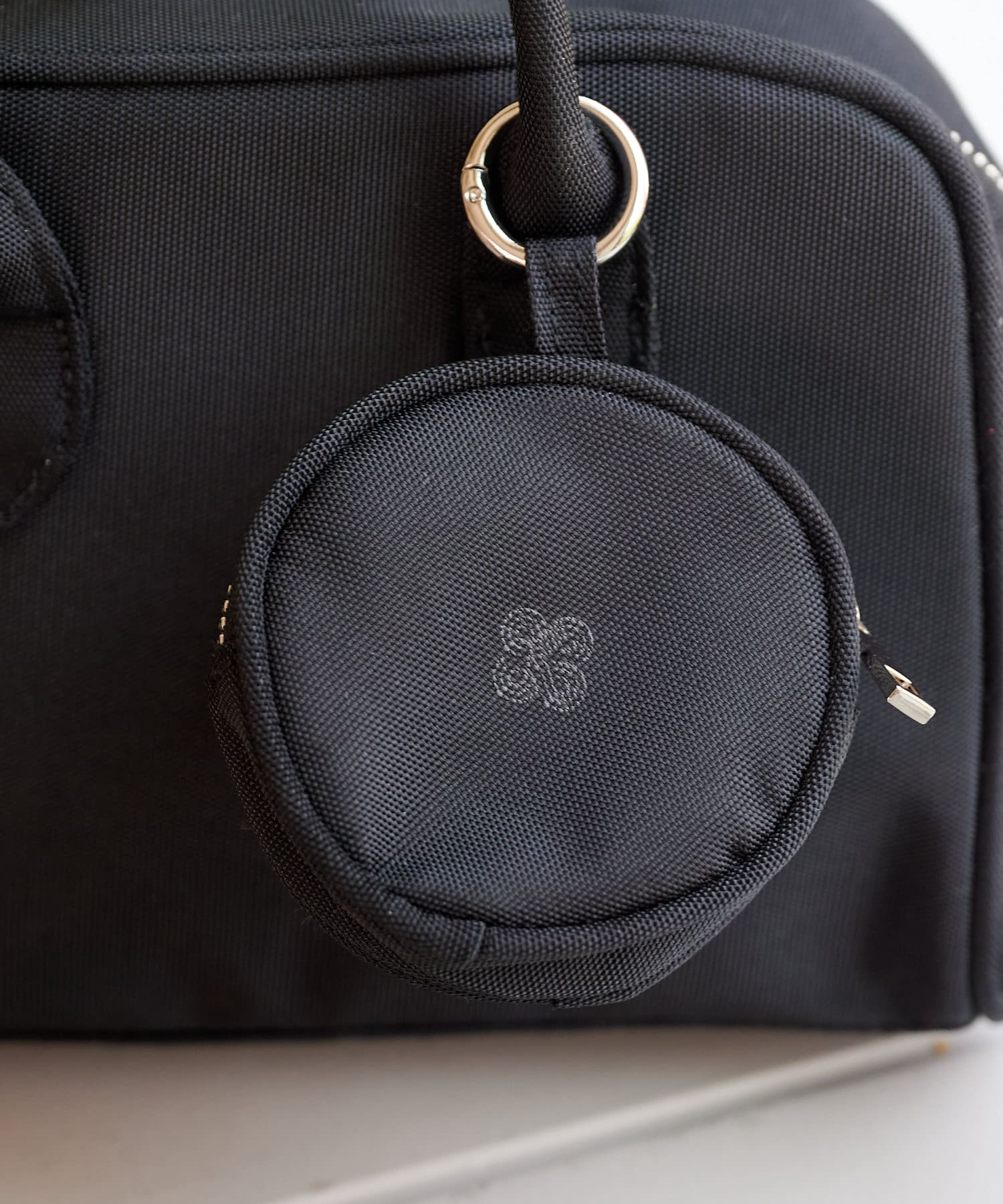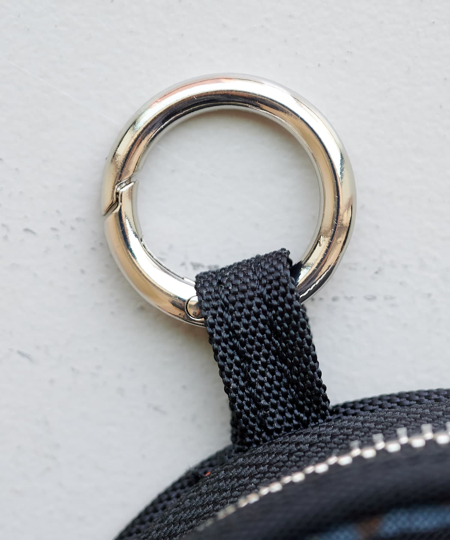 片側がメッシュになっているチャーム付きで細々したものの収納も。