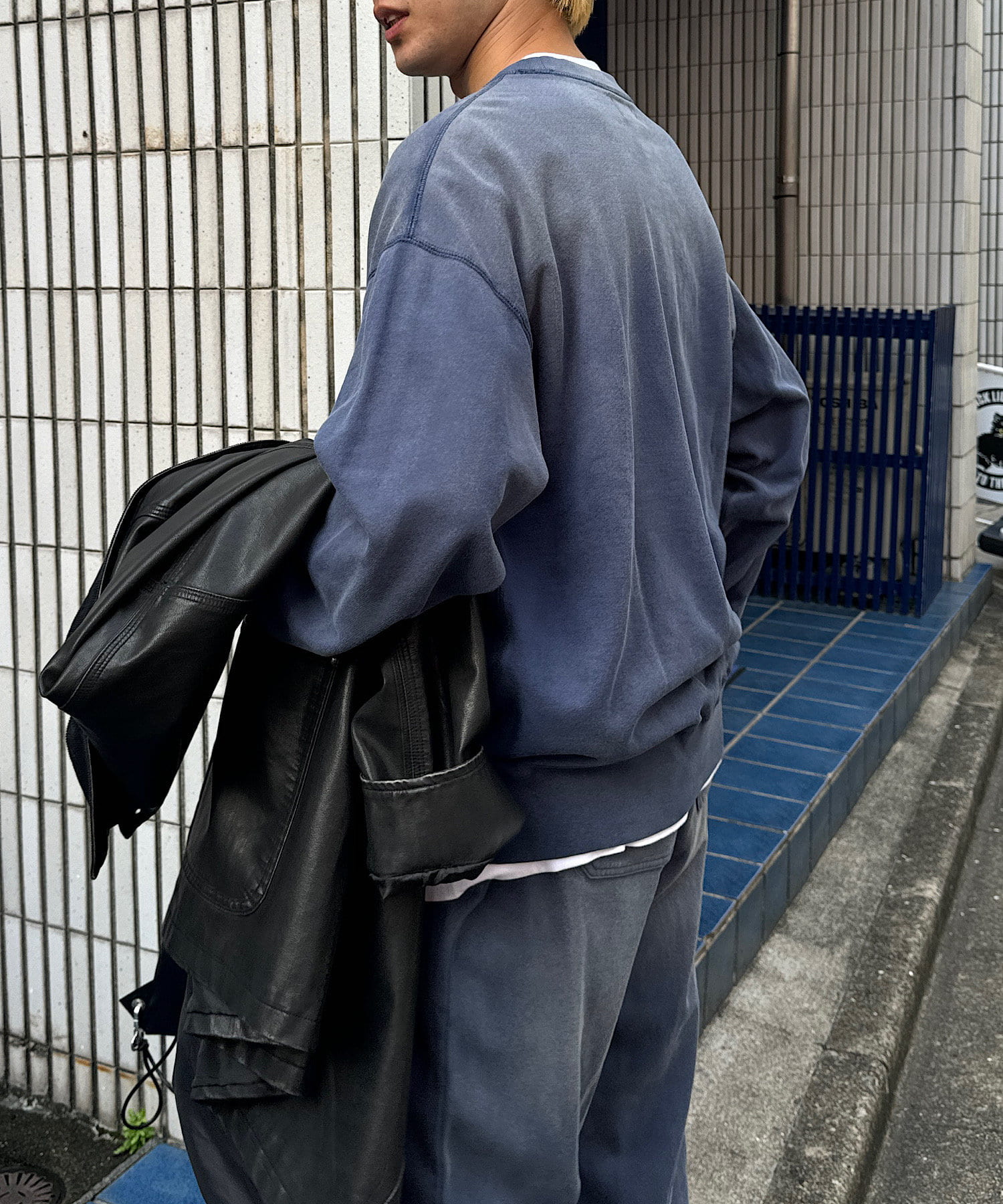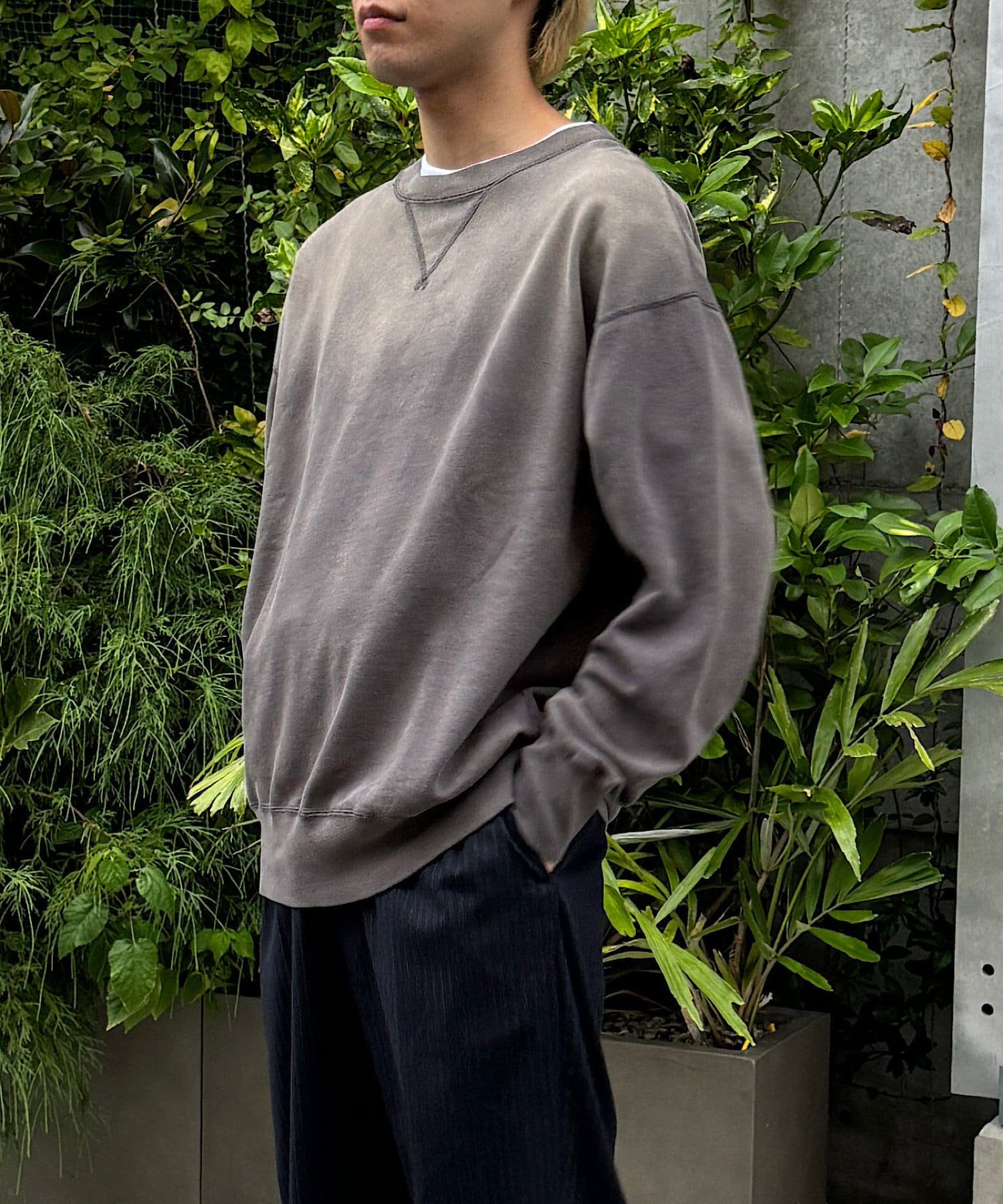 経年変化による日焼け・ダメージをリアルに表現したスウェットプルオーバーです。