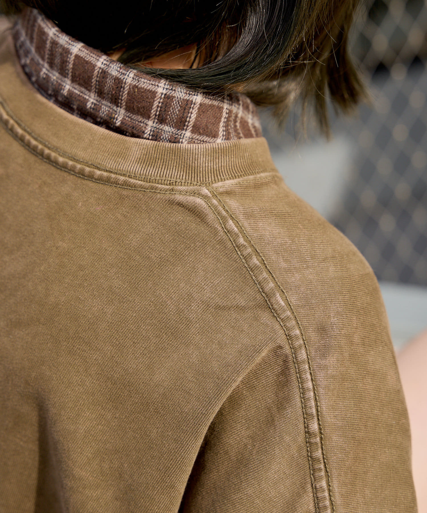 ヘビーウェイト度詰め天竺を採用し、経年変化によるフェード感を表現したカットソープルオーバーです。