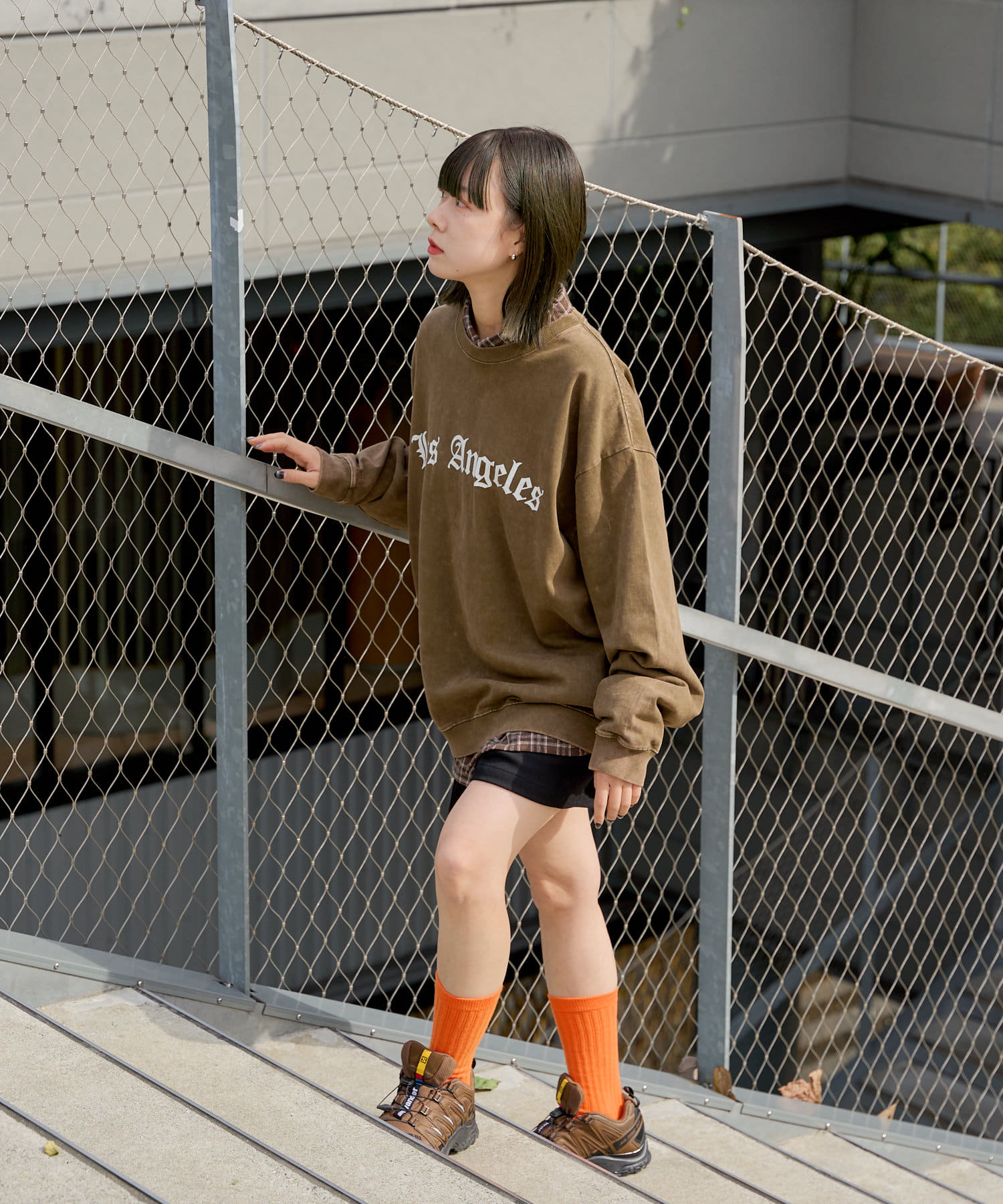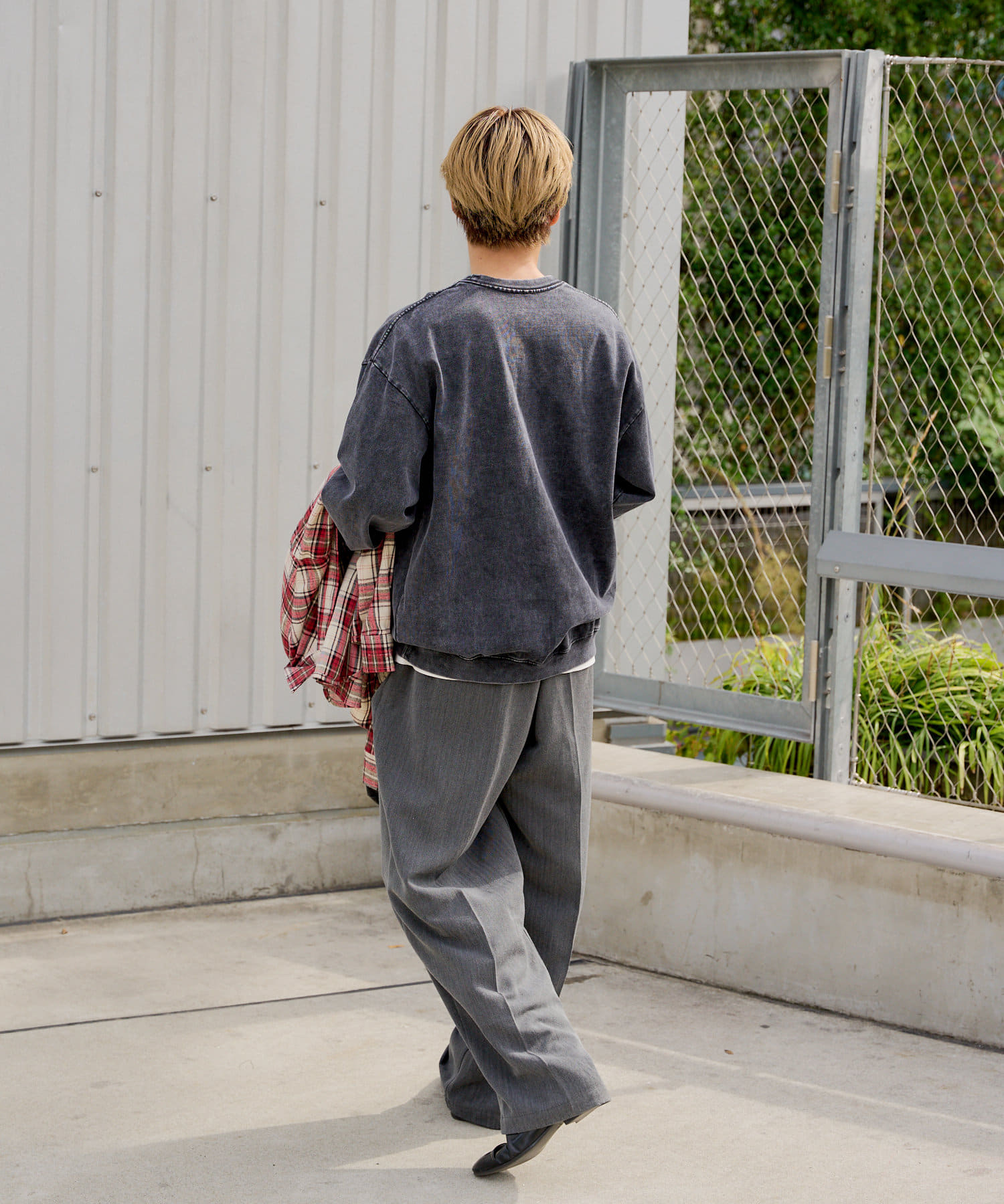 【UNISEX】ACID WASHED CUTSEW PRINT PULLOVER