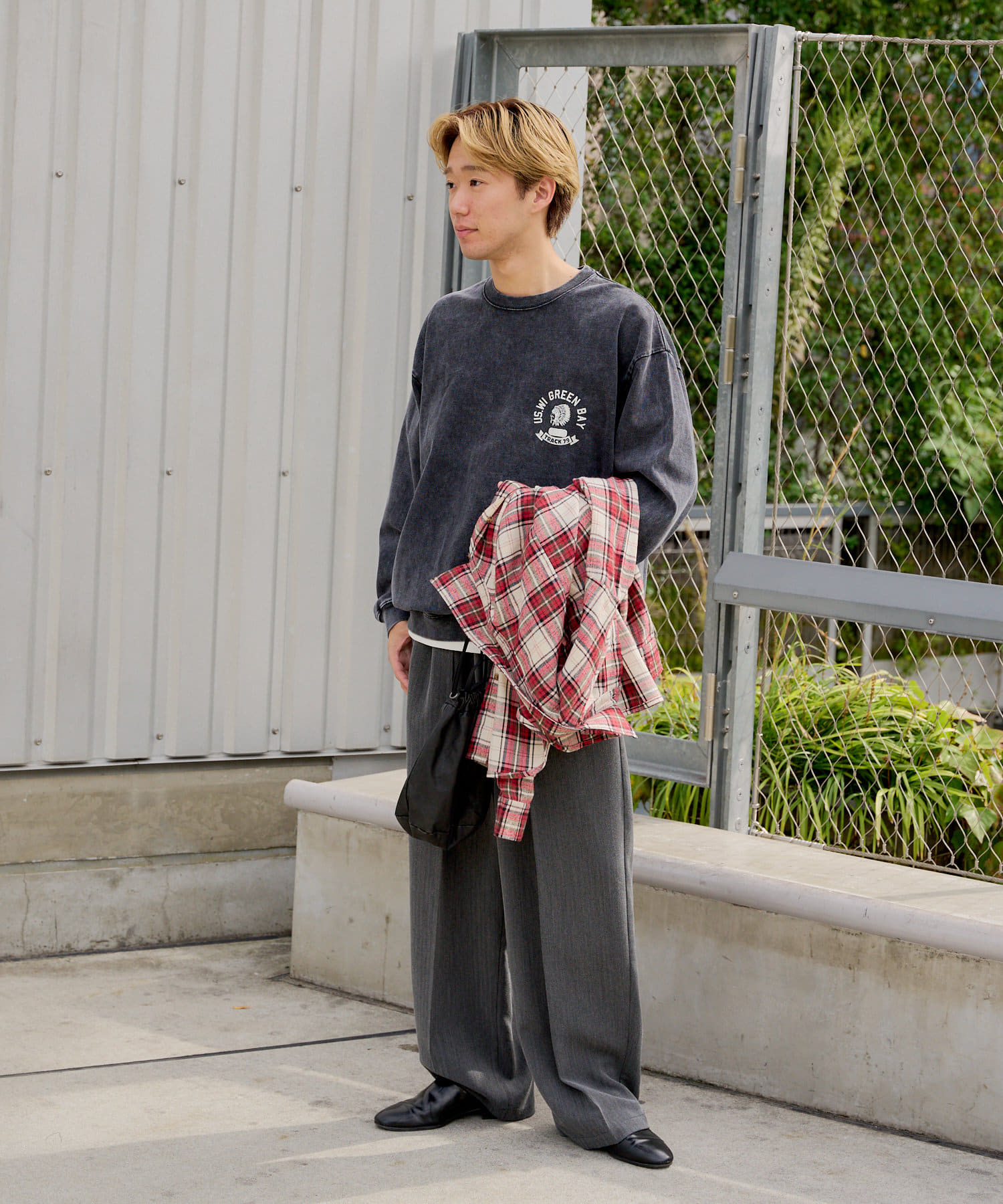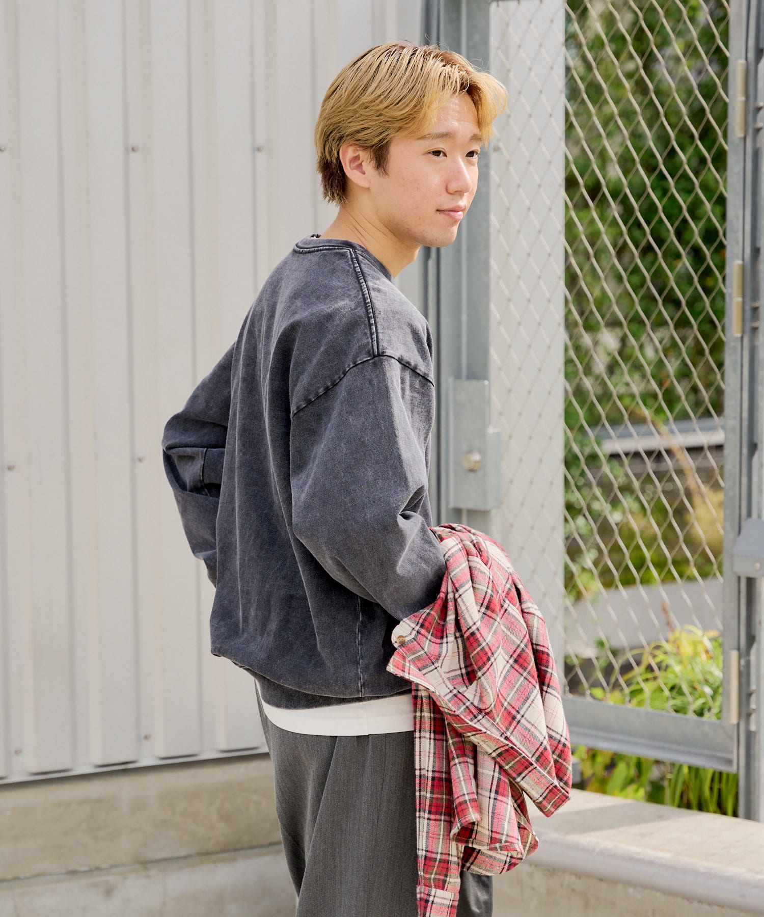 雰囲気のあるカラーとアシッドウォッシュ加工がスタイリングのアクセントに。