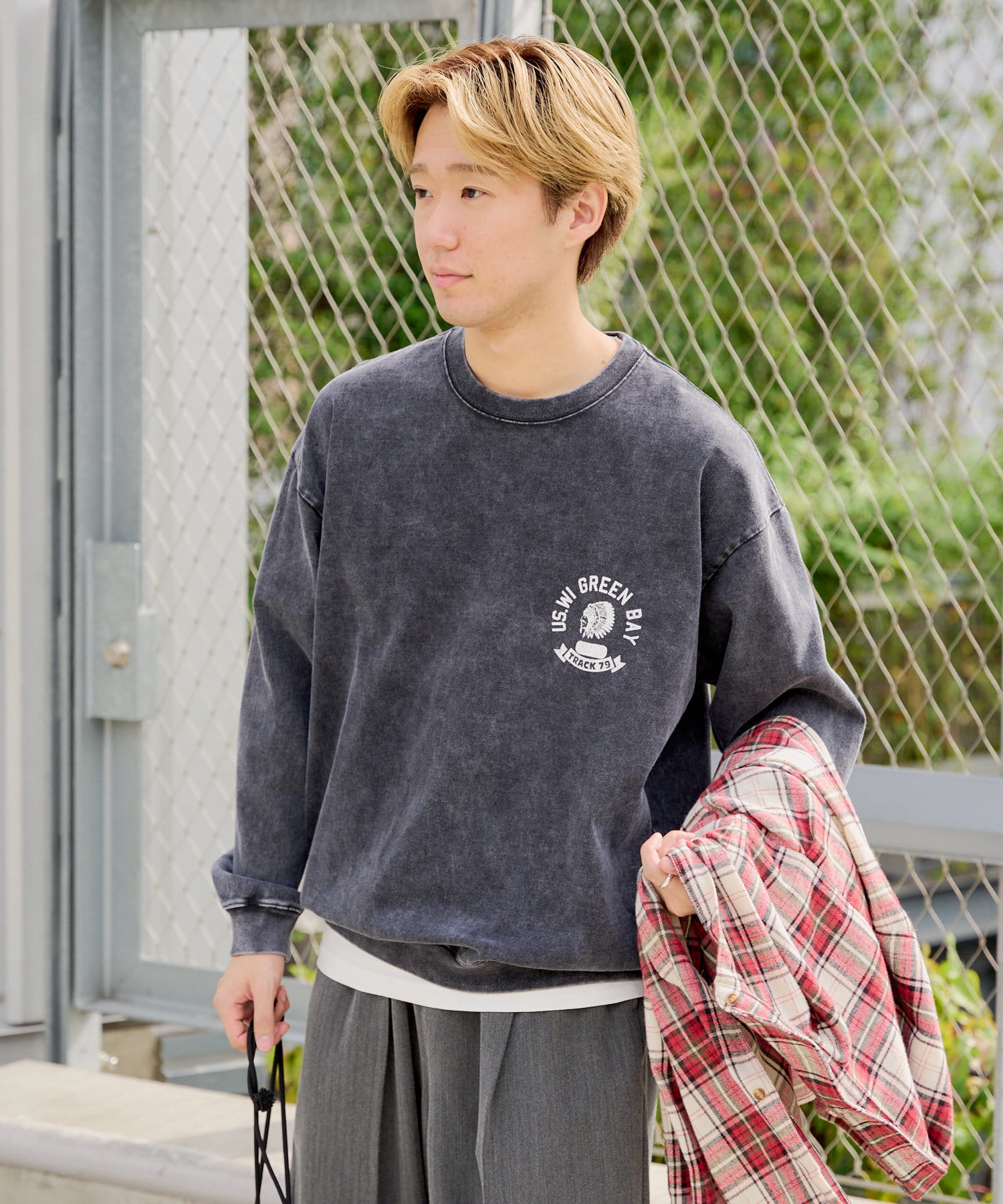 【WHIMSIC/SETUP対応】アシッドウォッシュドプリントプルオーバー