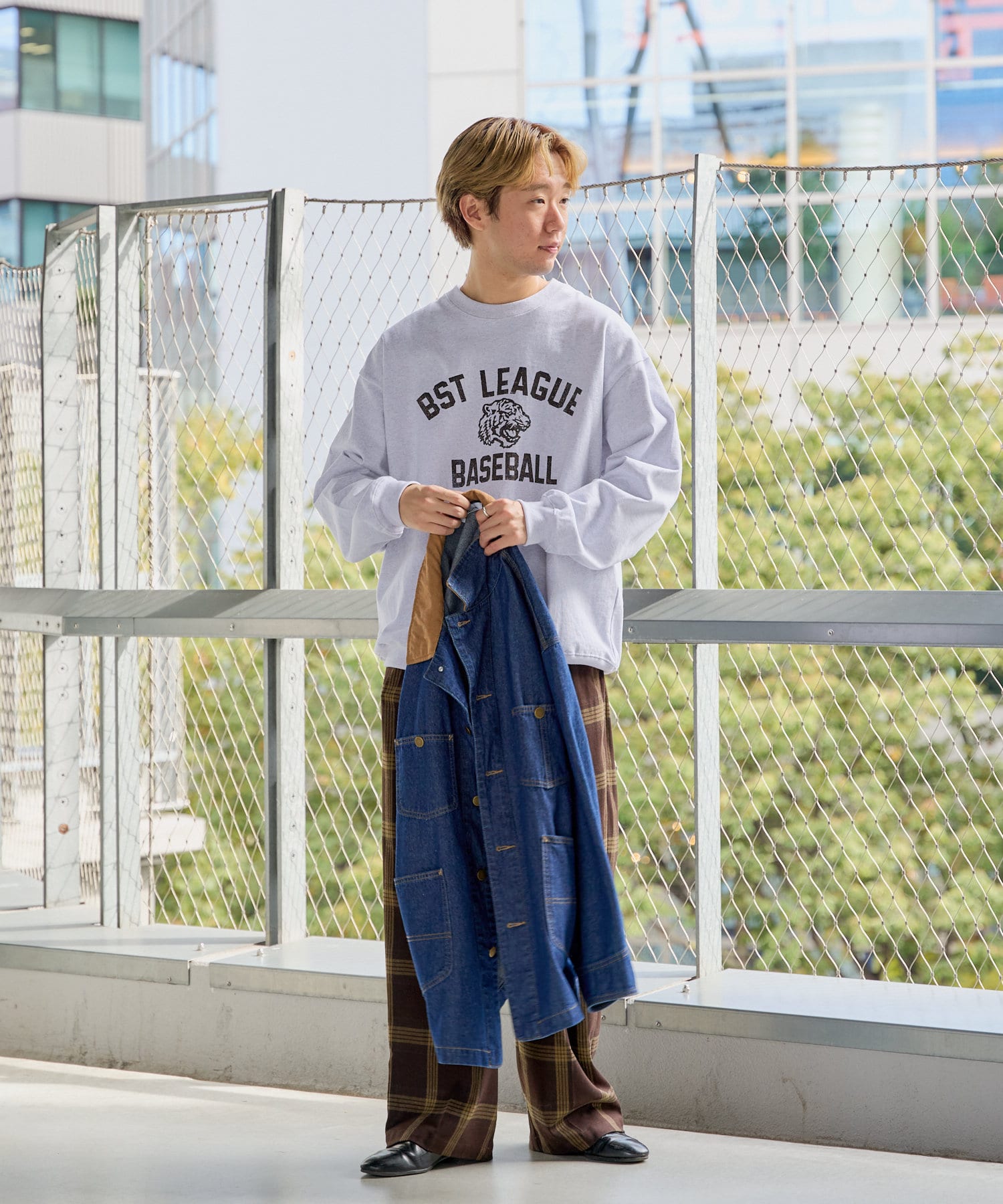 シンプルなデザインなので、デニムやチノパン、スラックスなど幅広いボトムスと合わせやすく着回し力があるアイテムです。