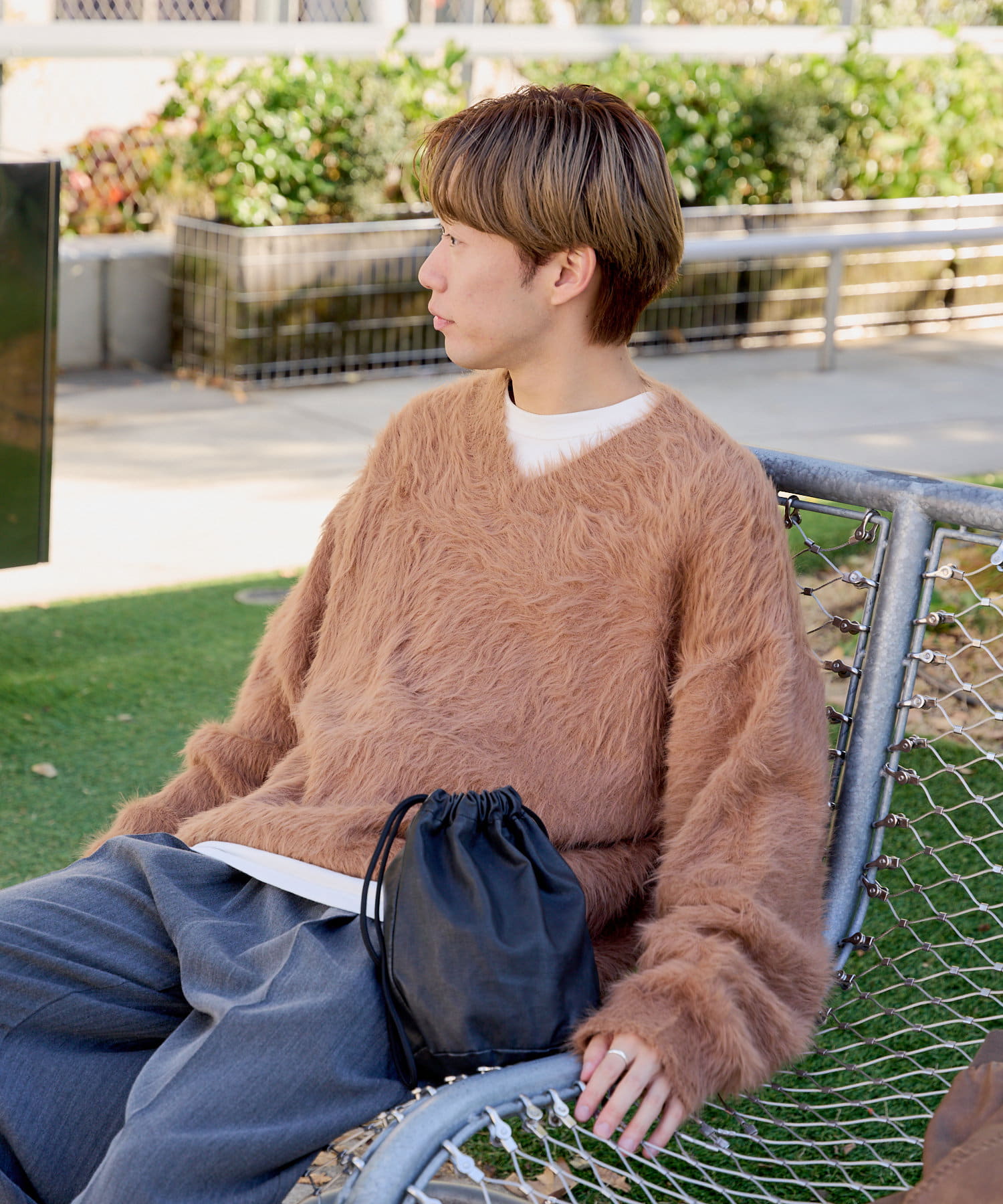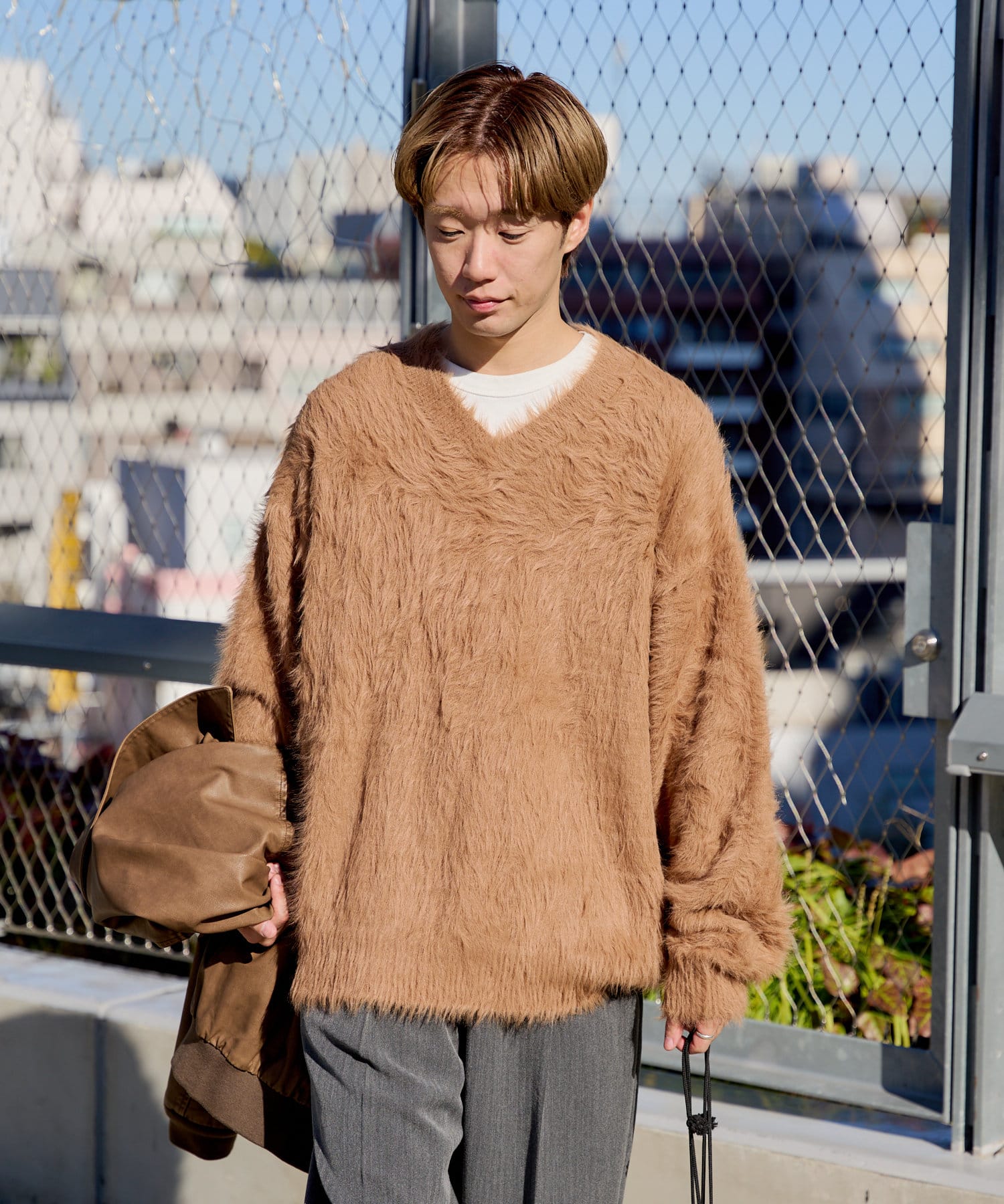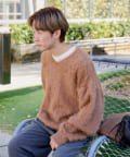 【UNISEX】FEATHER YARN V-NECK KNIT PULLOVER