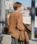 羽毛のような柔らかさを持ち、ウールニット特有のごわつきや摩擦による肌刺激が少ない柔らかい糸を使用。