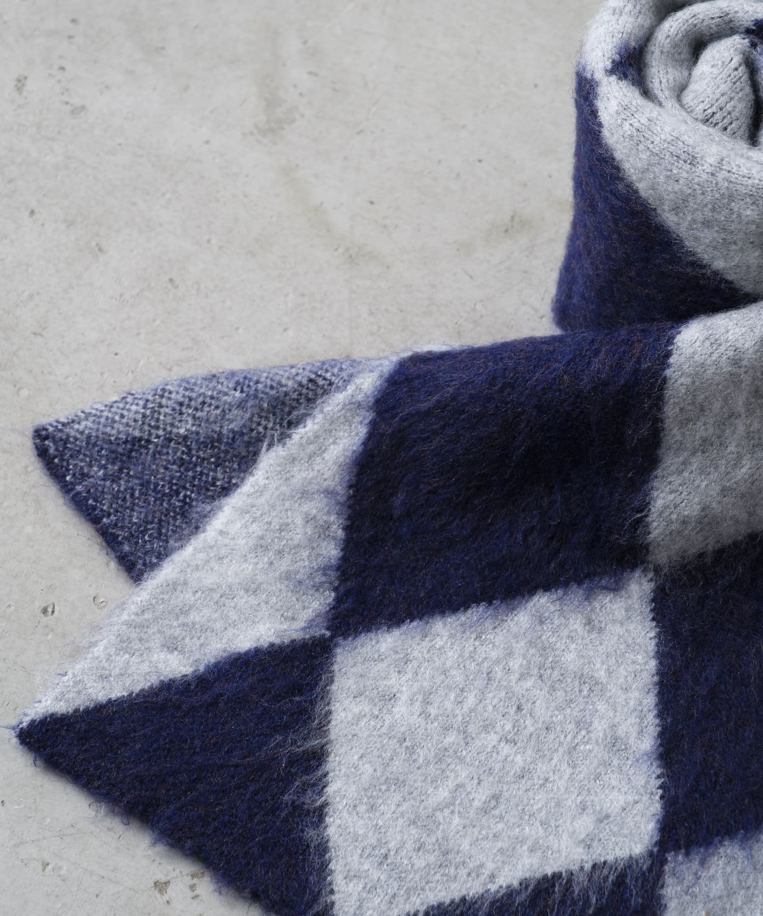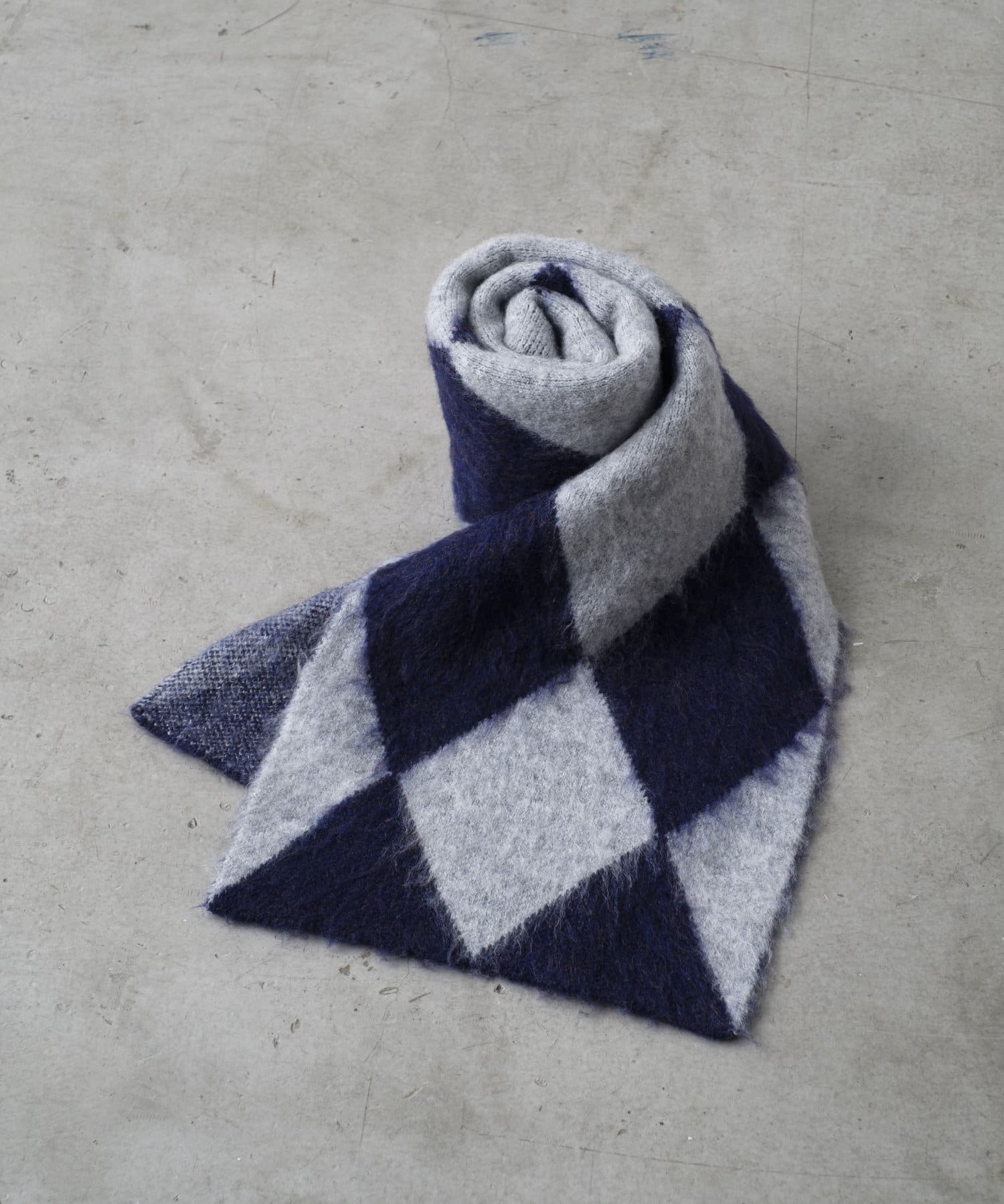 軽くて柔らかい糸を使用し、ダブルジャガードで編み上げたジャガードニットマフラーです。
