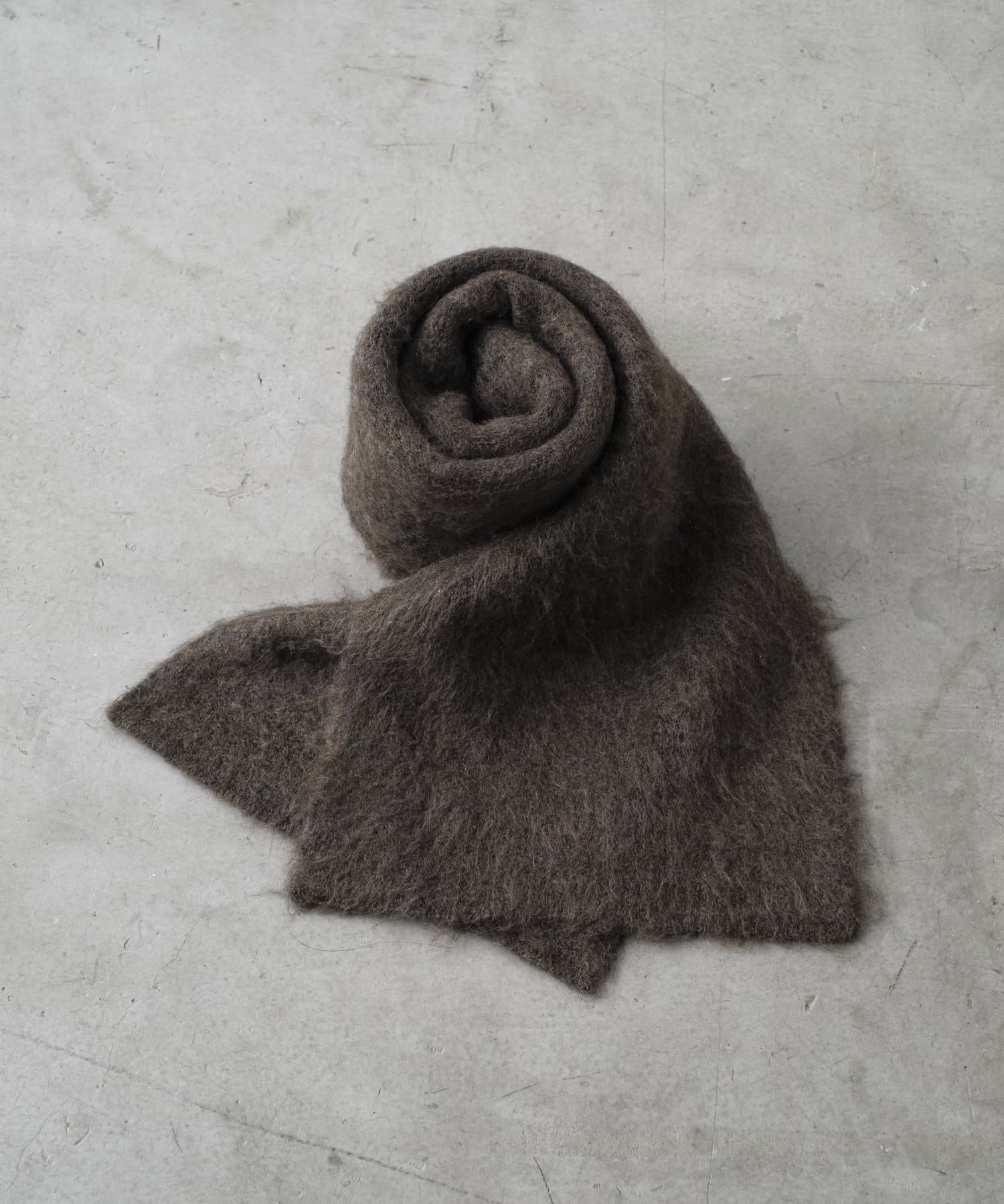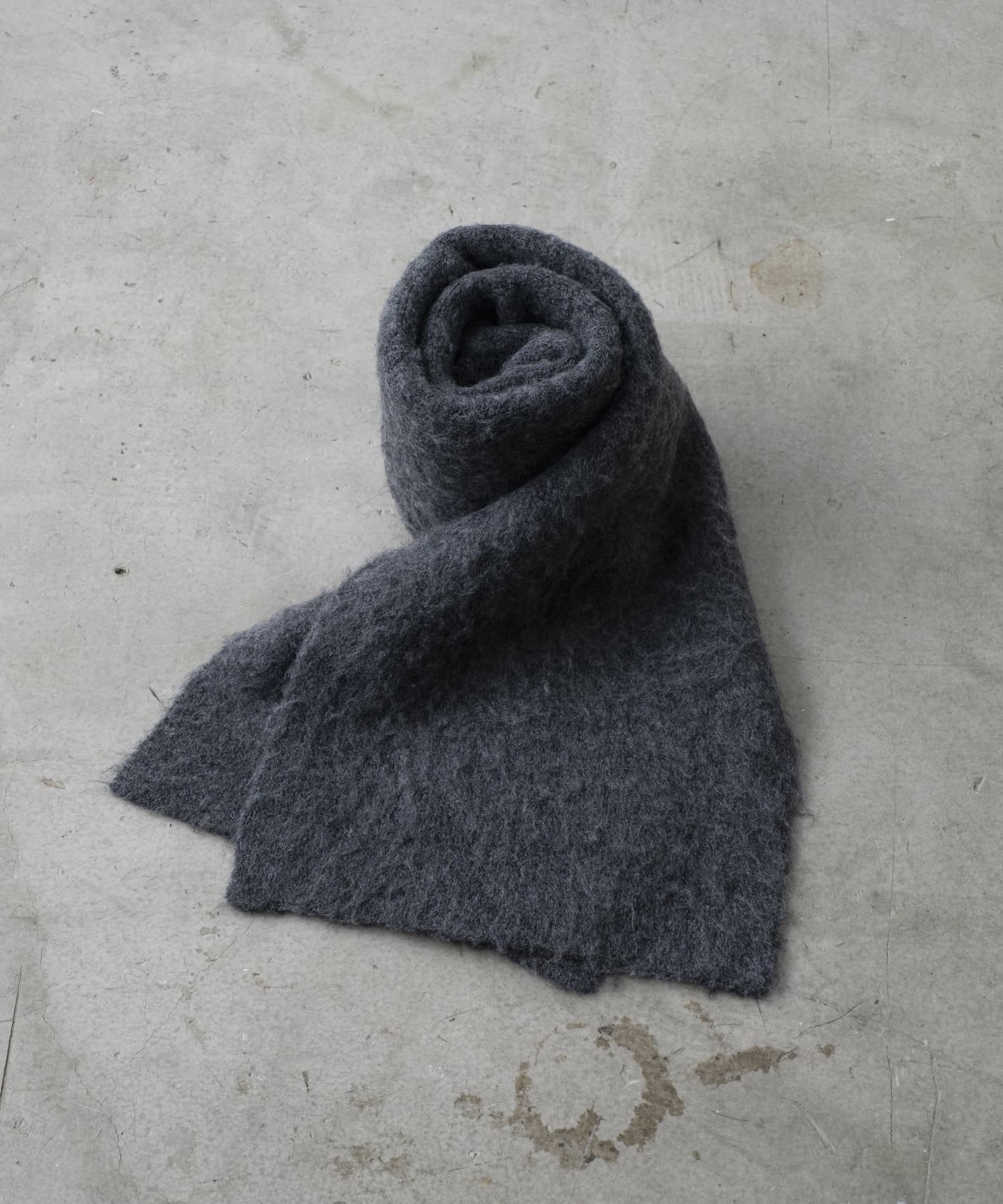 適度に長さをもたせた仕様とシンプルなデザインは、シーンやスタイリングに合わせて巻き方が楽しめるマフラーです。