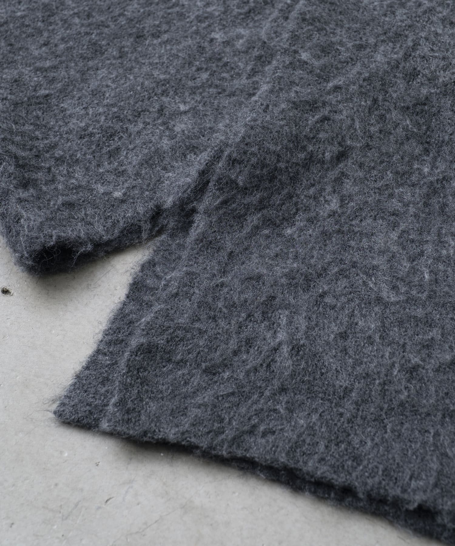 製品加工で表側に起毛加工を行っており、品のある見た目とウォーム感を出してくれます。