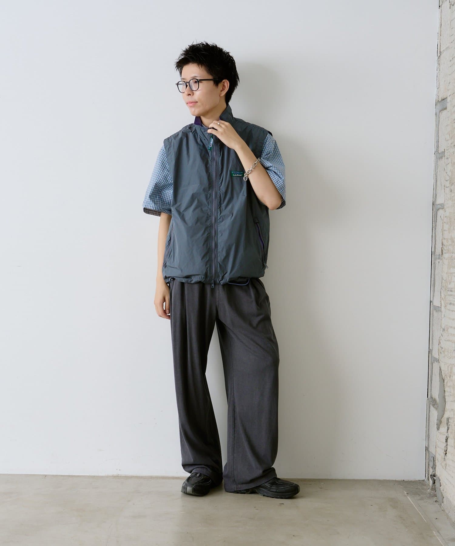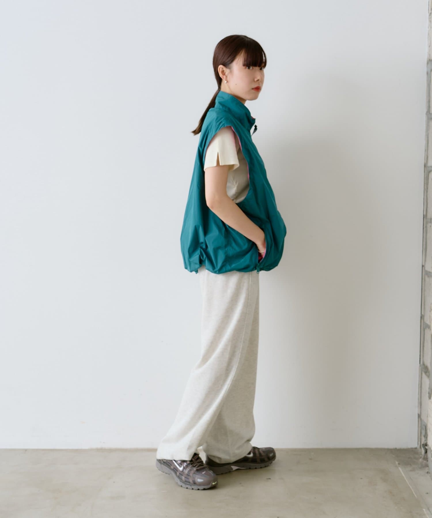 Tシャツからスウェットまで幅広くレイヤードしやすいサイズ感です。