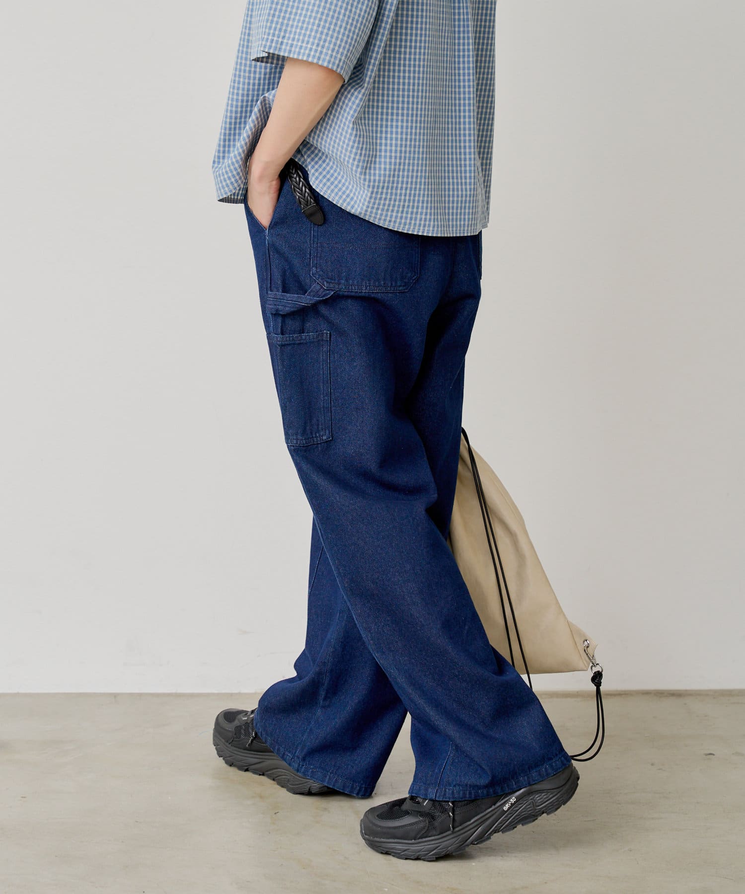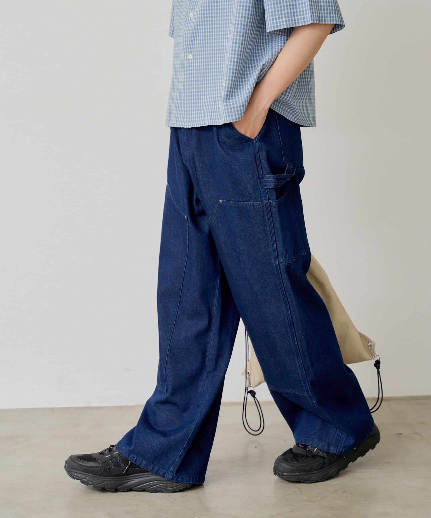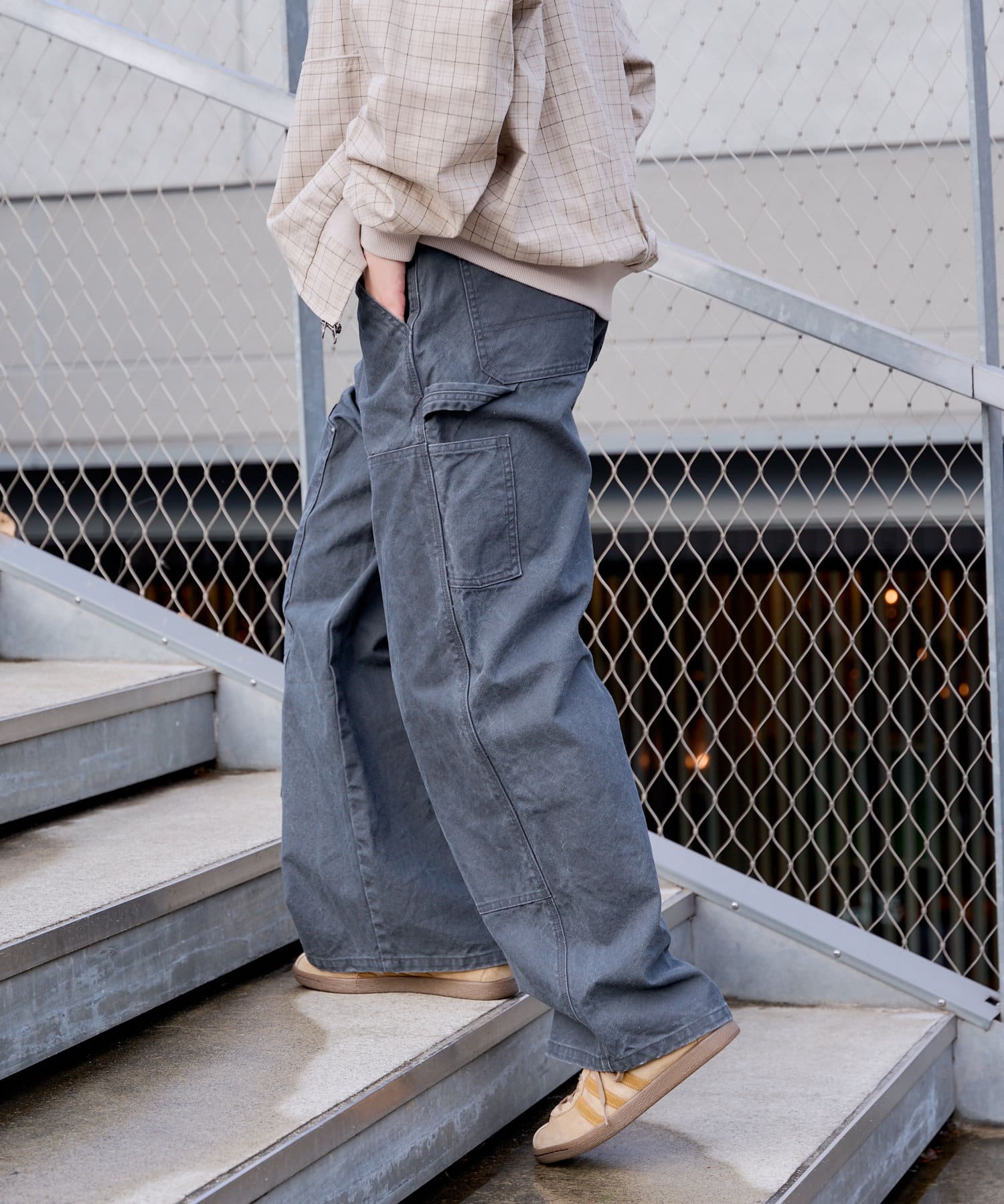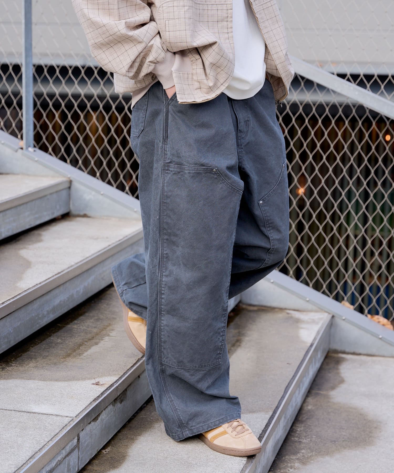 シルエットはリラックスフィットで、ステッチ配色とユーズド加工を抑え、カジュアルに見え過ぎないペインターパンツです。