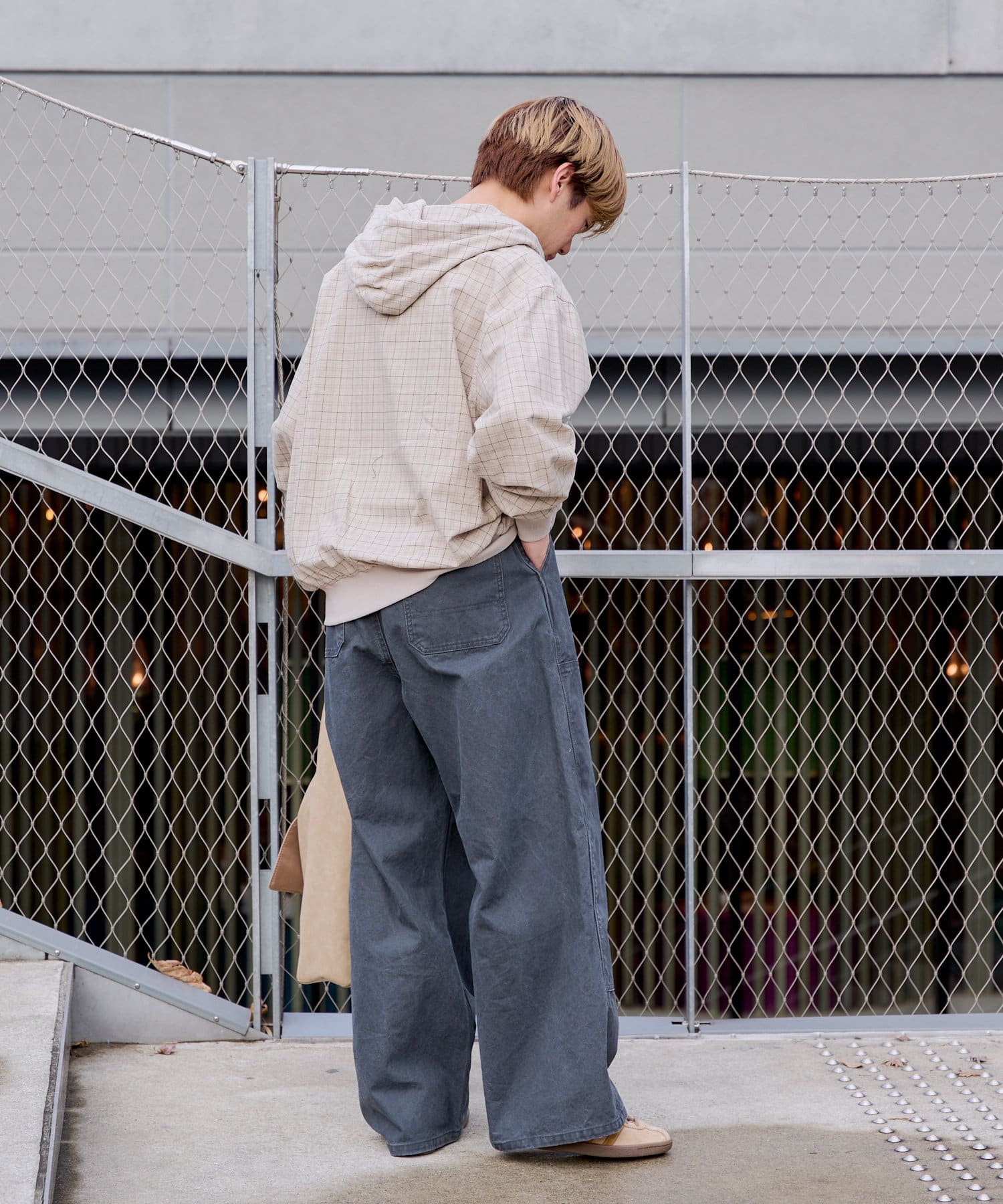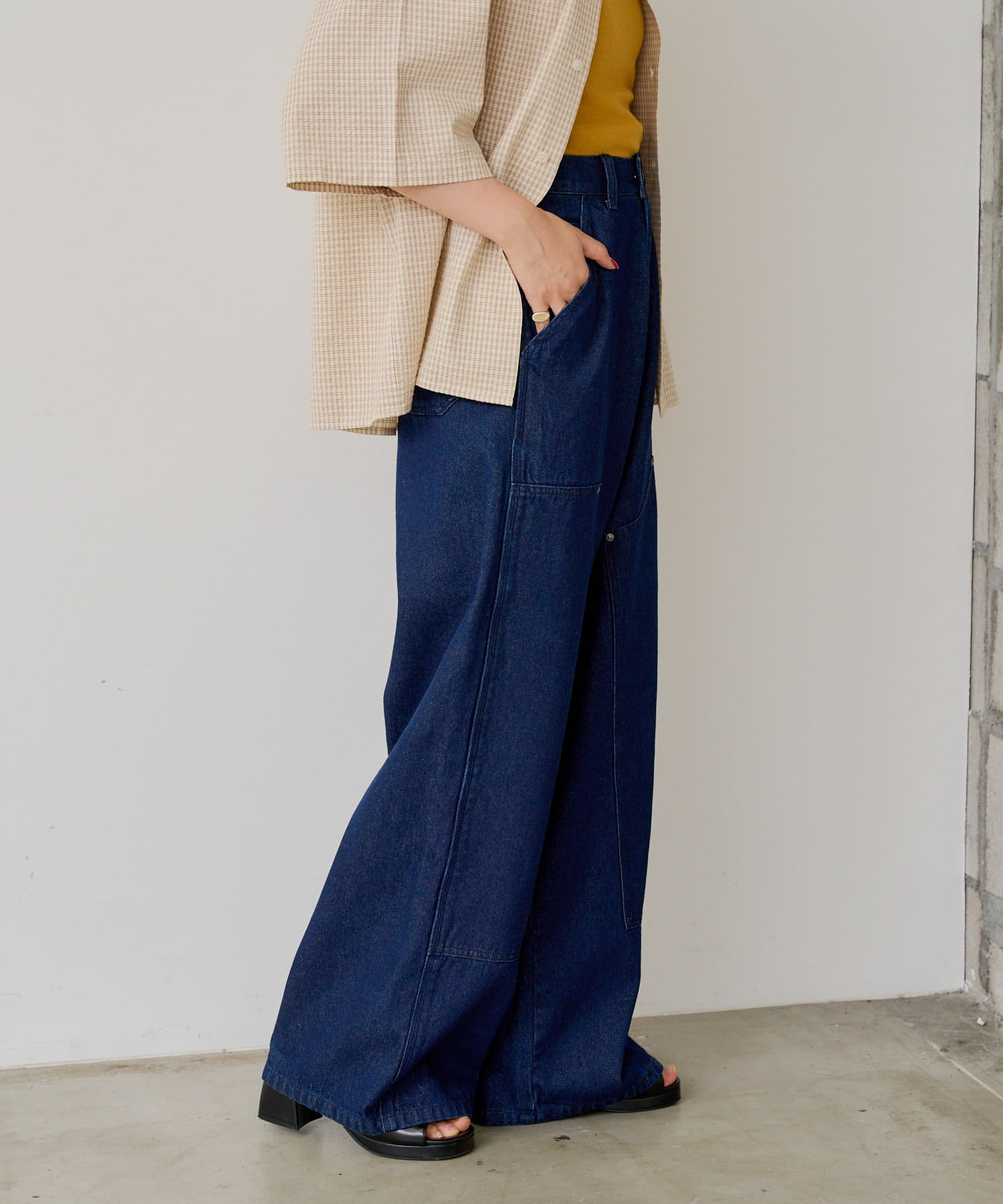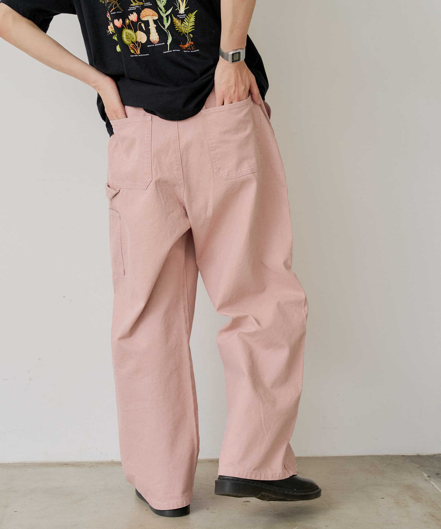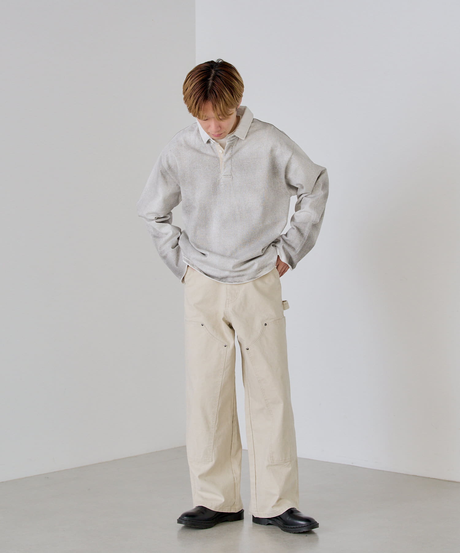 シルエットはリラックスフィットで、ステッチ配色とユーズド加工を抑え、カジュアルに見え過ぎないペインターパンツです。