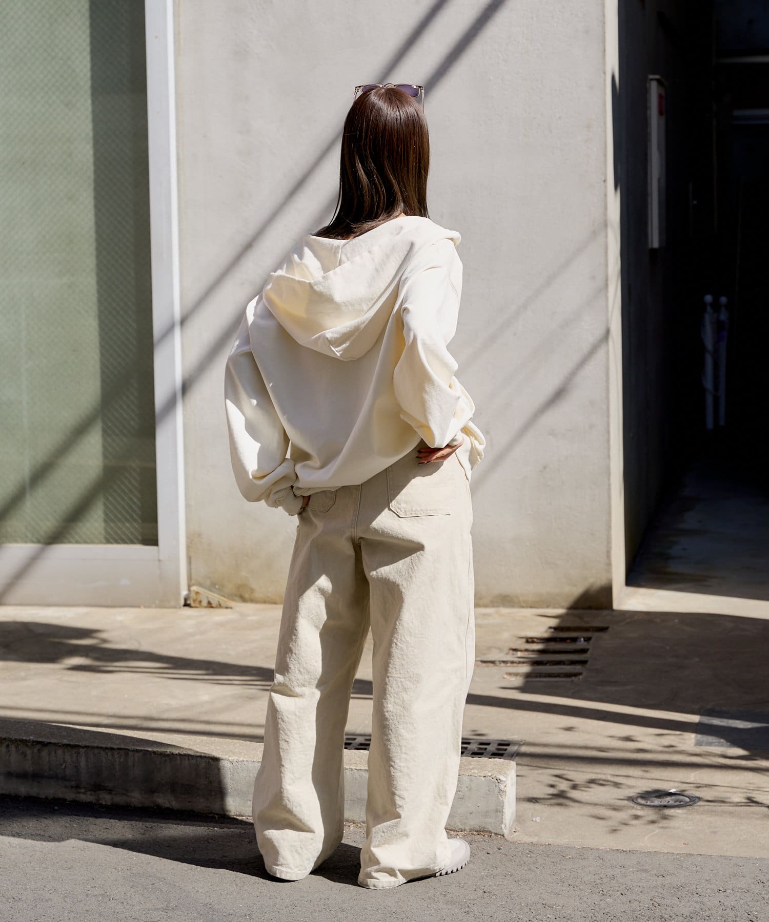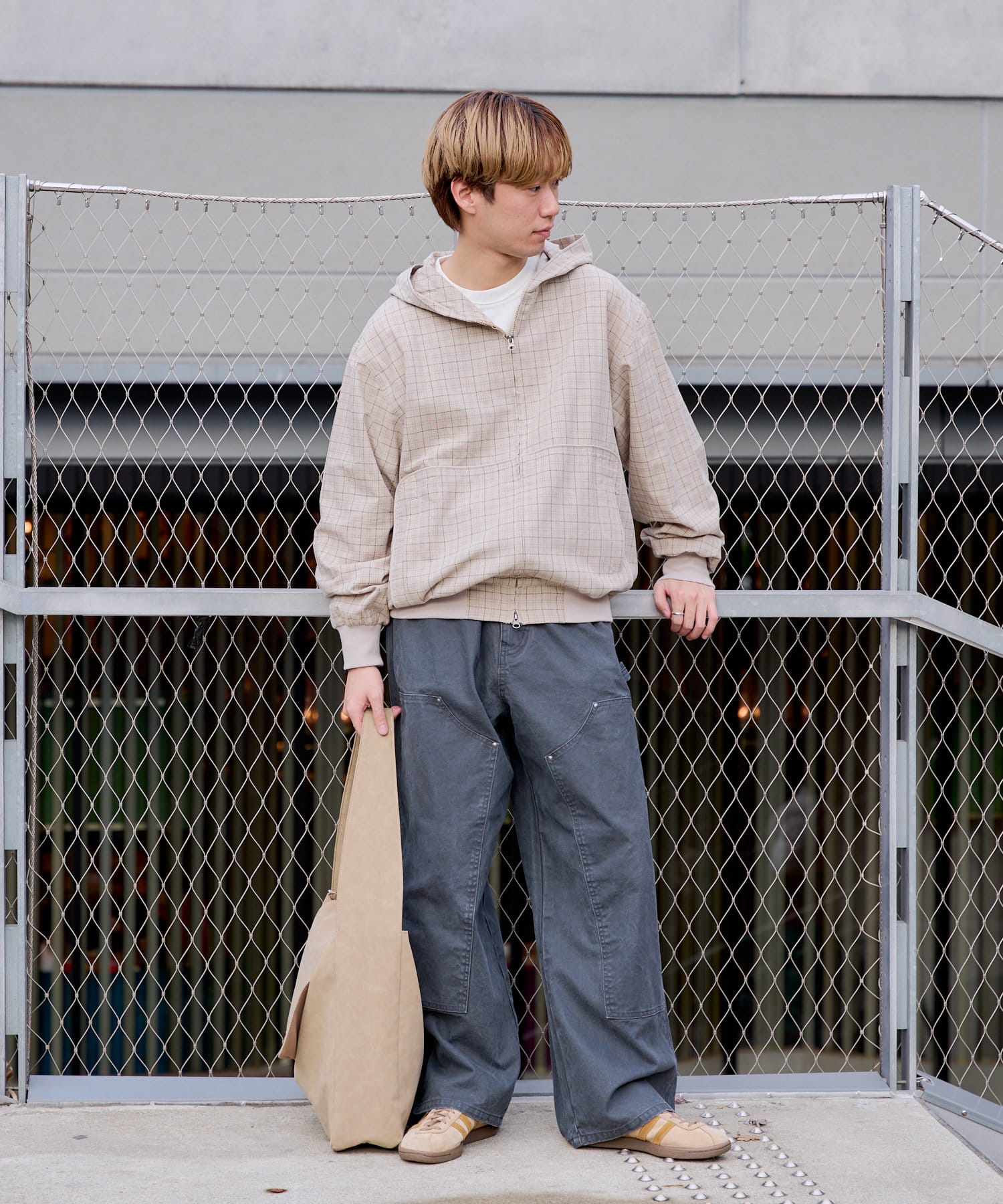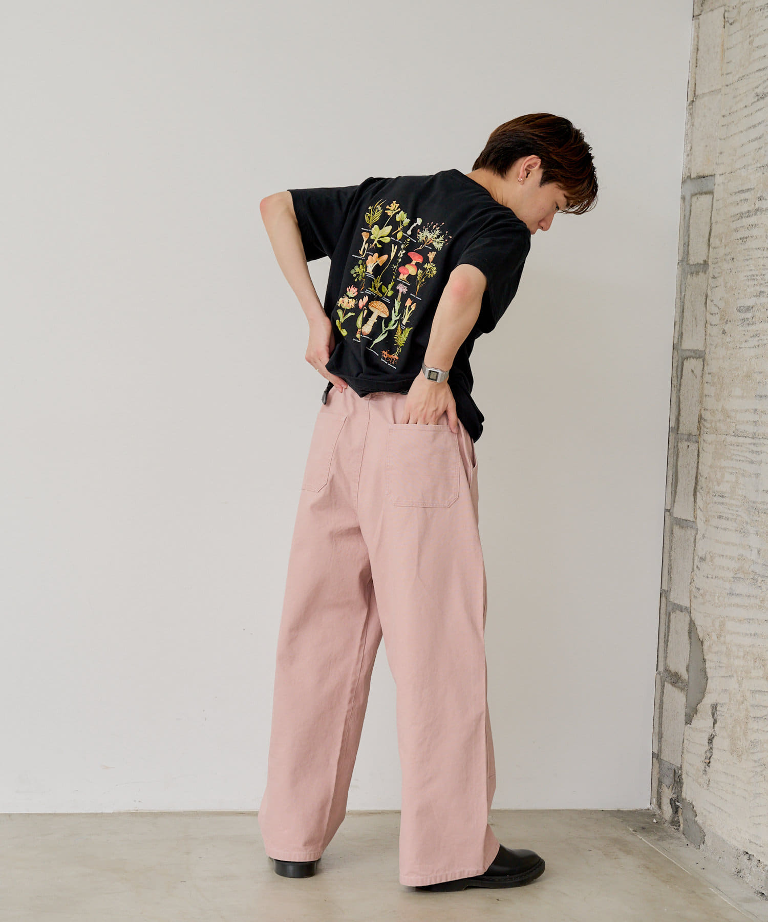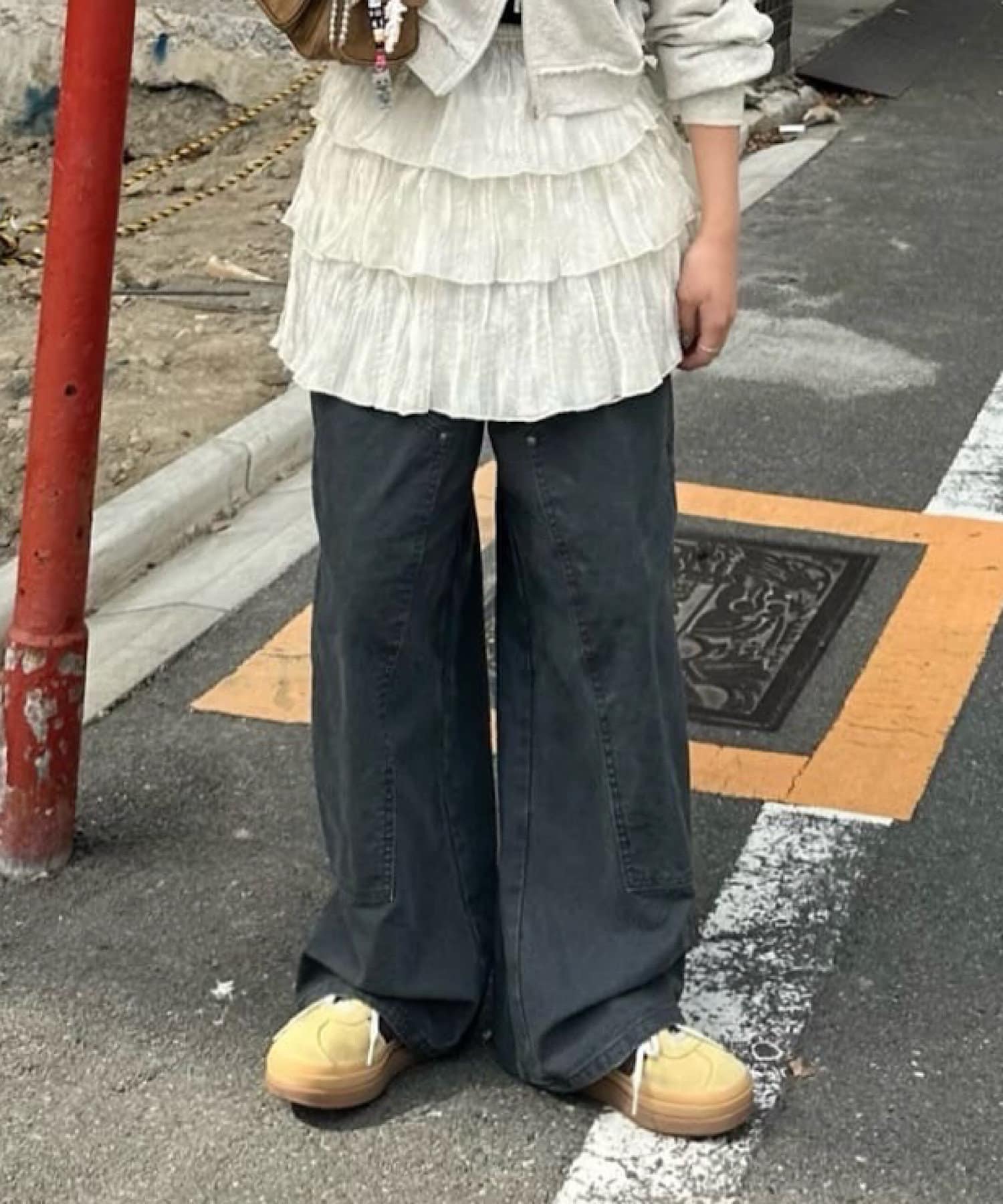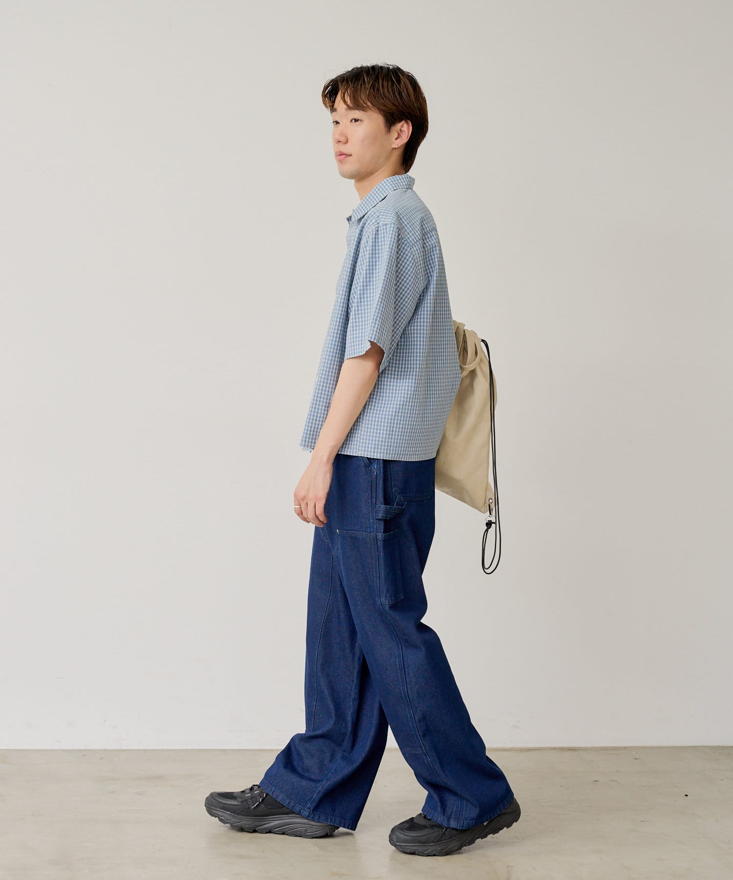シルエットはリラックスフィットで、ステッチ配色とユーズド加工を抑え、カジュアルに見え過ぎないペインターパンツです。