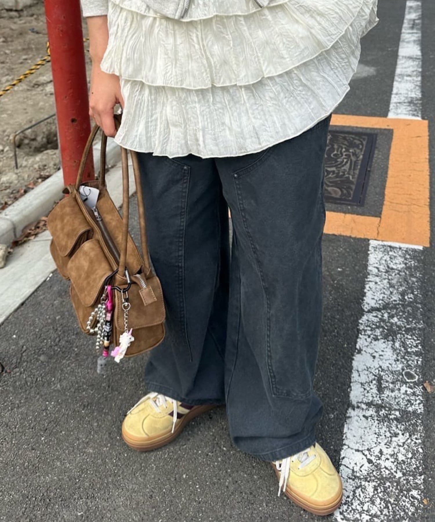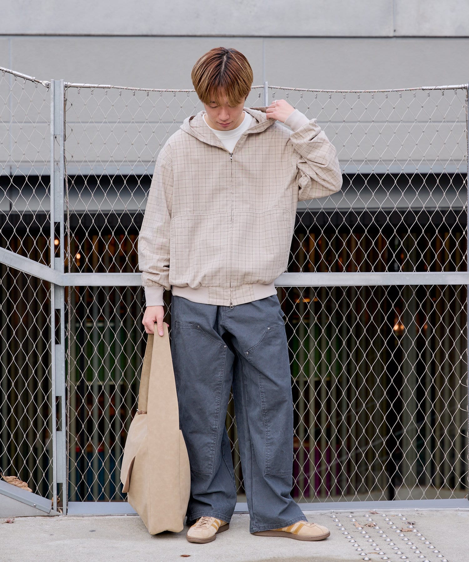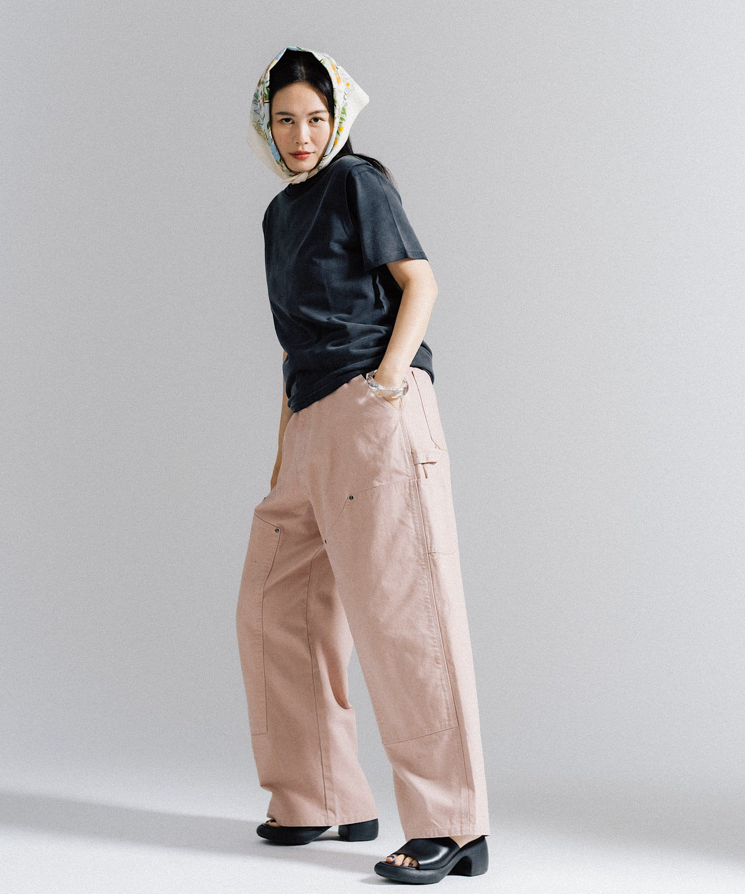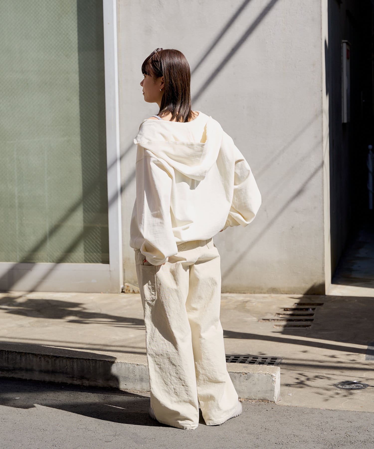 シルエットはリラックスフィットで、ステッチ配色とユーズド加工を抑え、カジュアルに見え過ぎないペインターパンツです。