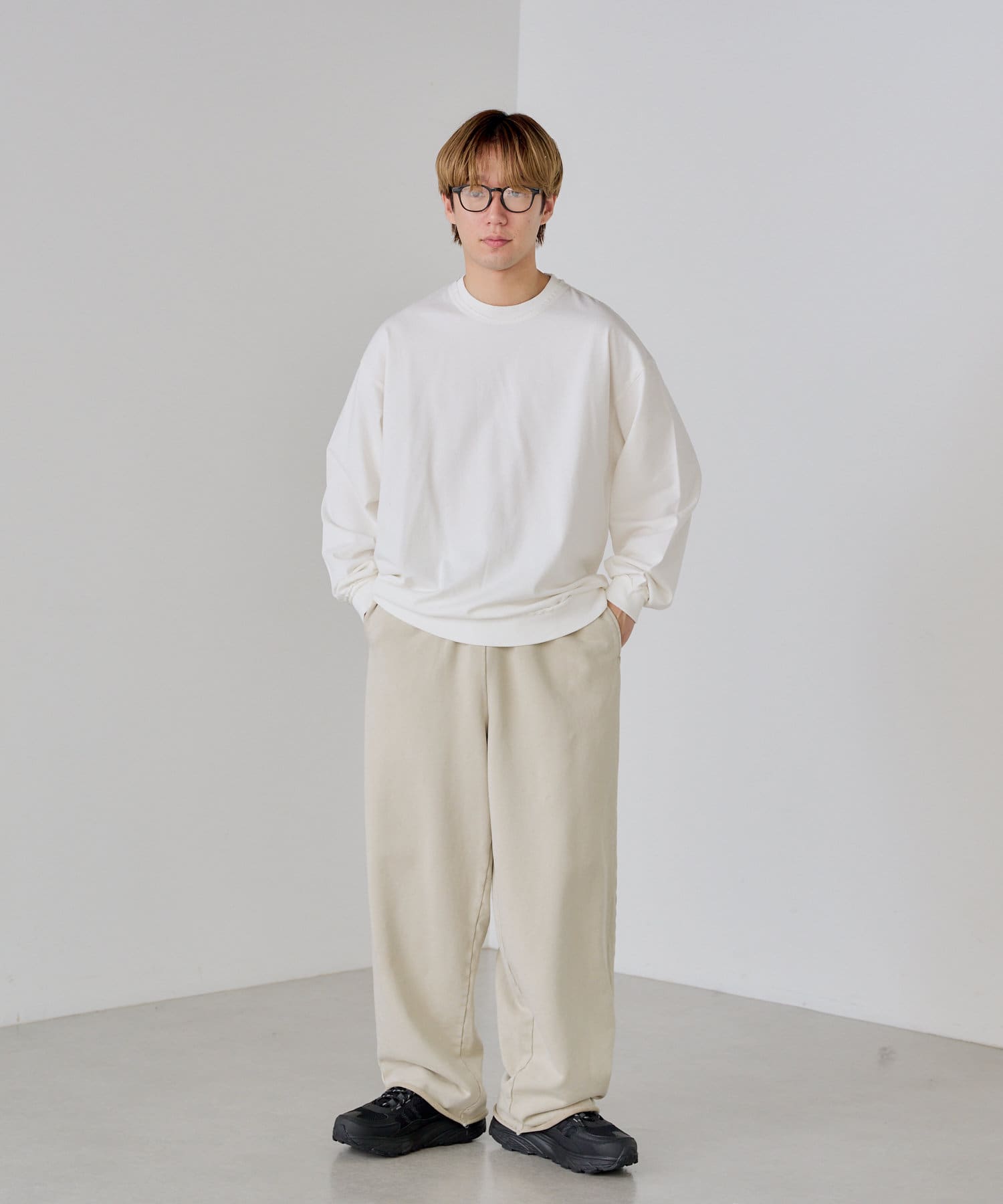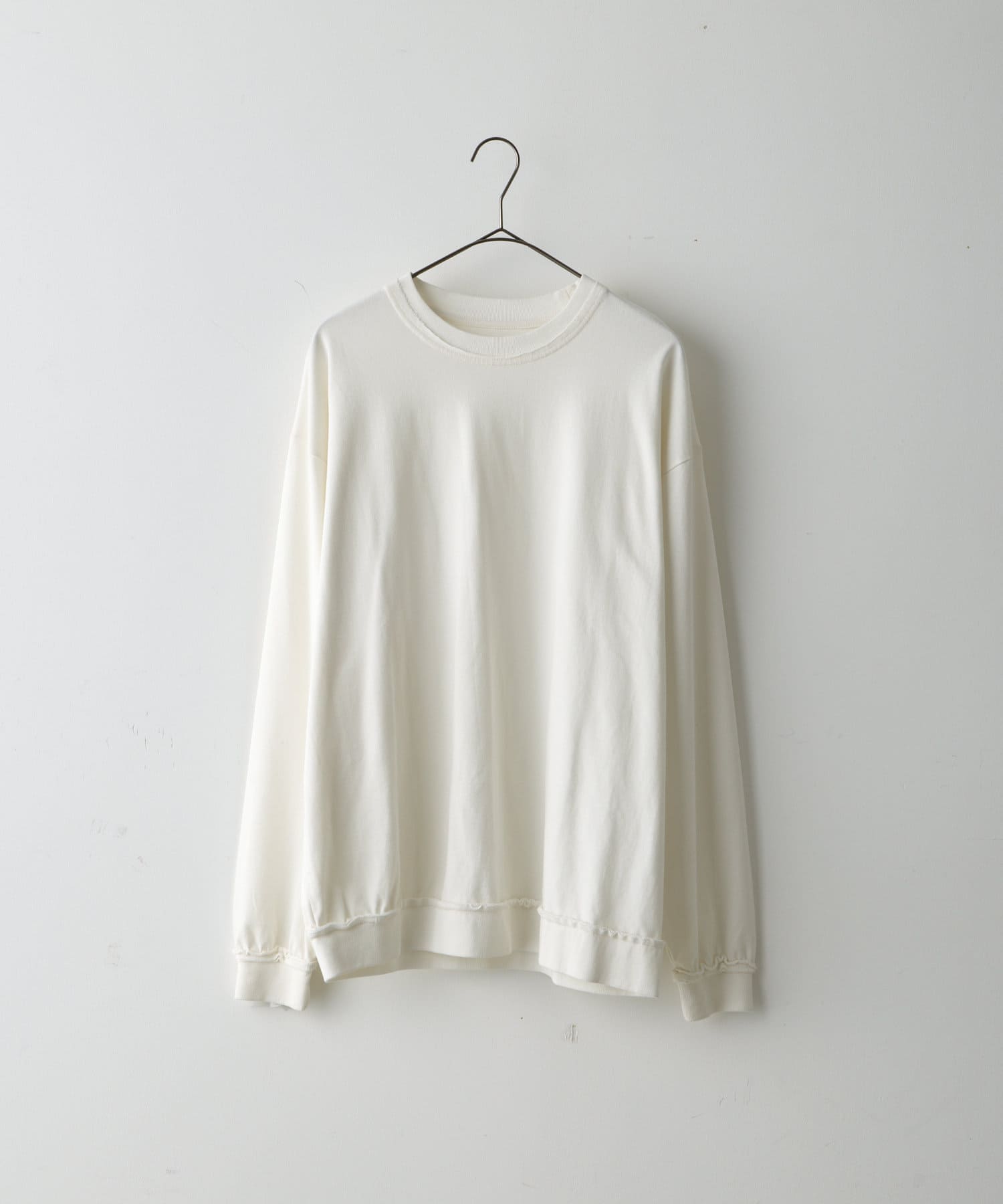 シンプルなクルーネック仕様で、シルエットは肩がナチュラルに落ちるドロップショルダー、程よくゆとりを持たせたリラックスフィットシルエットです。