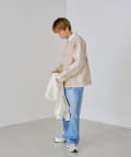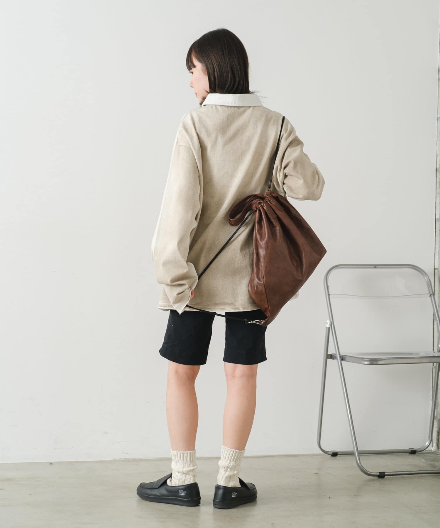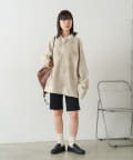 シンプルなデザインなので、デニムやチノパン、ショートパンツからスラックスまで幅広いボトムスと合わせやすく、着回し力があるアイテムです。