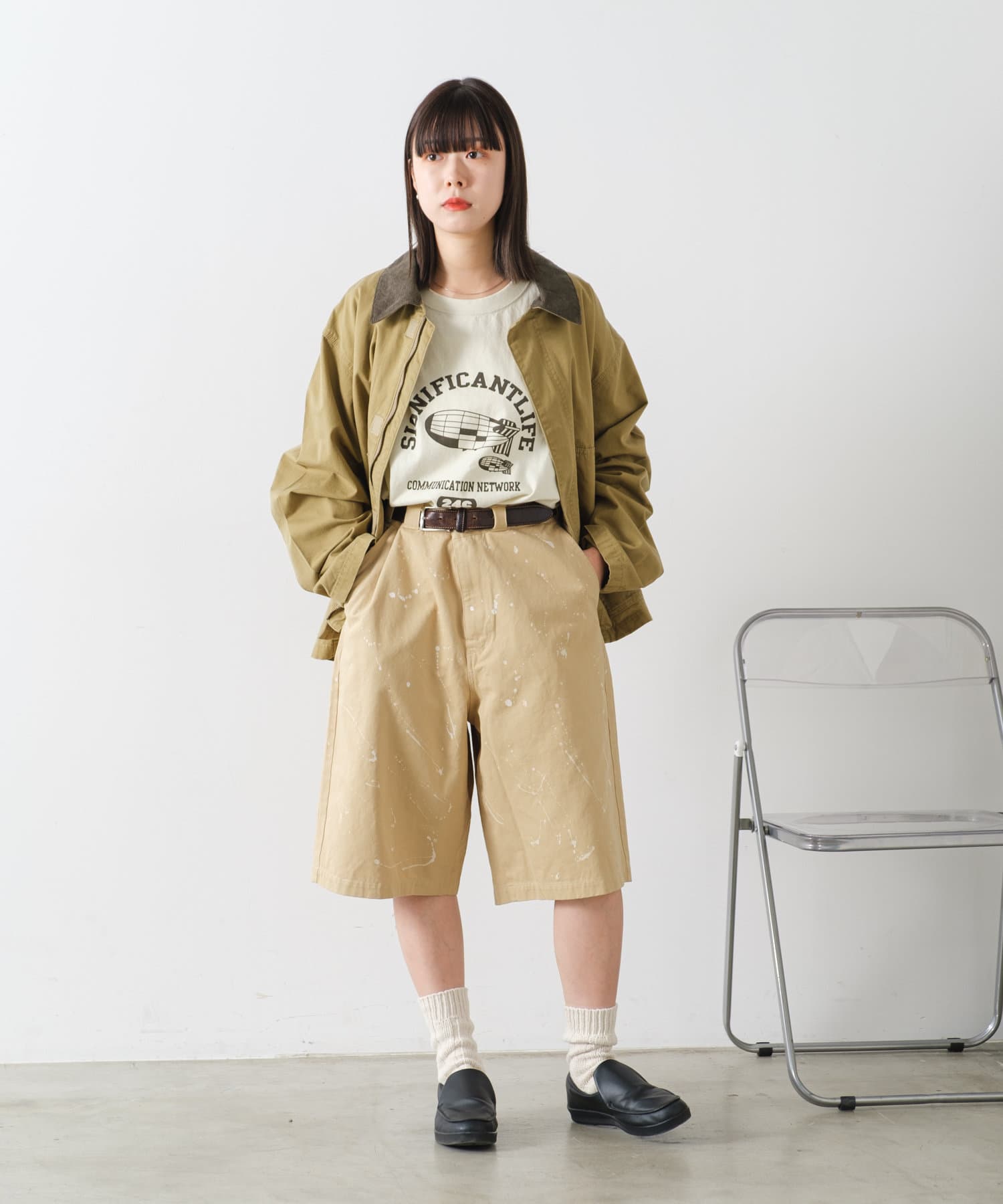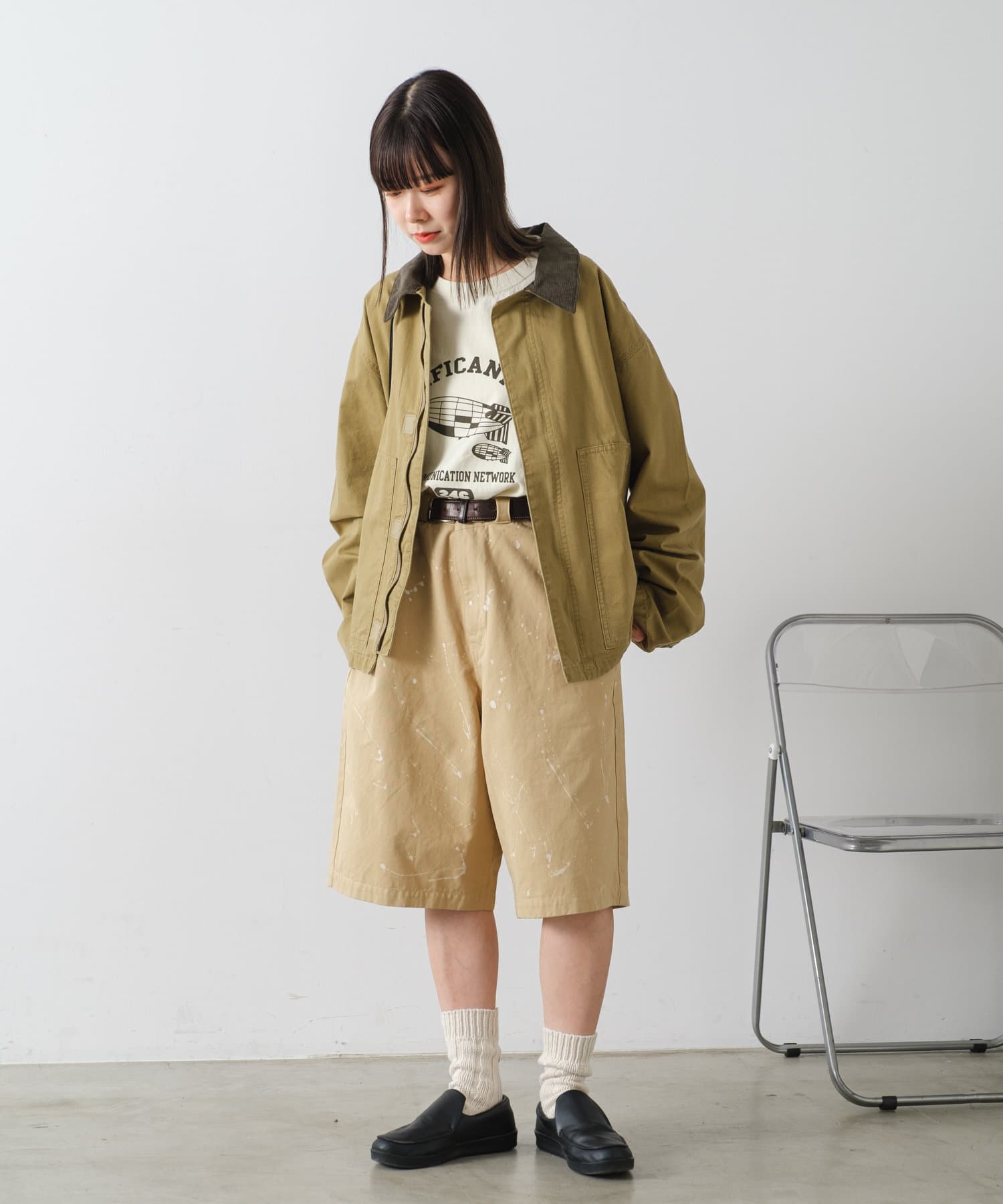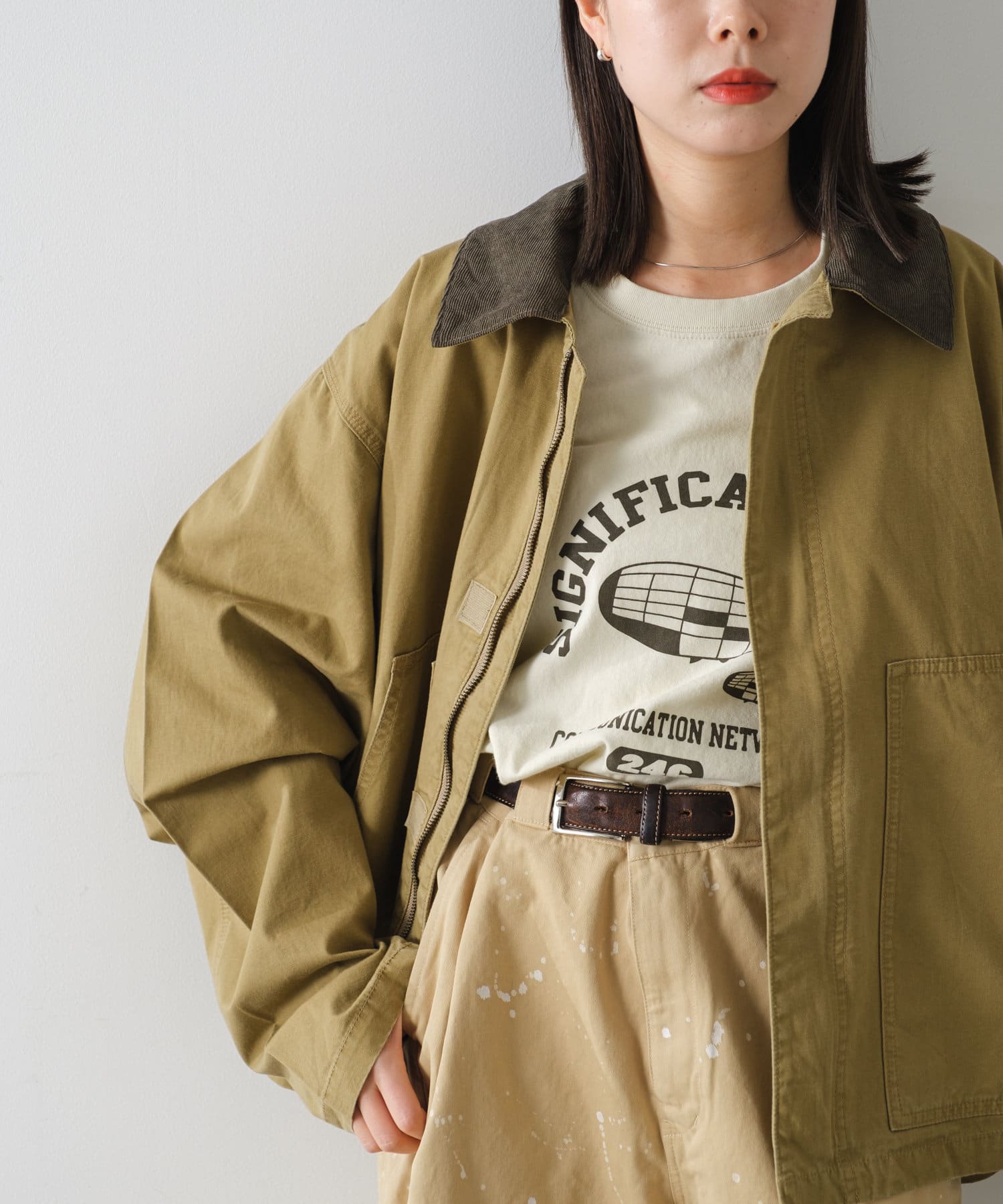 トレンド感のあるすっきりとした着丈はボトムバランスがとりやすく、すっきりとしたパンツからワイドパンツまで幅広いボトムと相性が良く、デニム、チノパン、カーゴパンツ、スラックスまで様々なアイテムとのスタイリングが楽しめます。