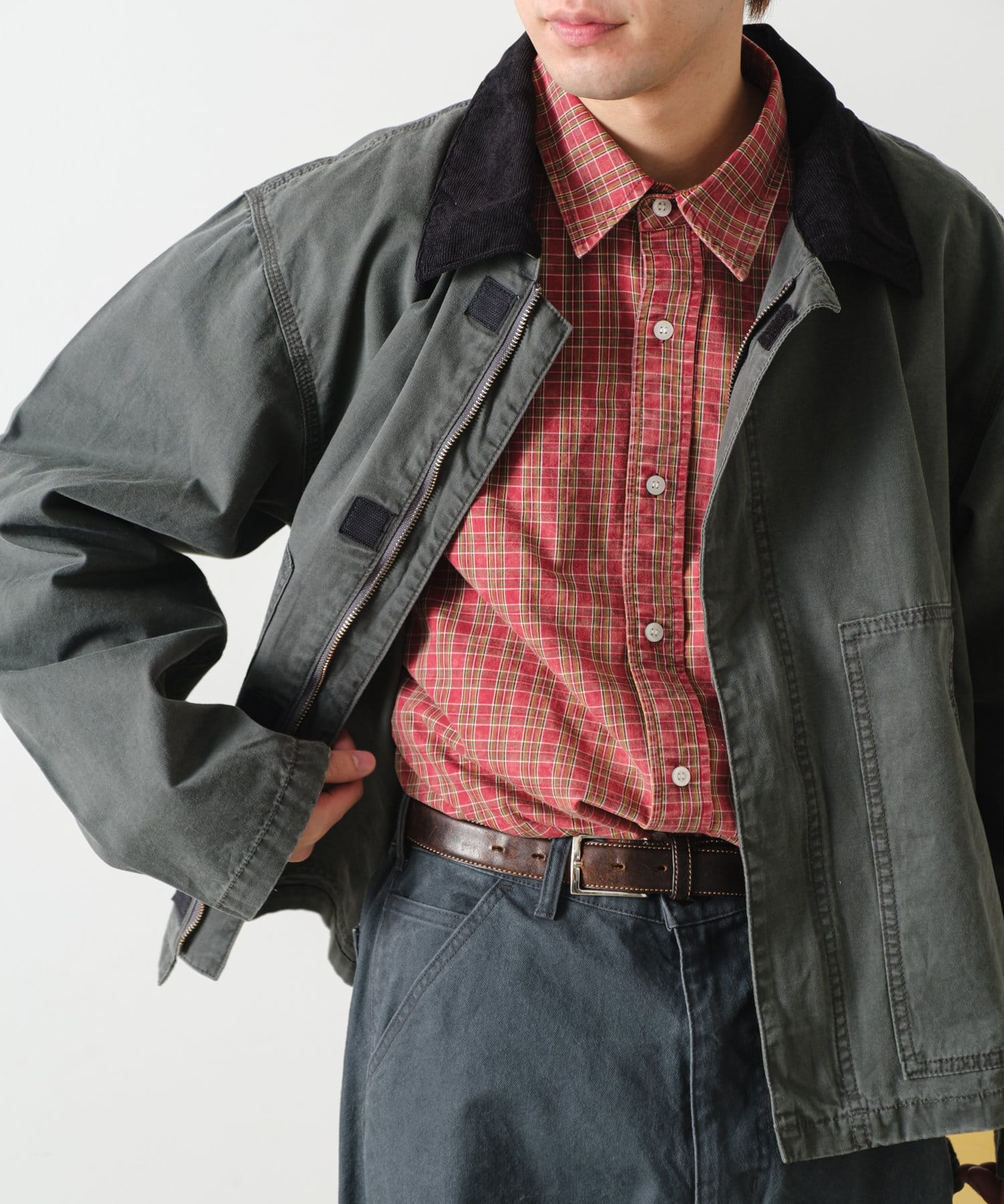 こちらの型はGジャンとカバーオールの中間のモデルとして位置づけられているアイテムで、ボタンタイプが多い中でファスナーを使用しているため土臭くなり過ぎないスタイリッシュな見た目が特徴です。