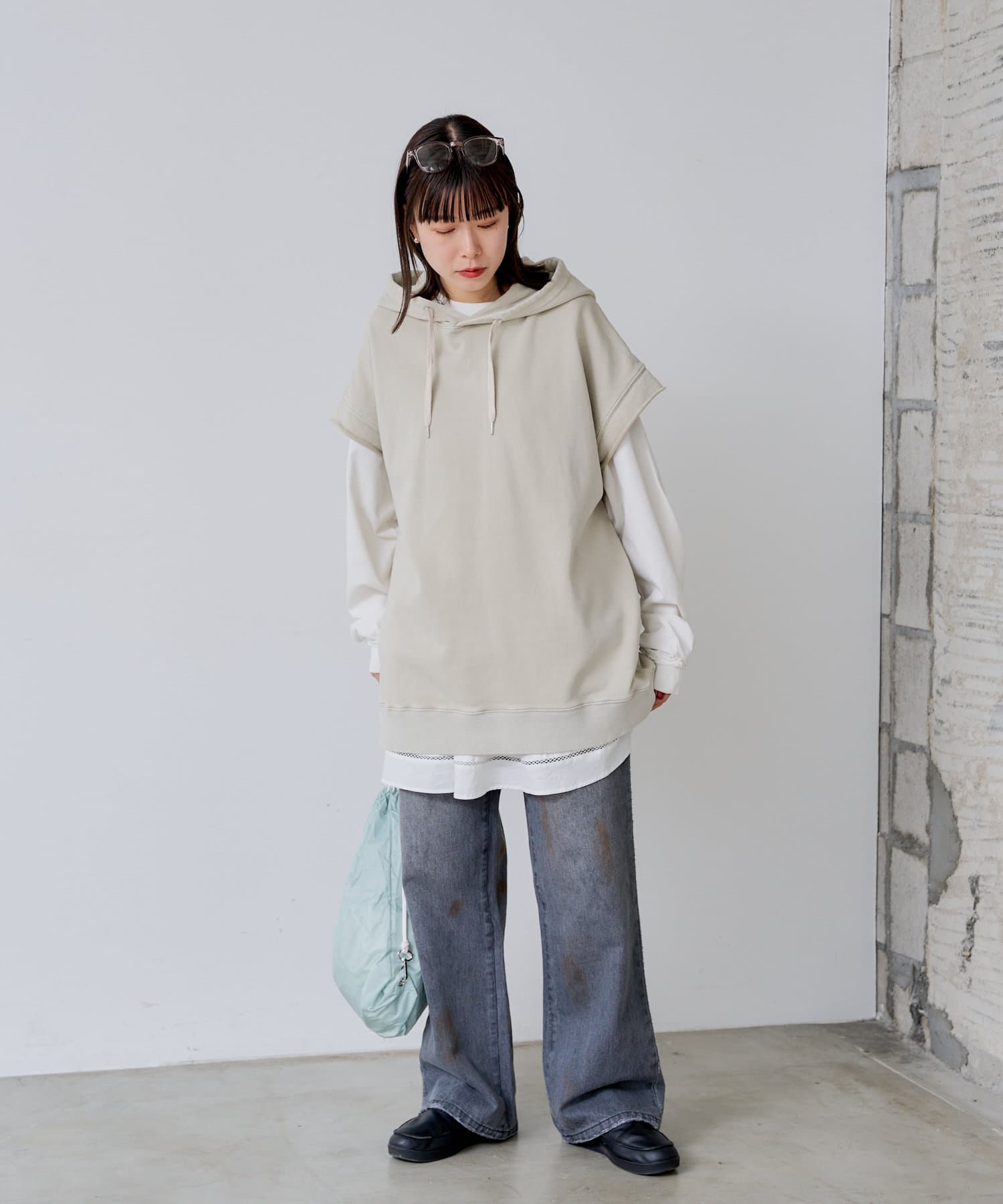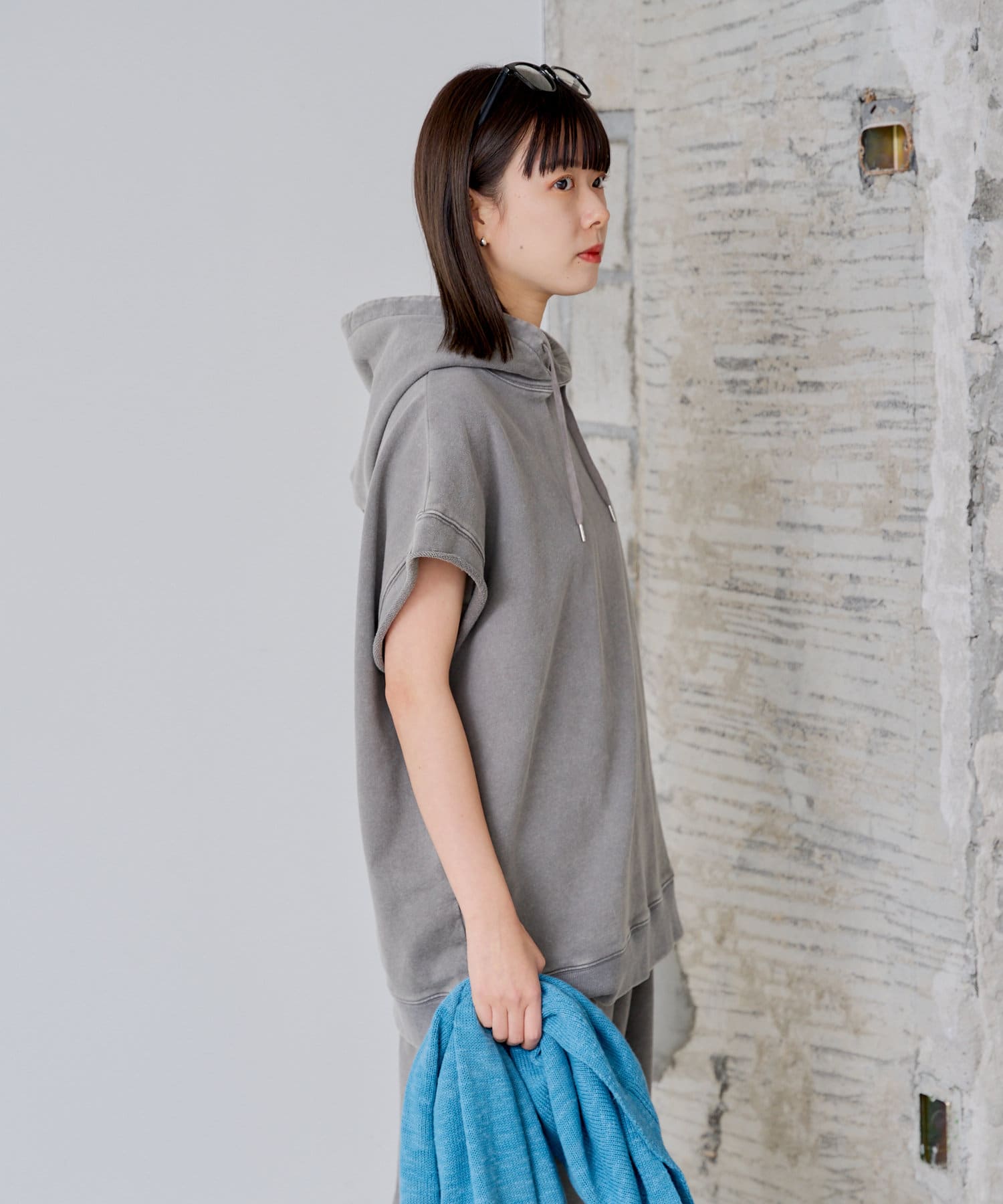軽くて柔らかい裏毛スウェットを採用し、経年変化によるフェード感を表現したスウェットフーディ-ベストです。