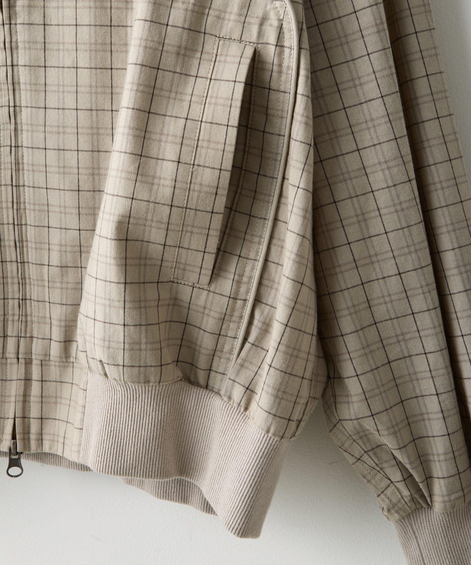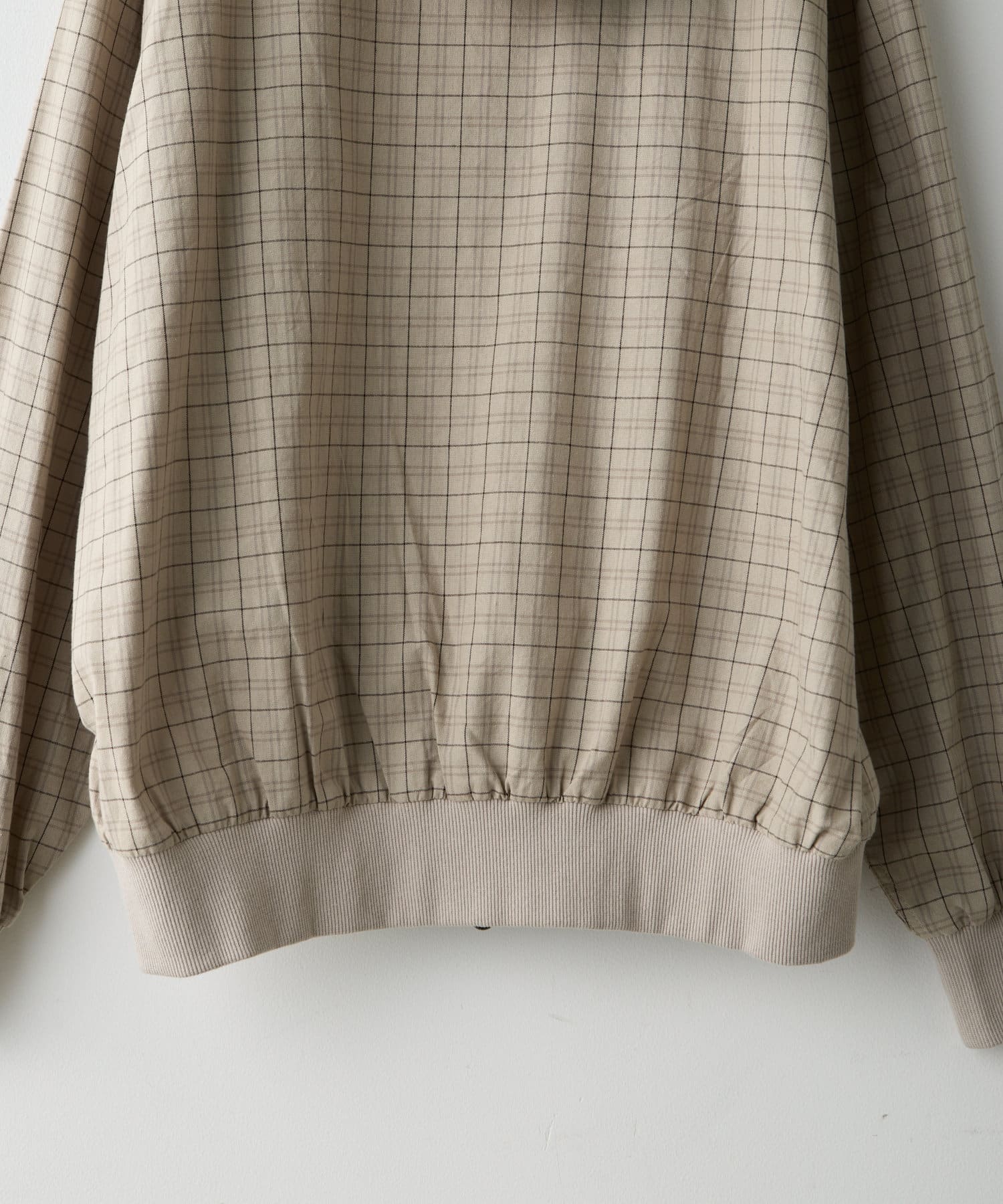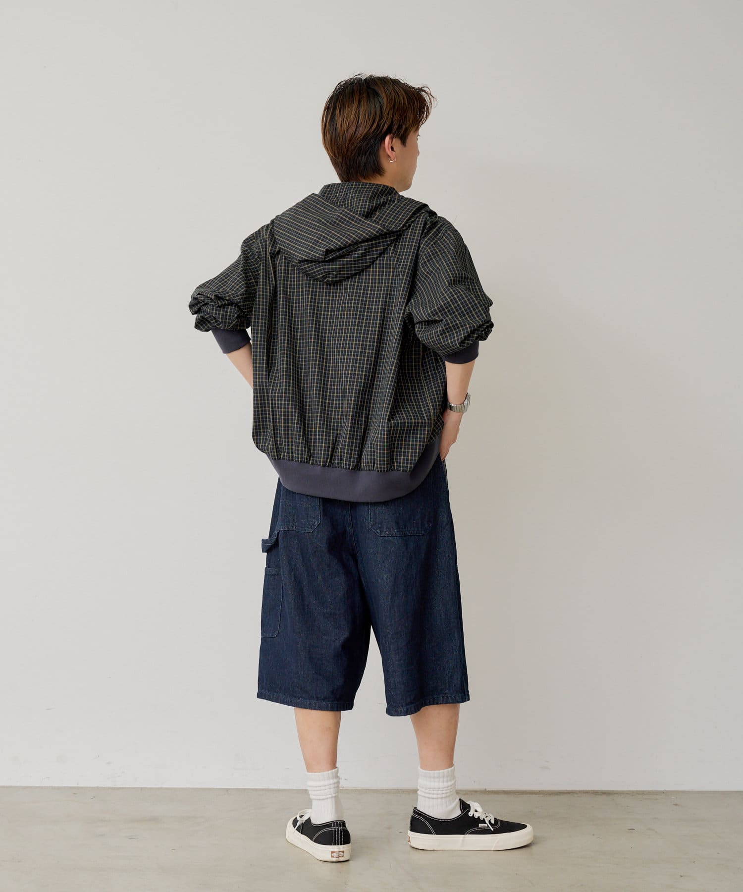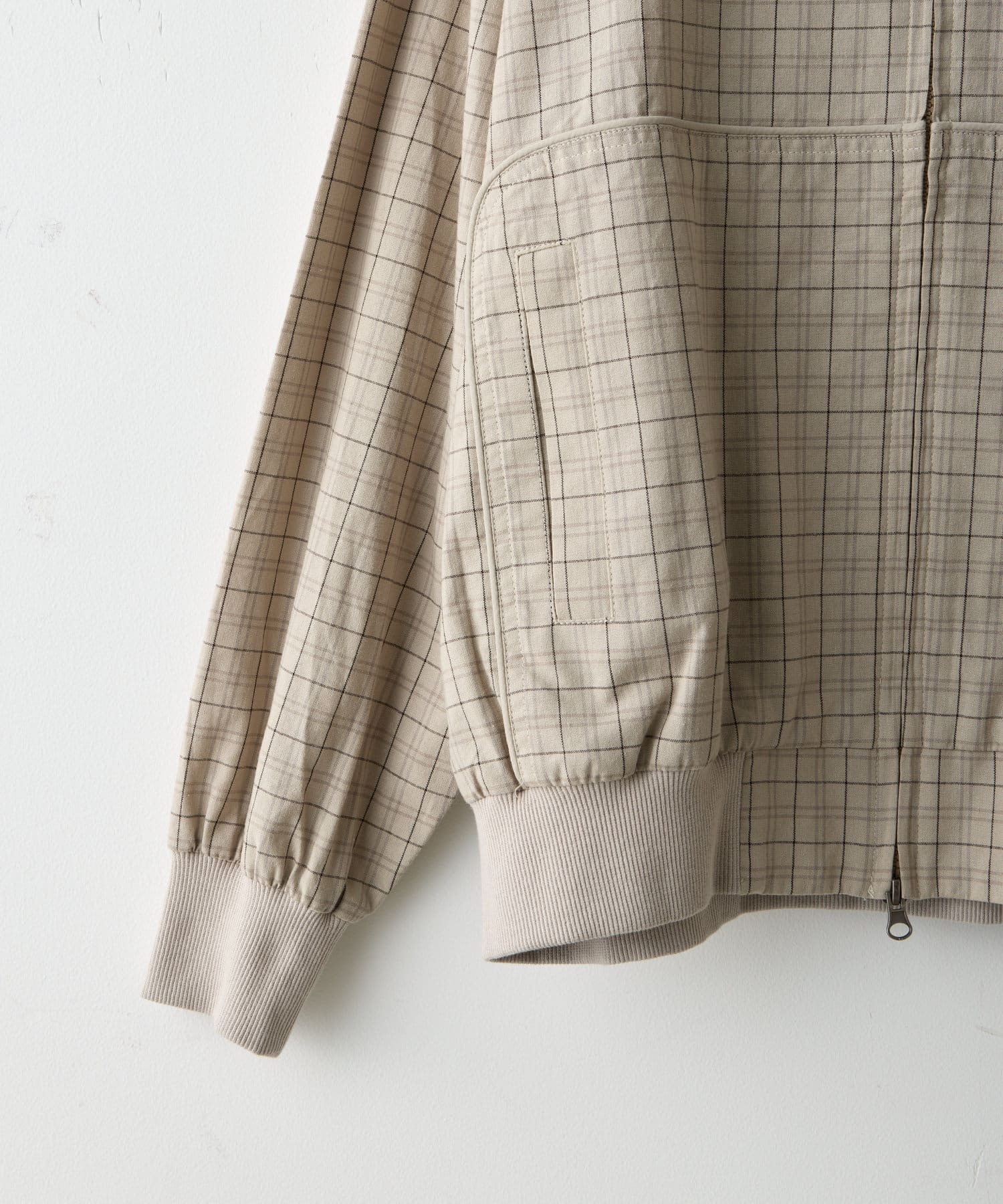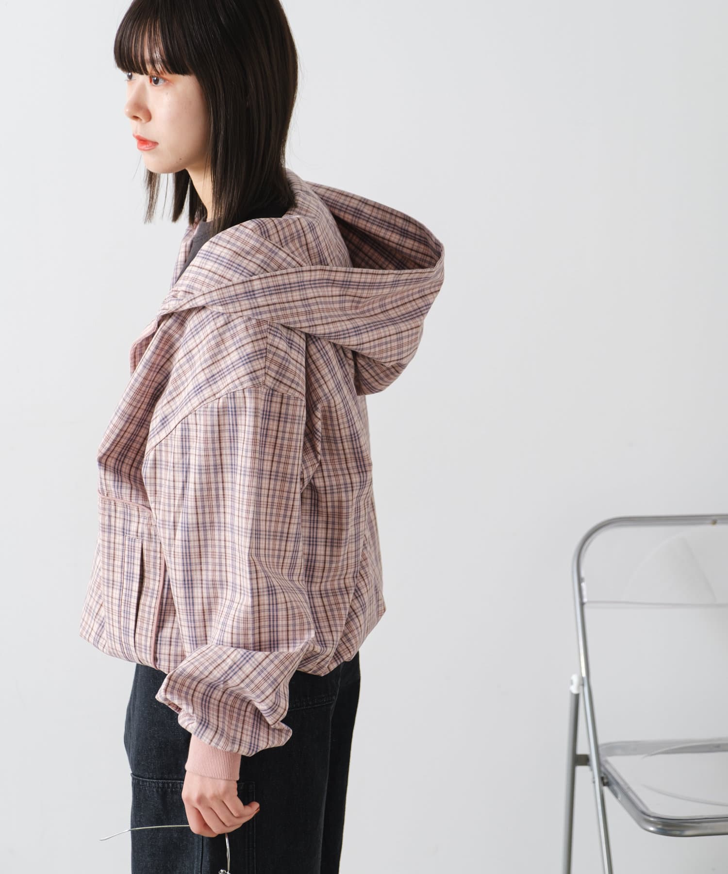 ヴィンテージのビーチパーカーをサンプルベースに、薄手のシャツ生地を使用したチェックジップフーディーシャツです。