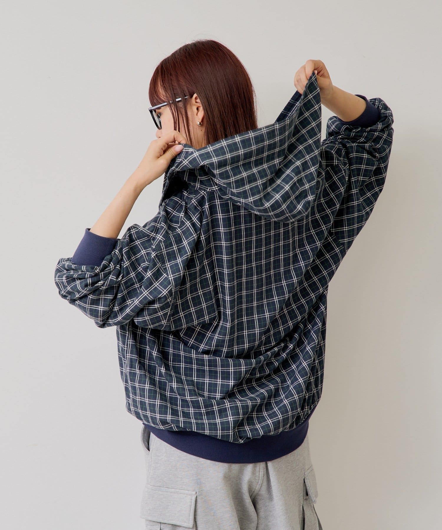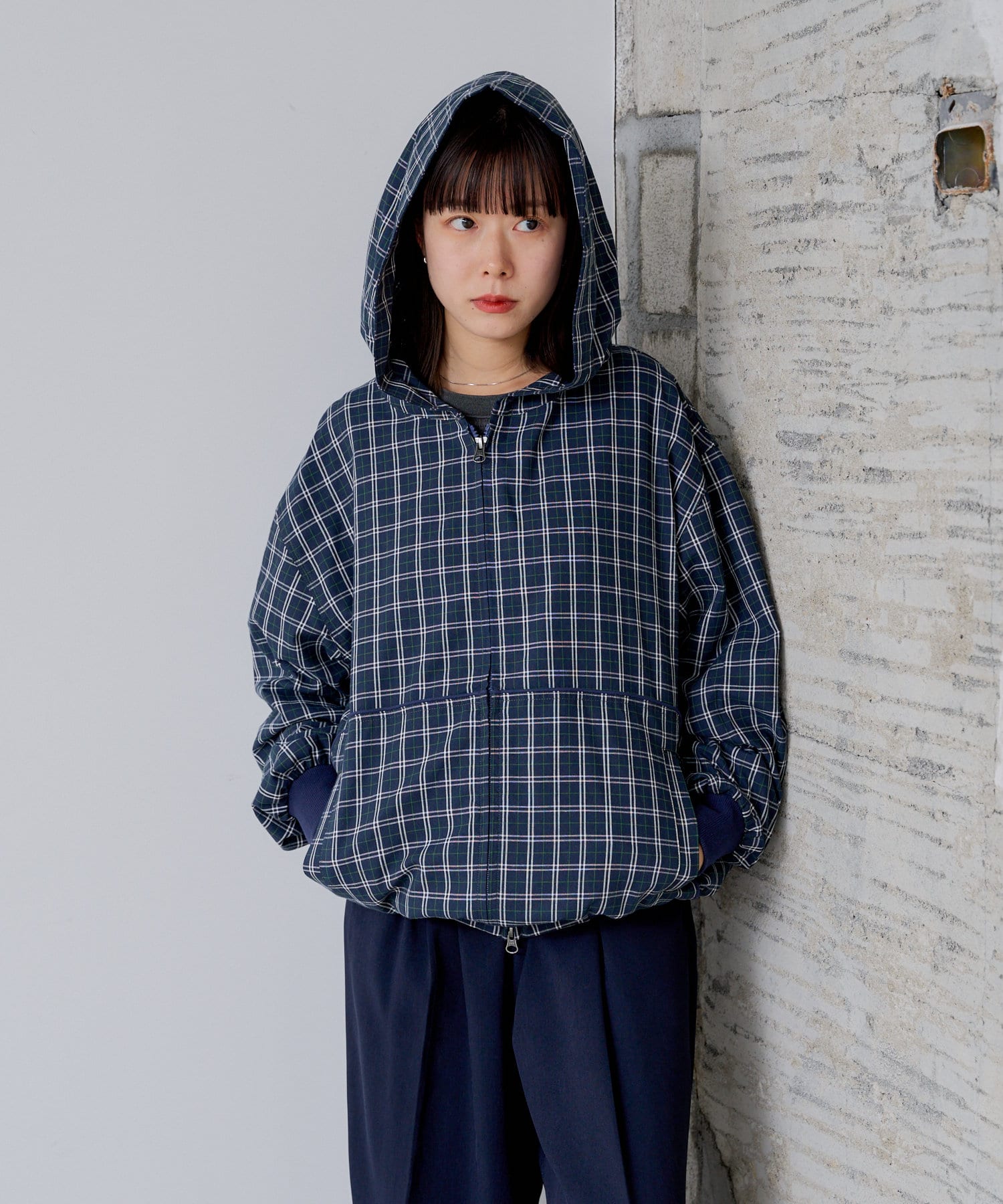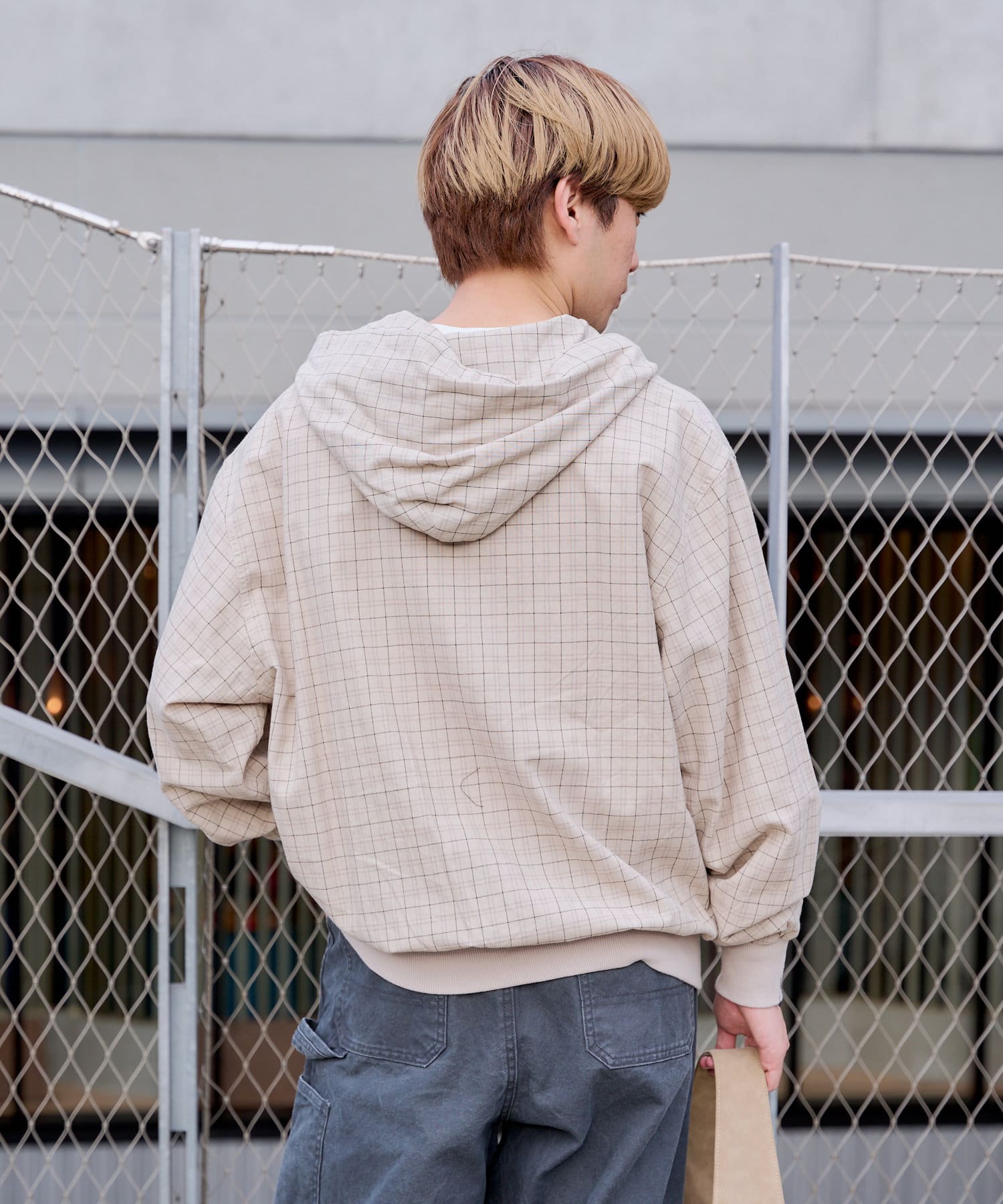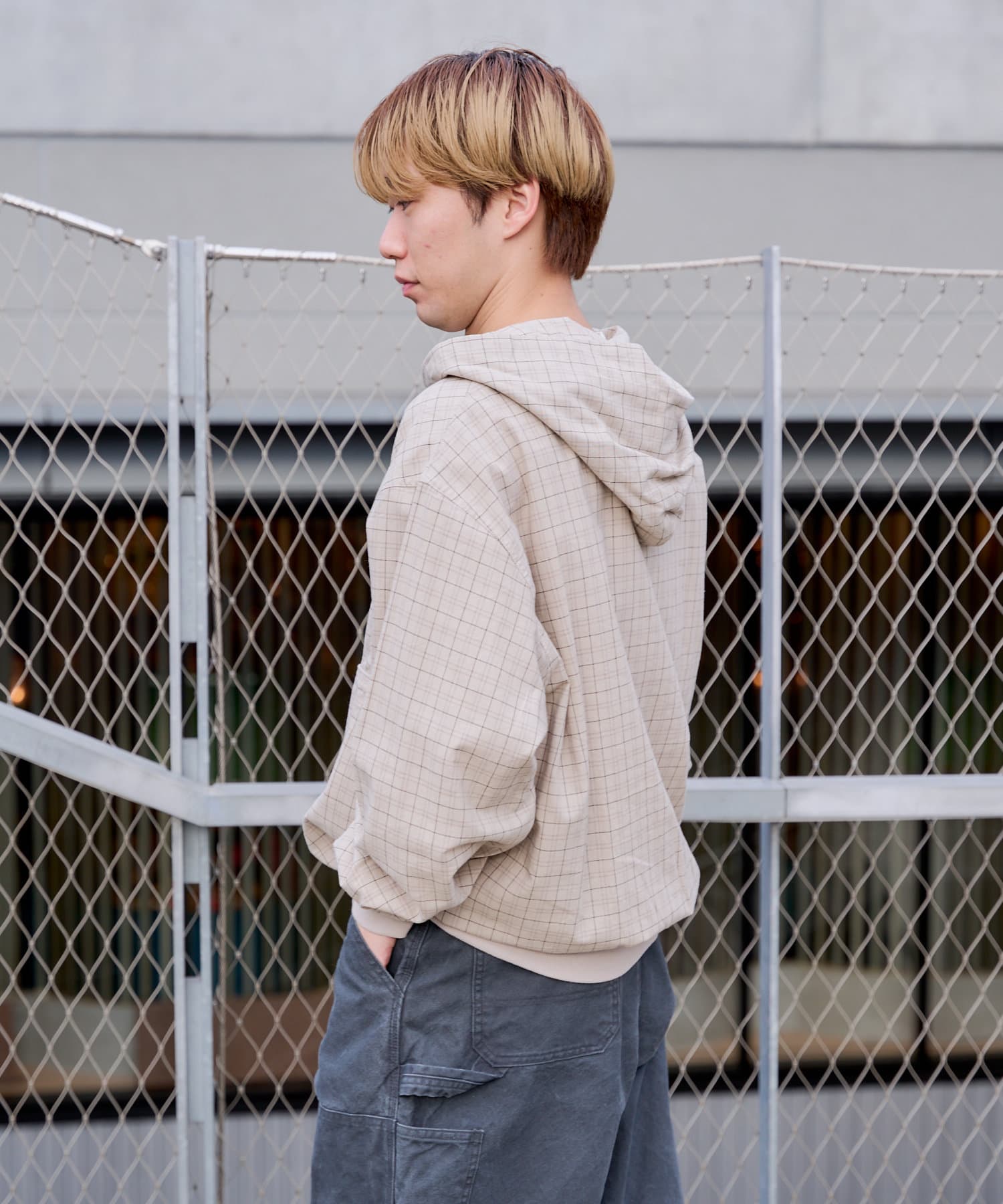 【UNISEX】CHECK ZIP HOODIE SHIRT
