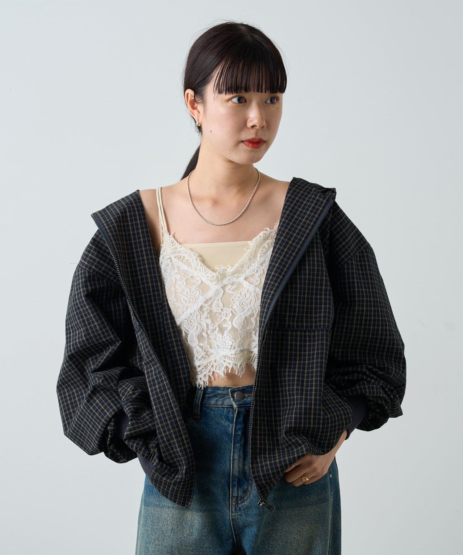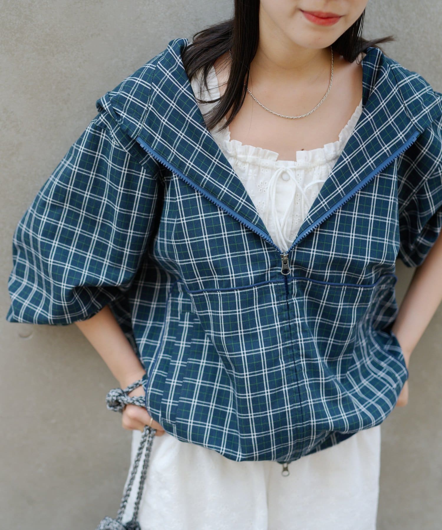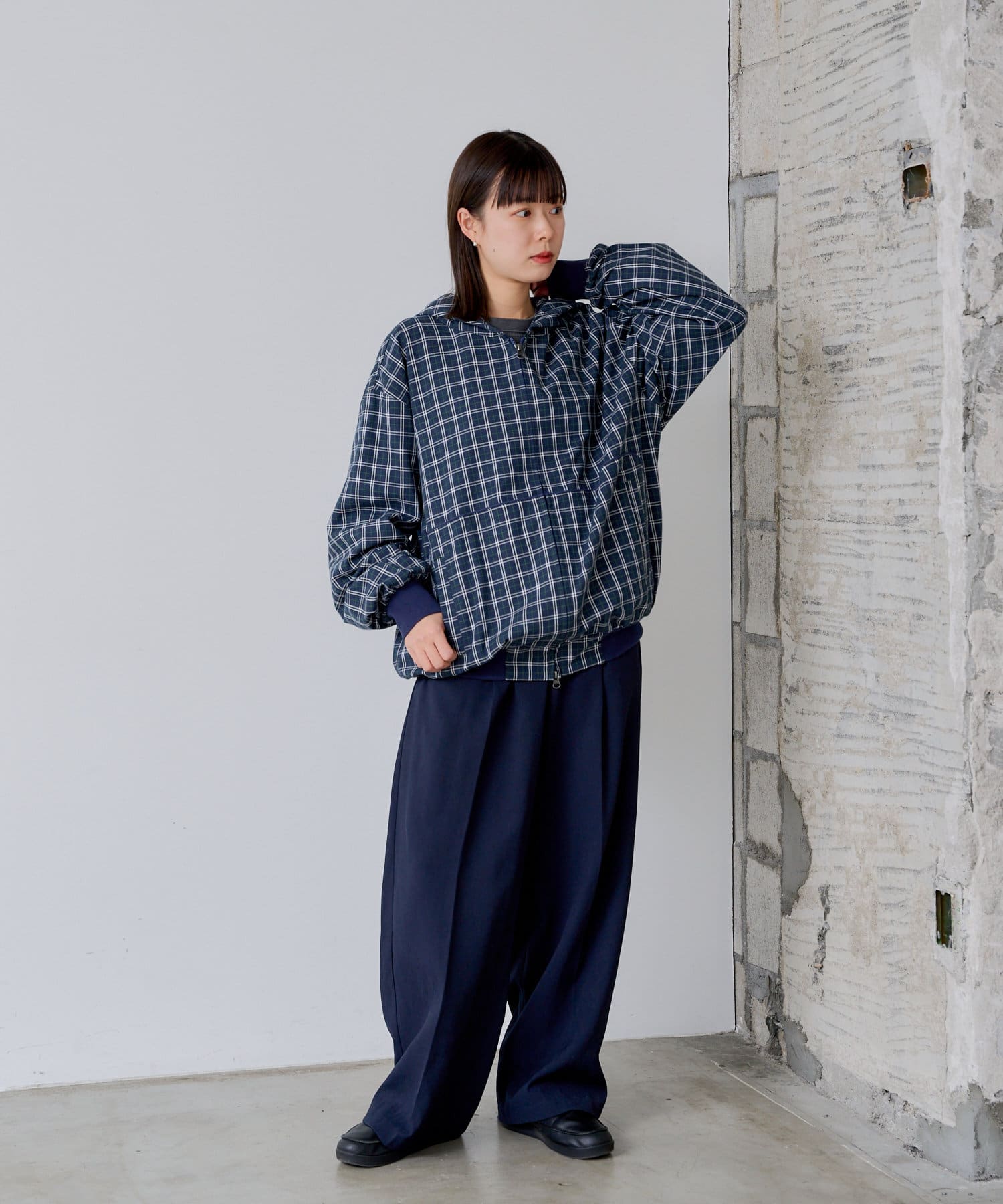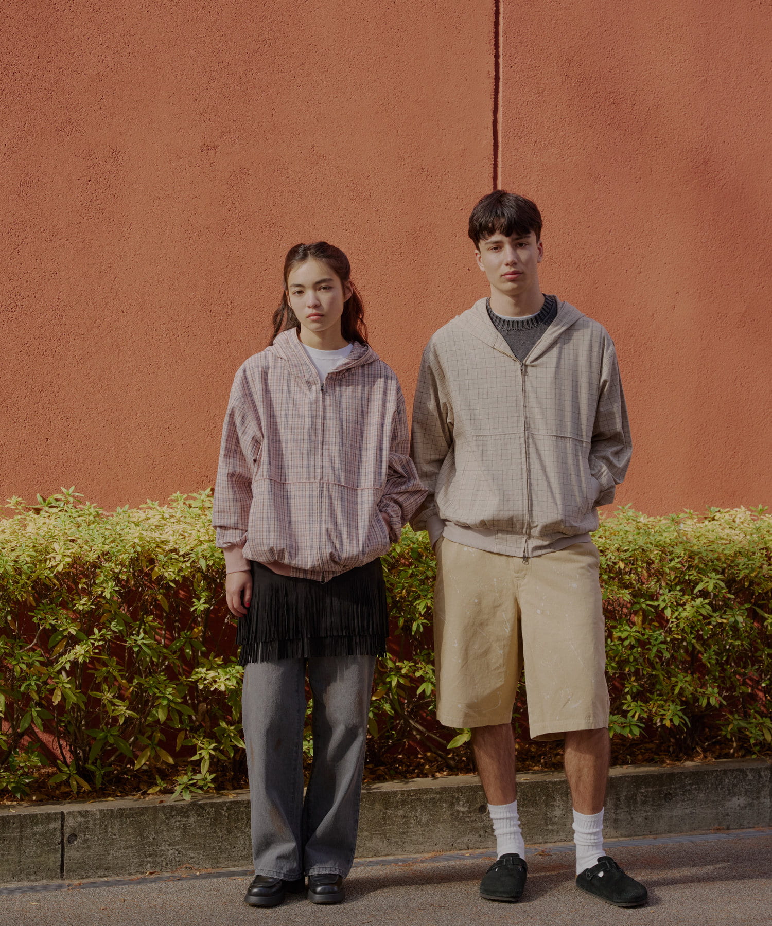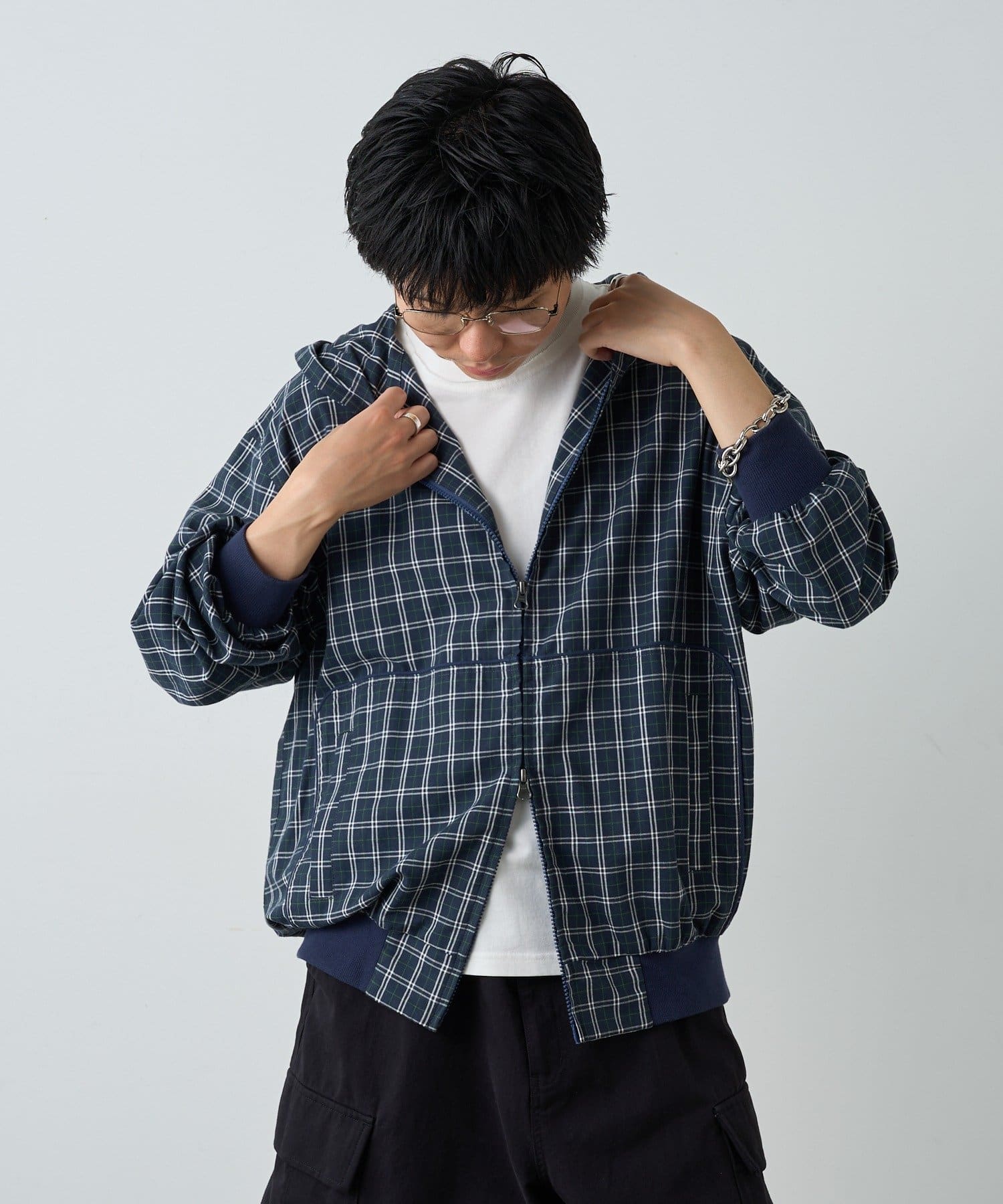 【UNISEX】CHECK ZIP HOODIE SHIRT