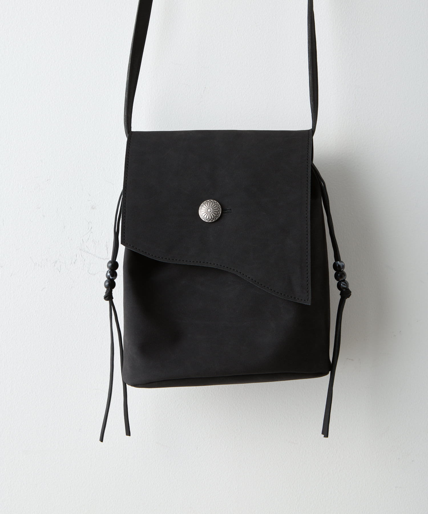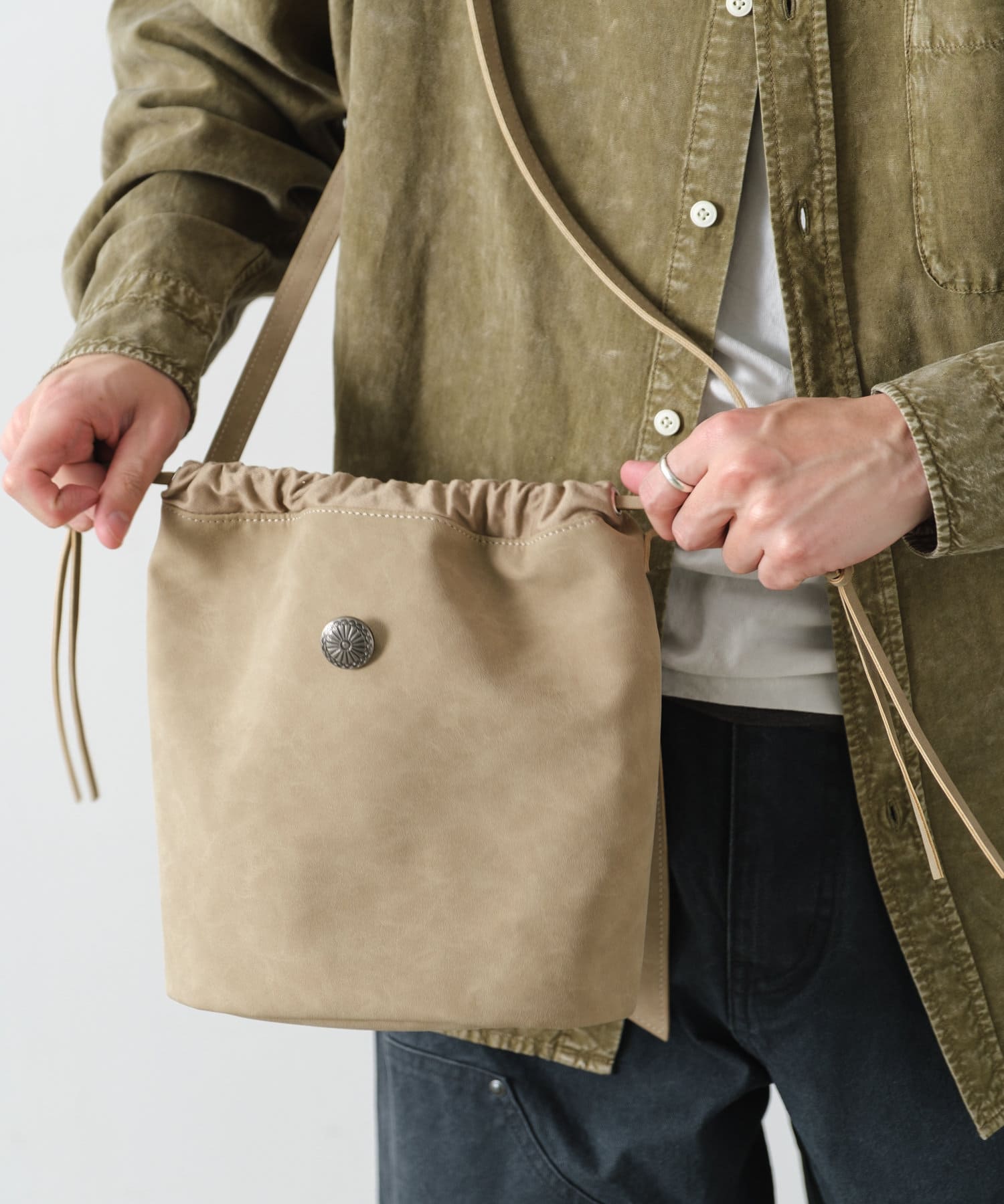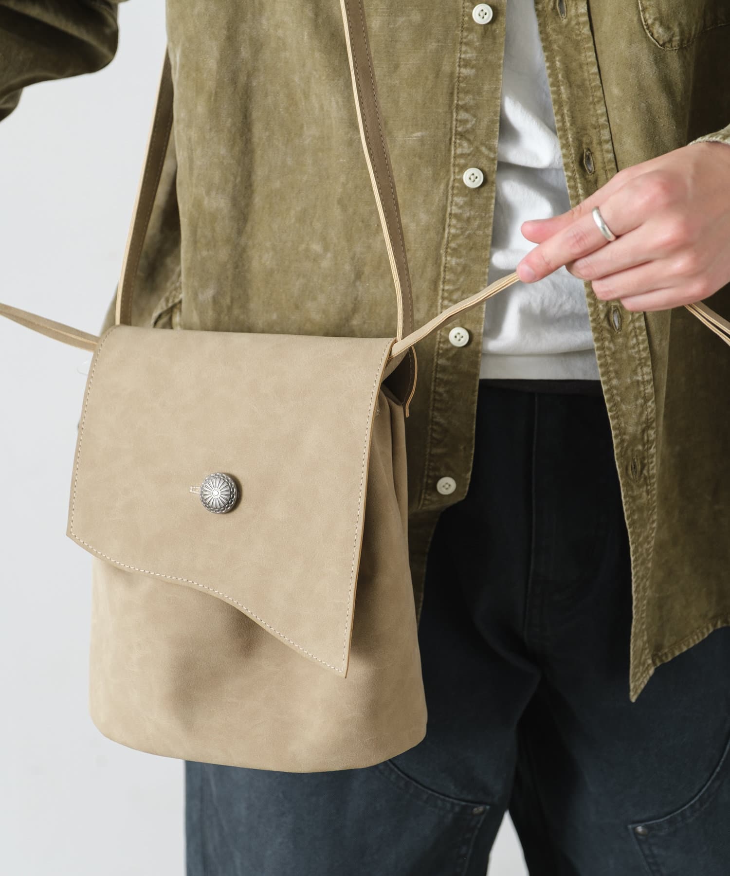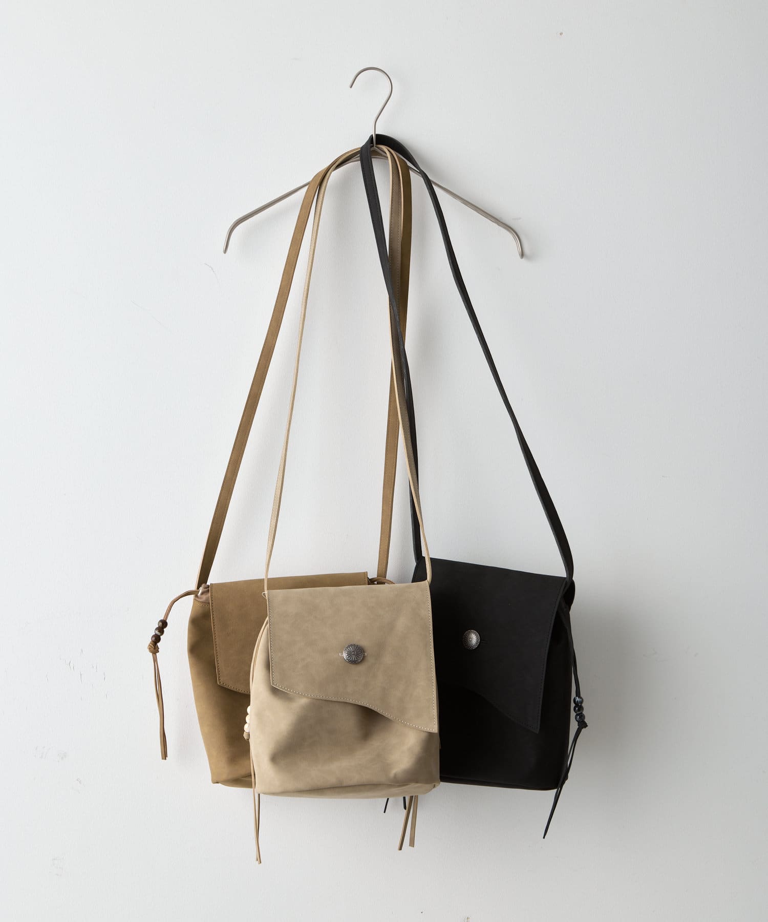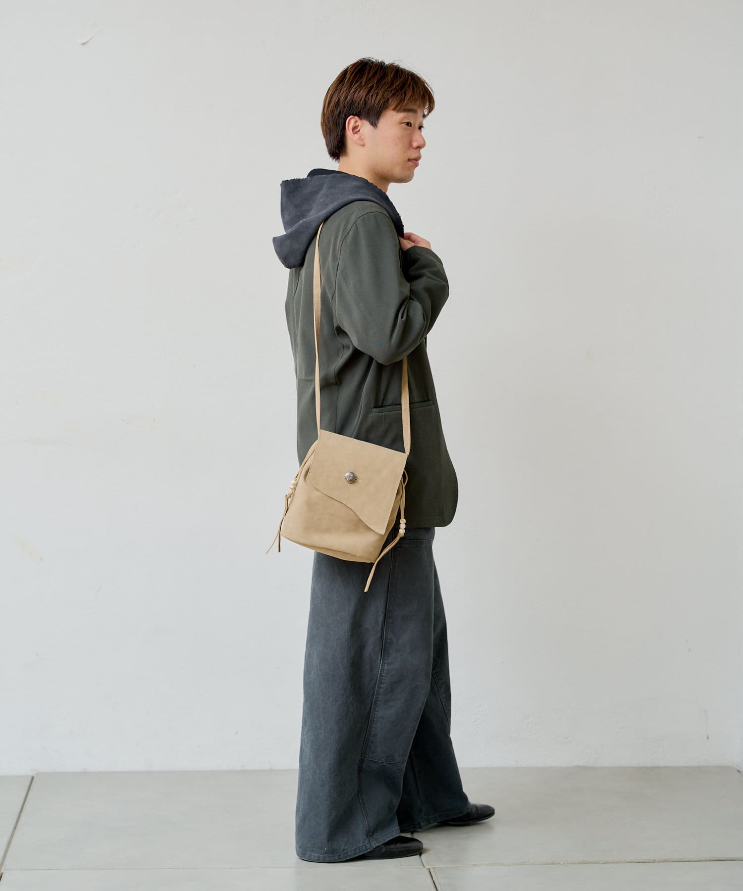 ヴィンテージメディスンバッグをサンプリングベースに程よい厚さのヴィーガンスウェードレザー生地を使用したスリングバッグです。