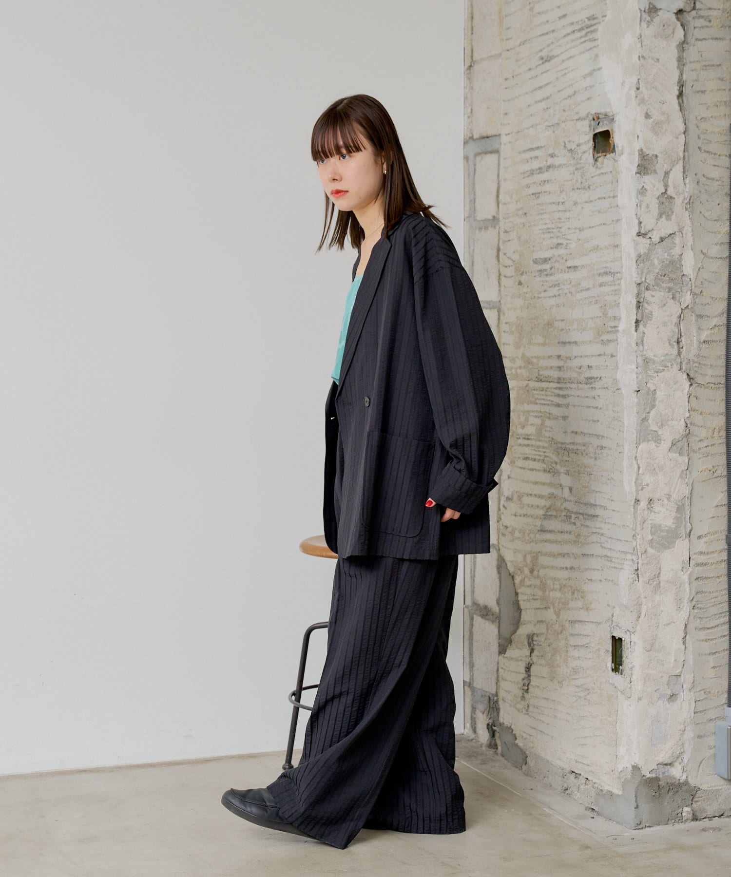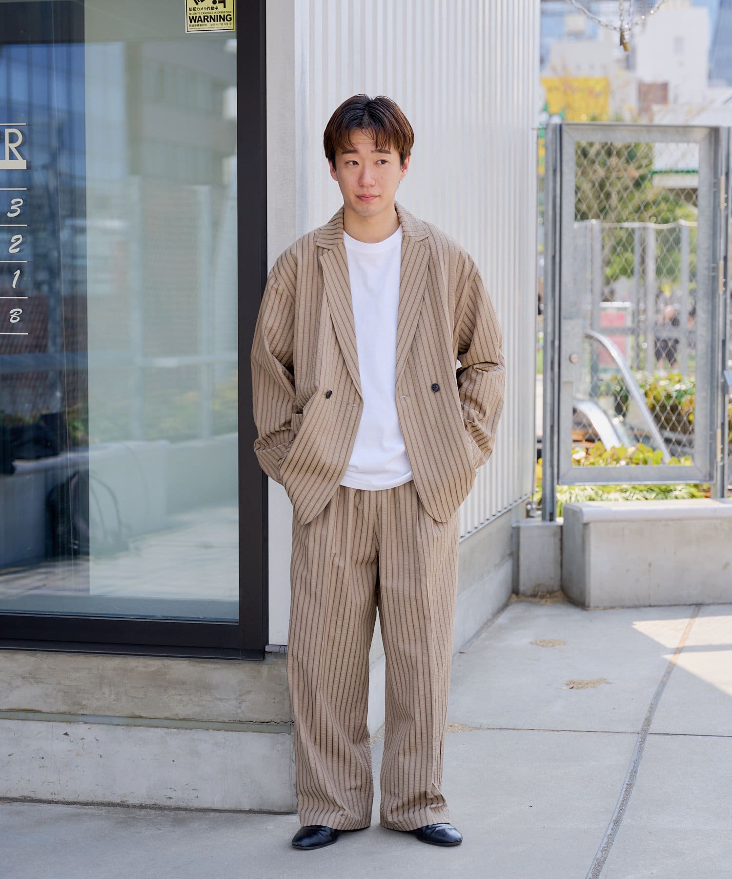 SEERSUCKER SRIPE DOUBLE BREASTED JACKET