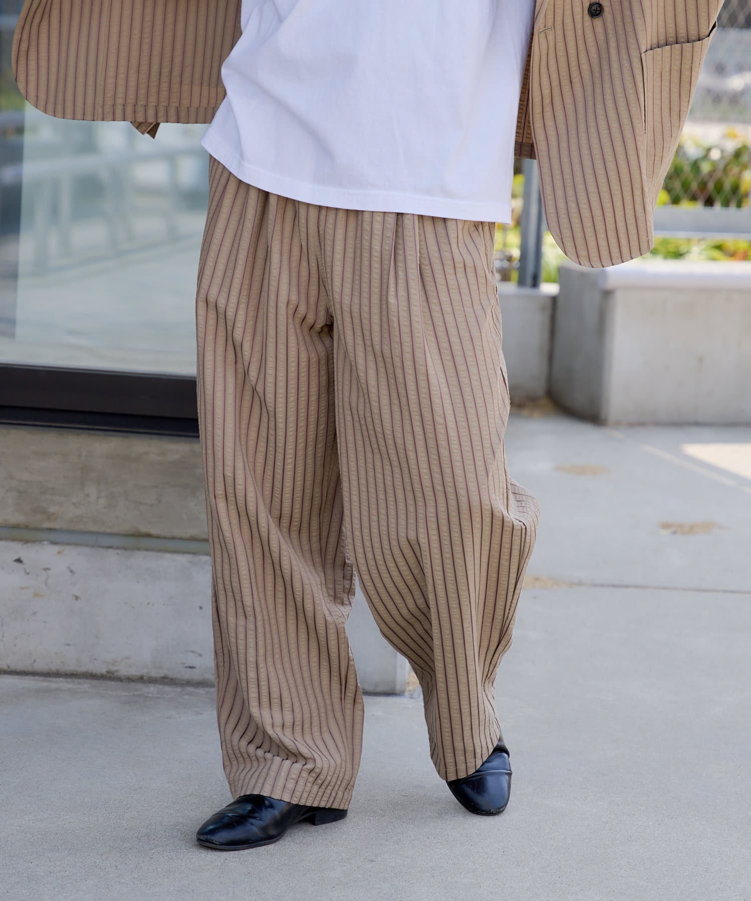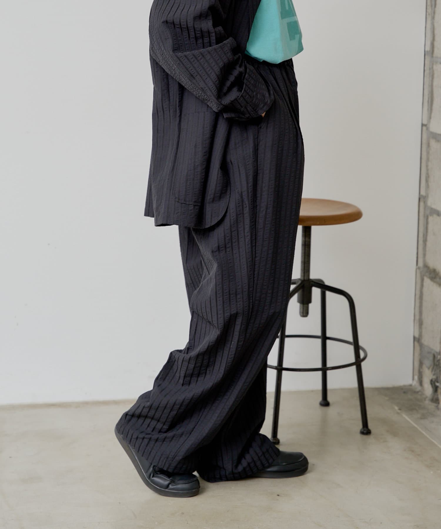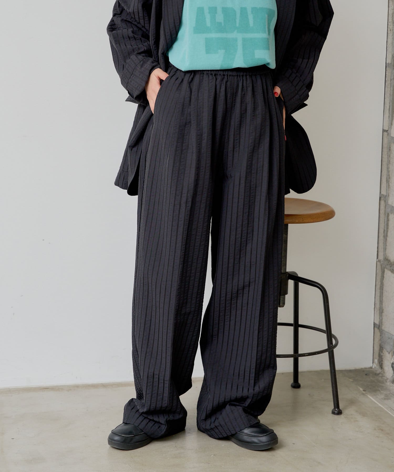 【UNISEX】SEERSUCKER SRIPE LOOSE FIT EASY SLACKS