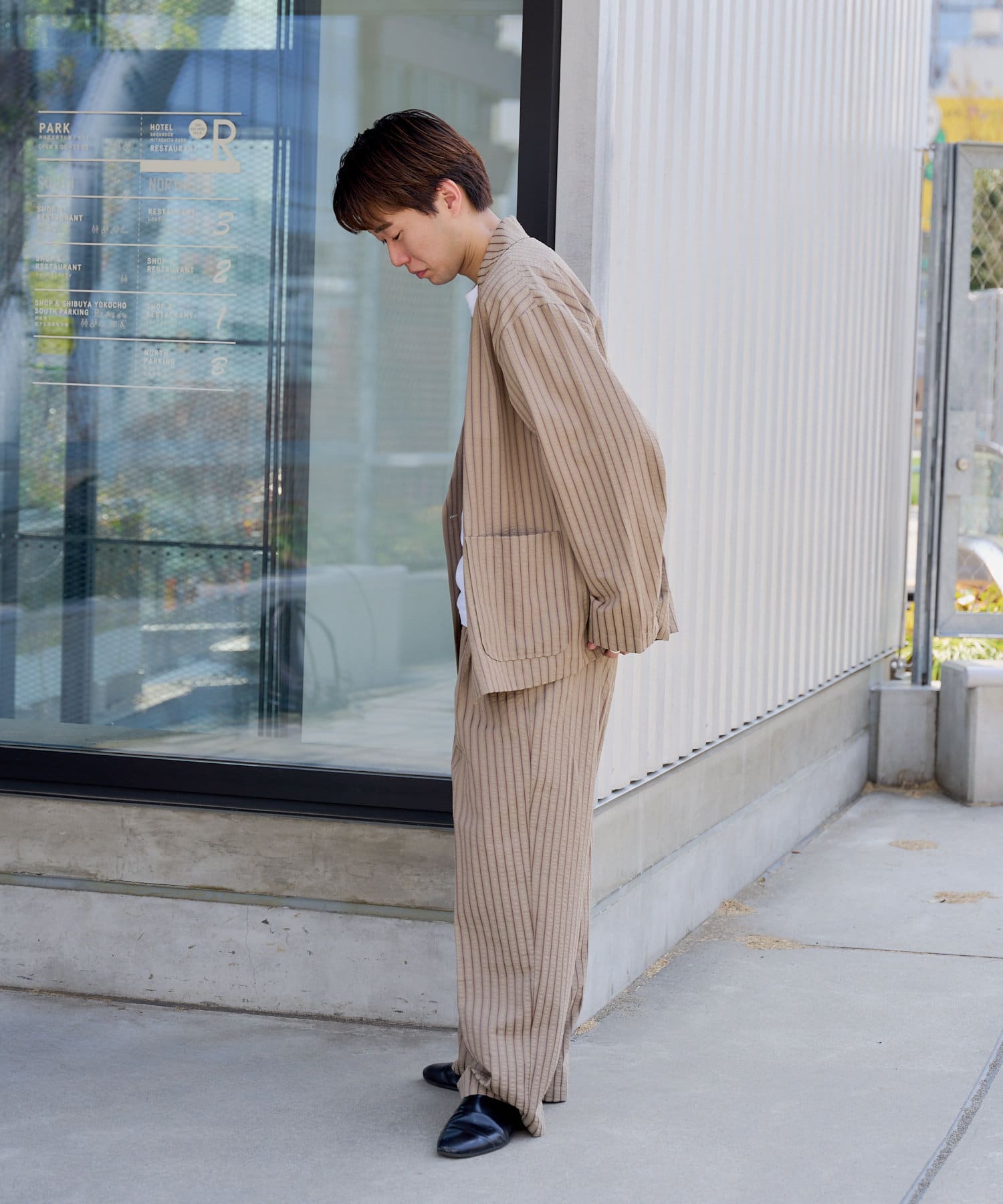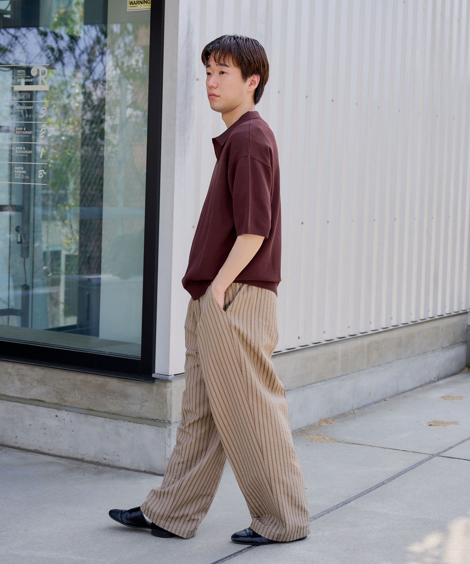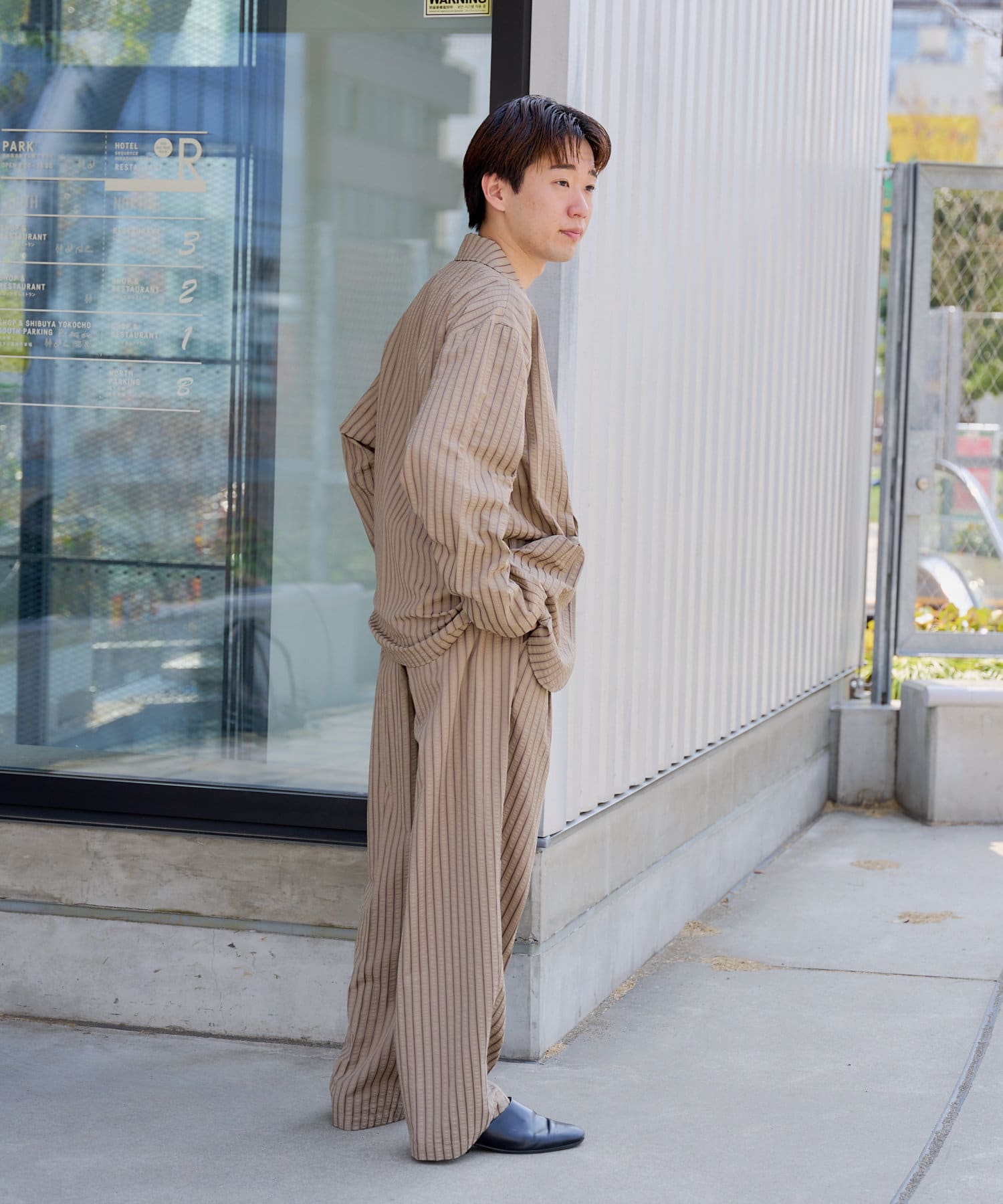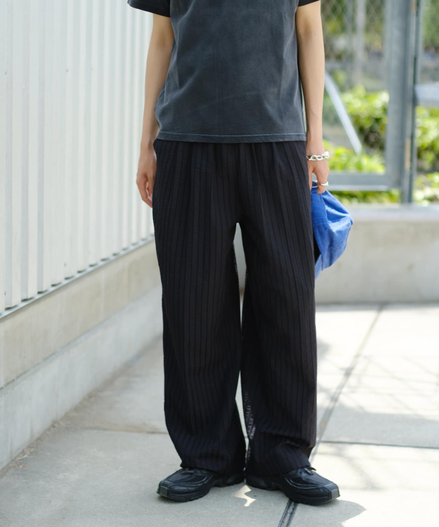 【UNISEX】SEERSUCKER SRIPE LOOSE FIT EASY SLACKS