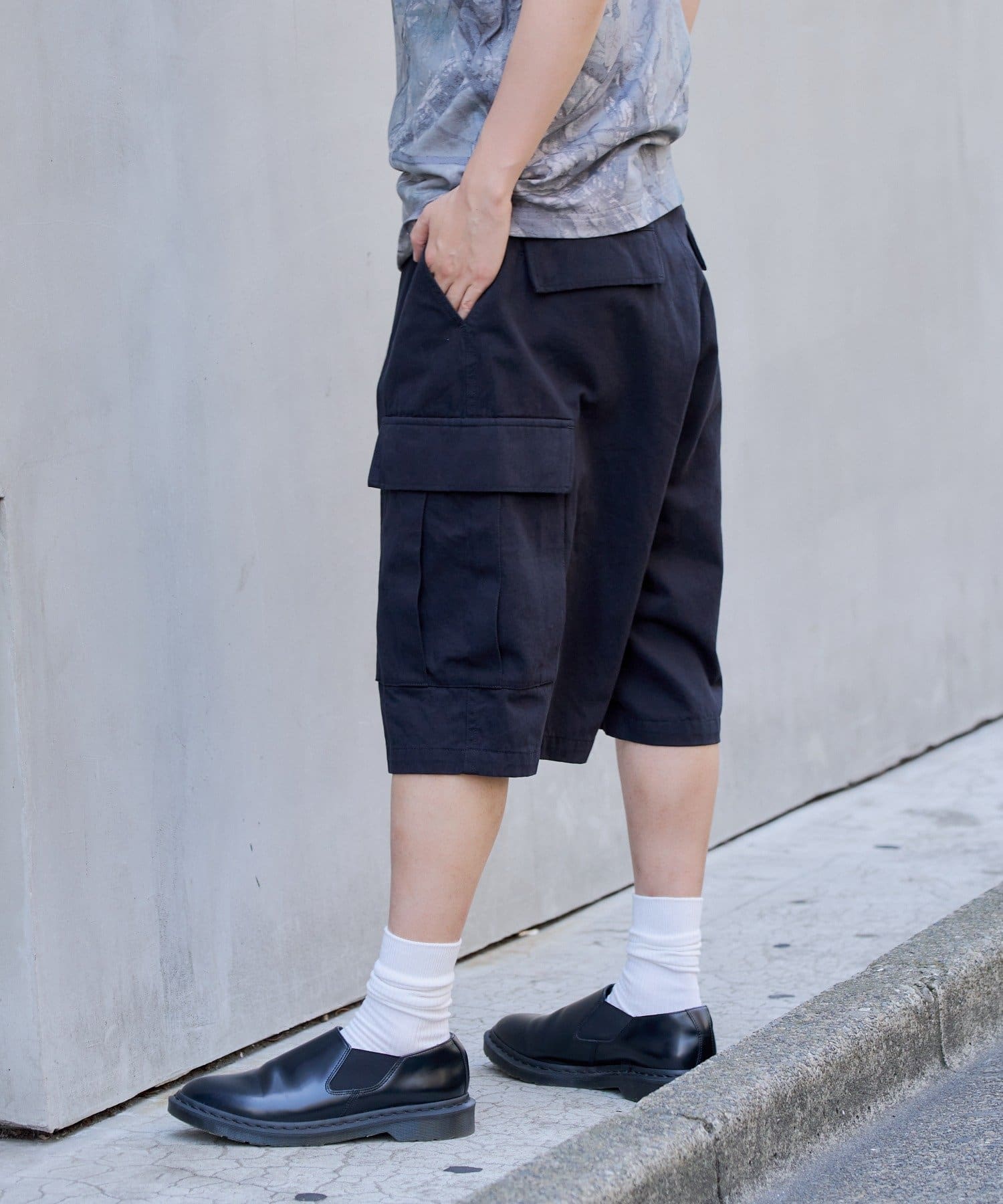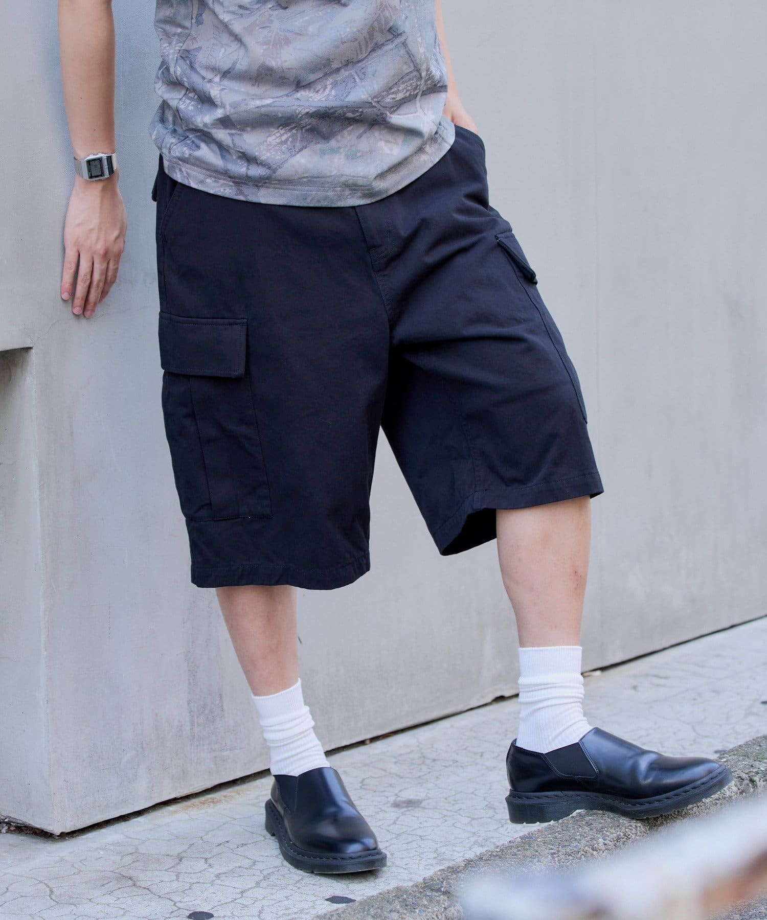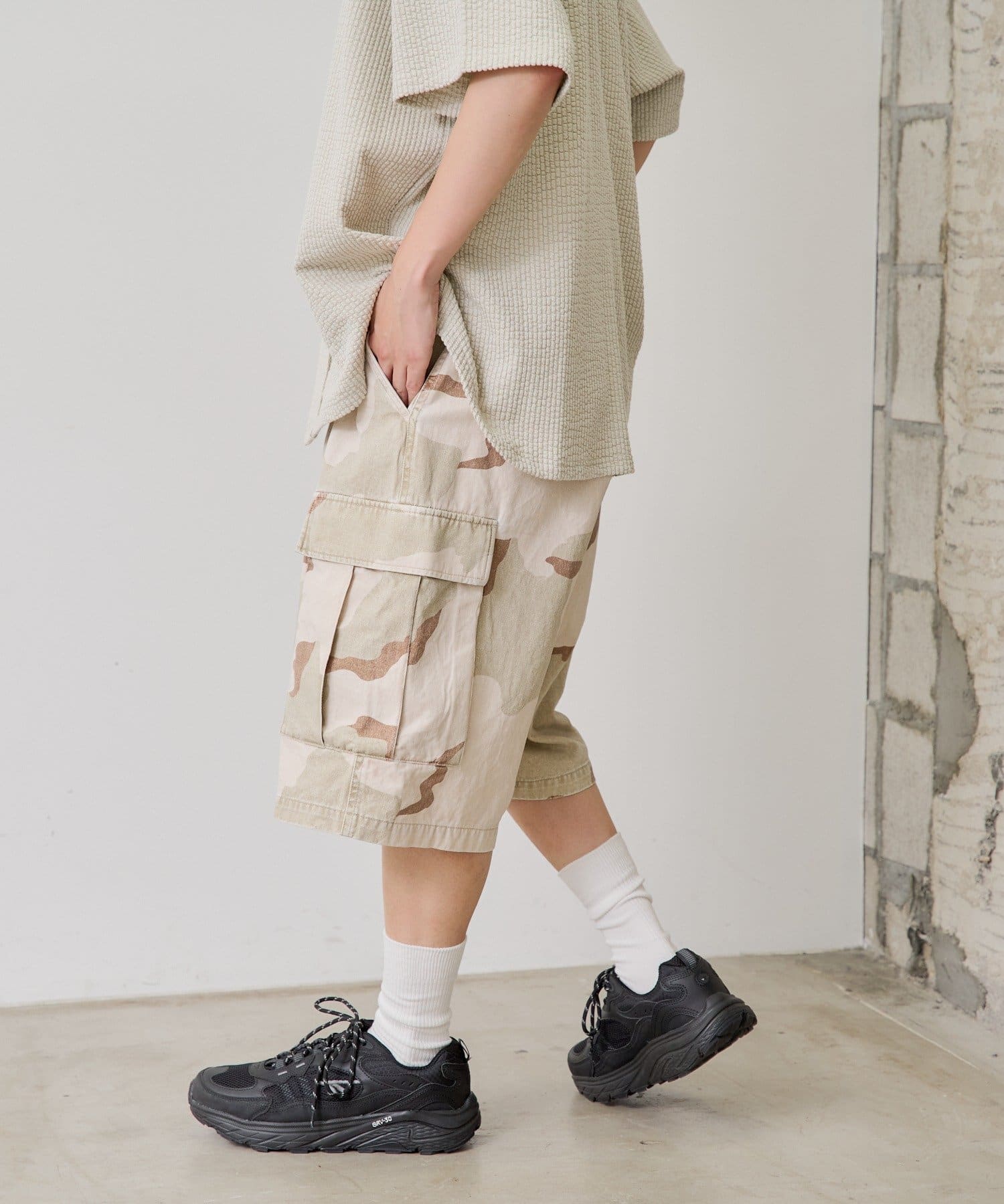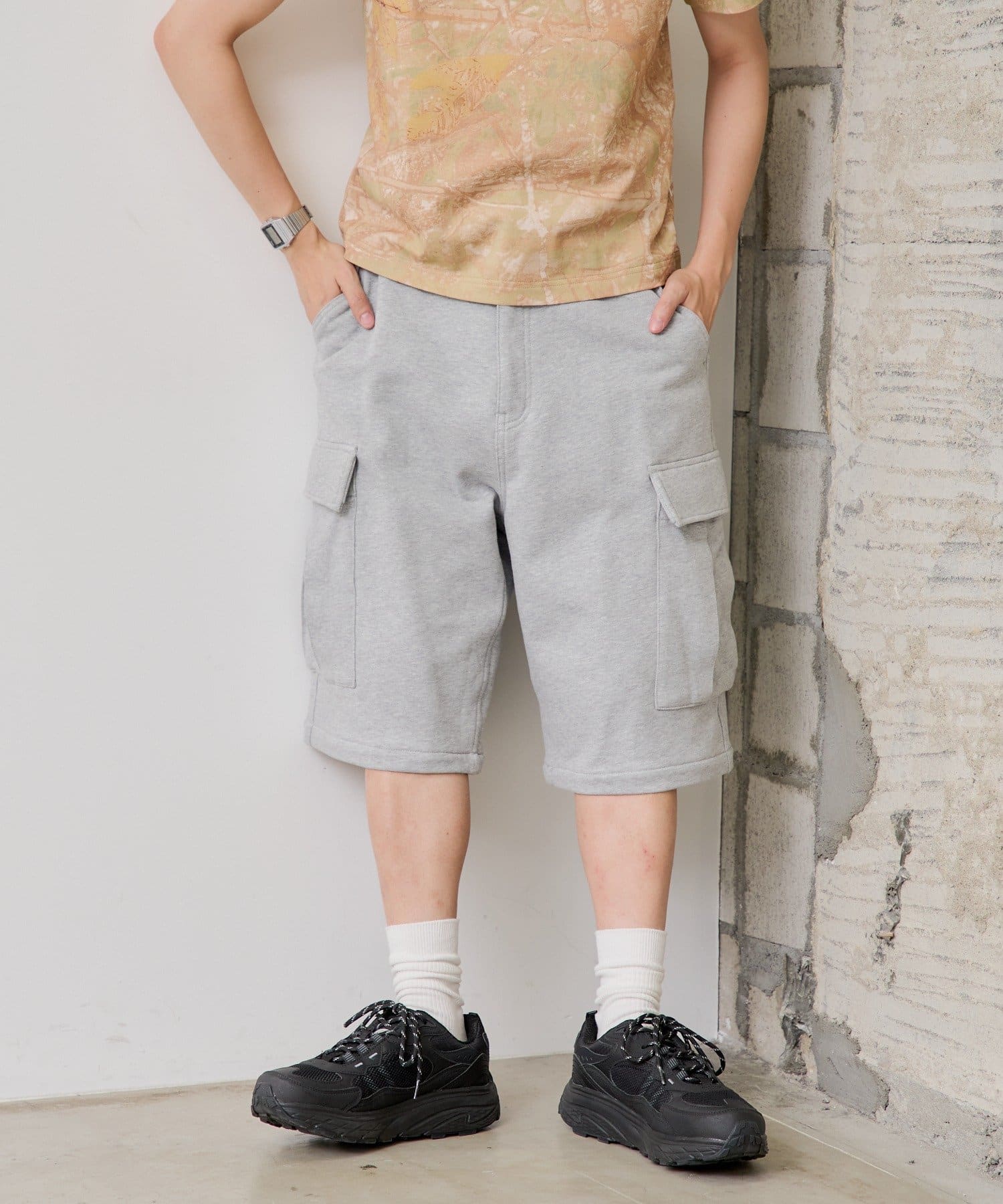 夏仕様のカーゴショートパンツ。普段着としてはもちろん、軽スポーツやアウトドアシーンにもぴったりです。