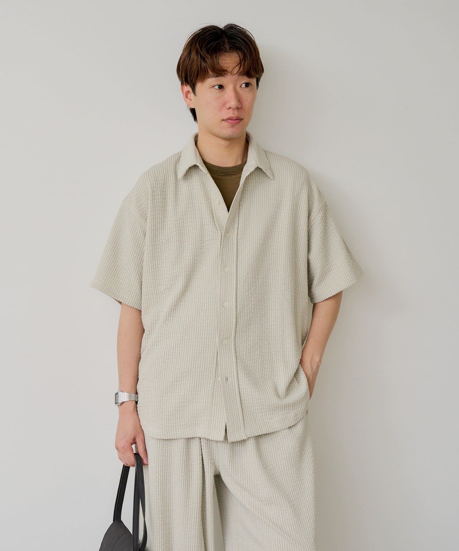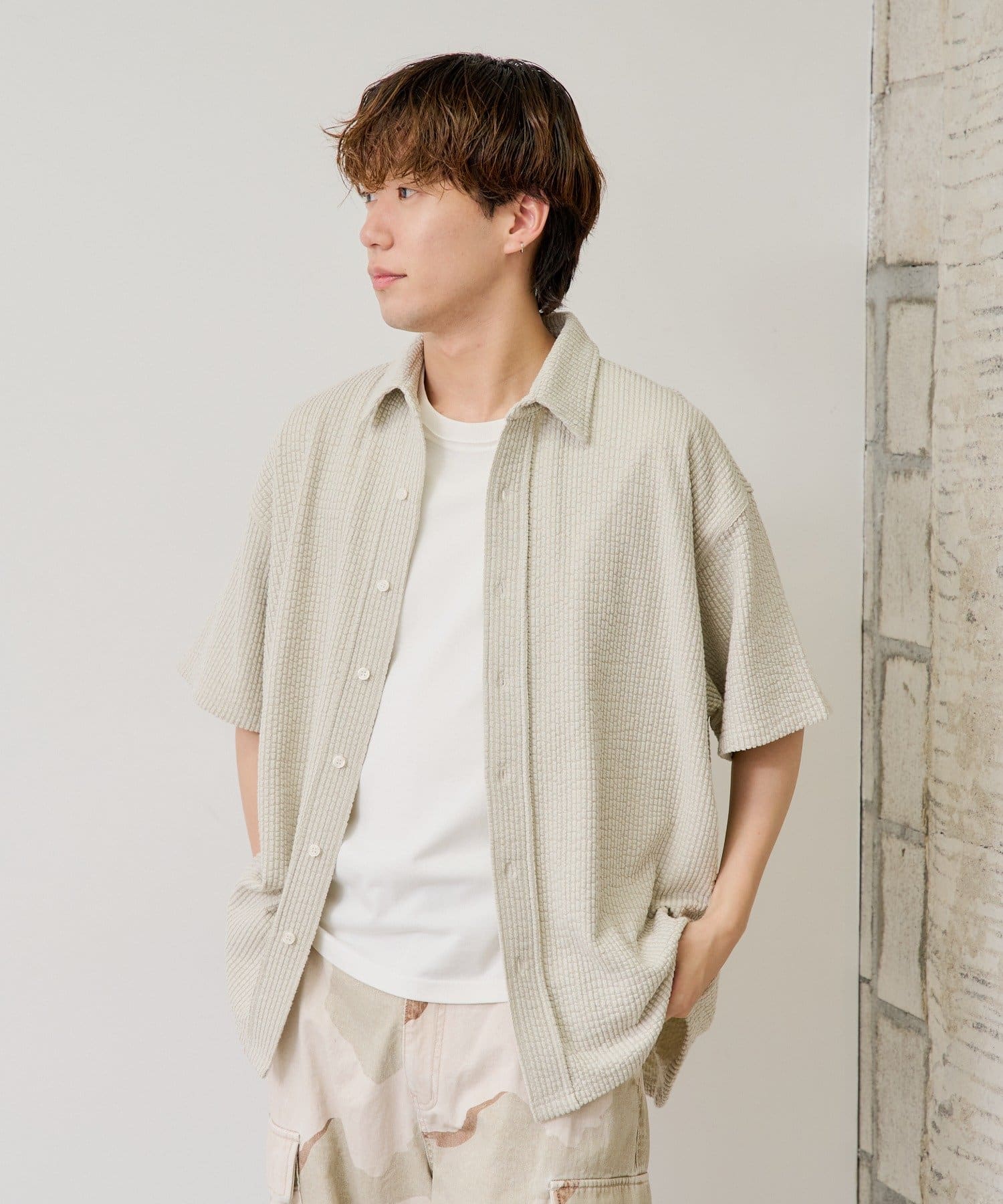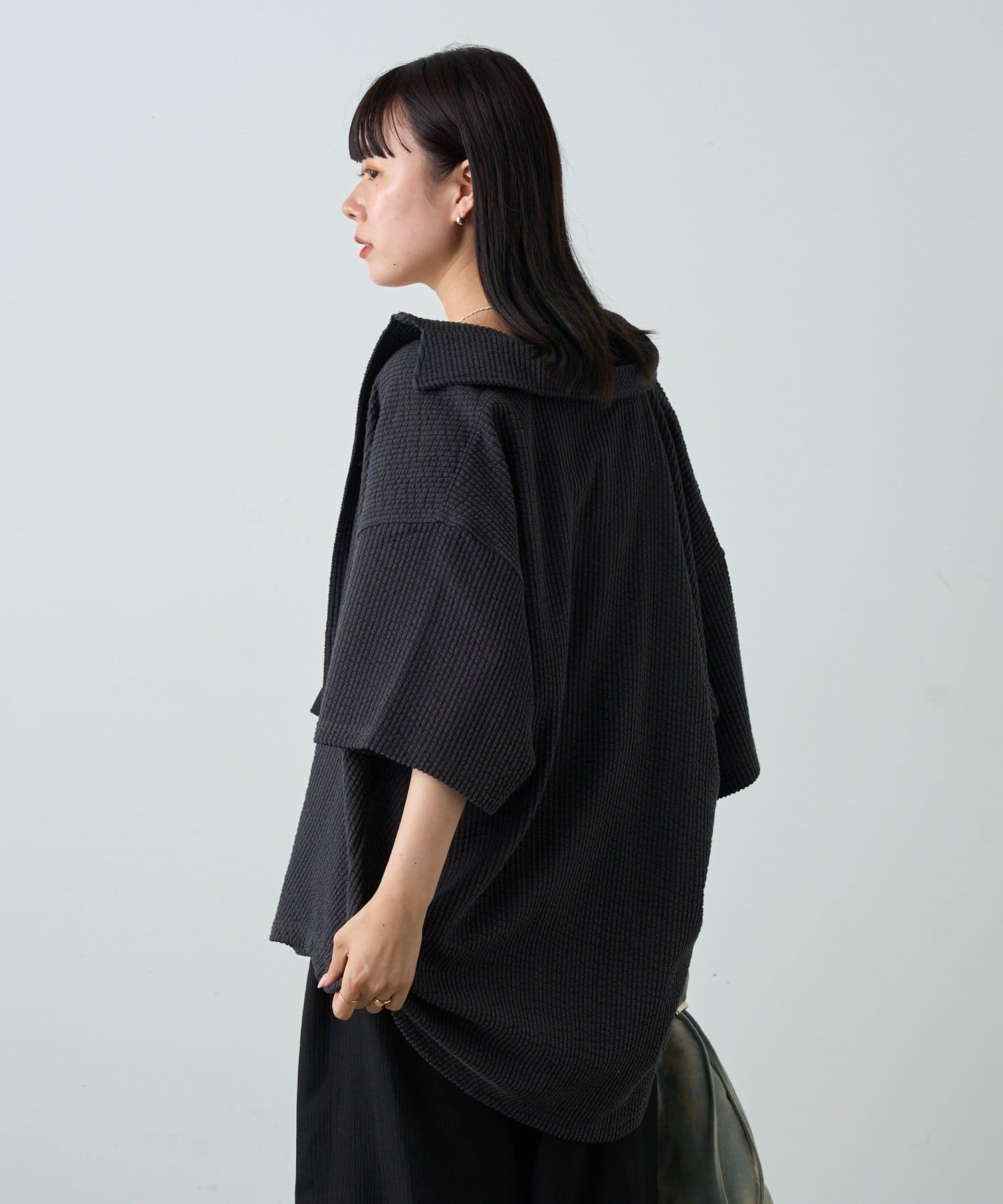 【UNISEX】STRETCH SEERSUCKER SHORT SLEEVE SHIRT