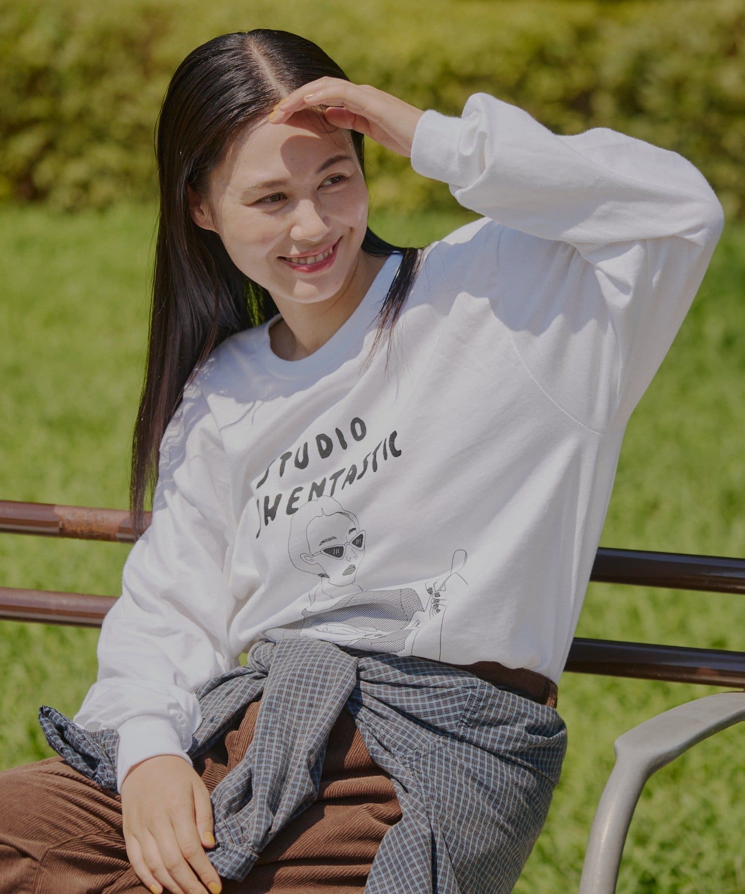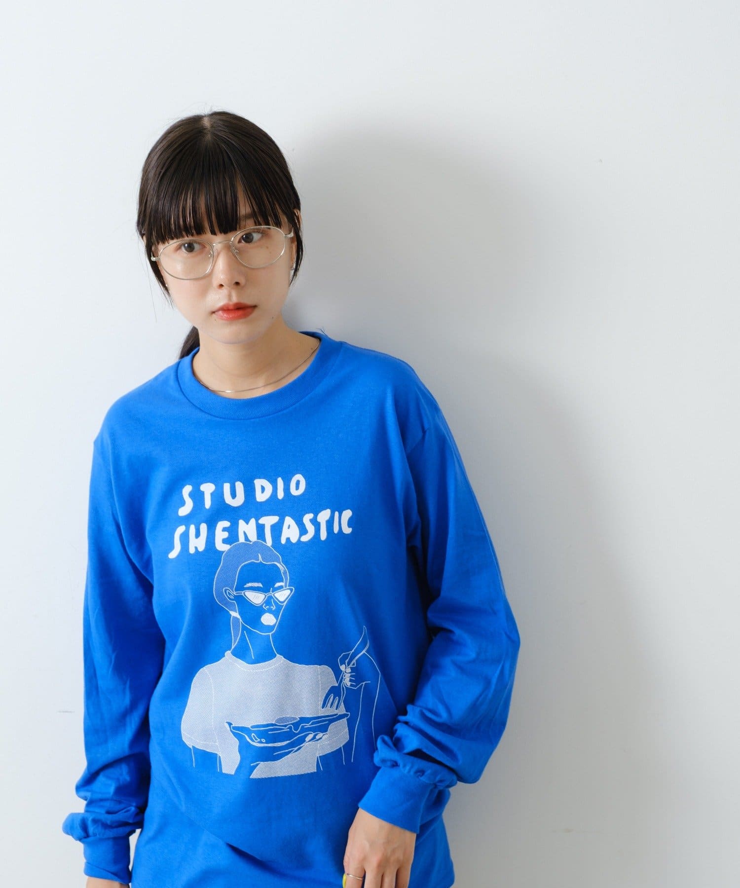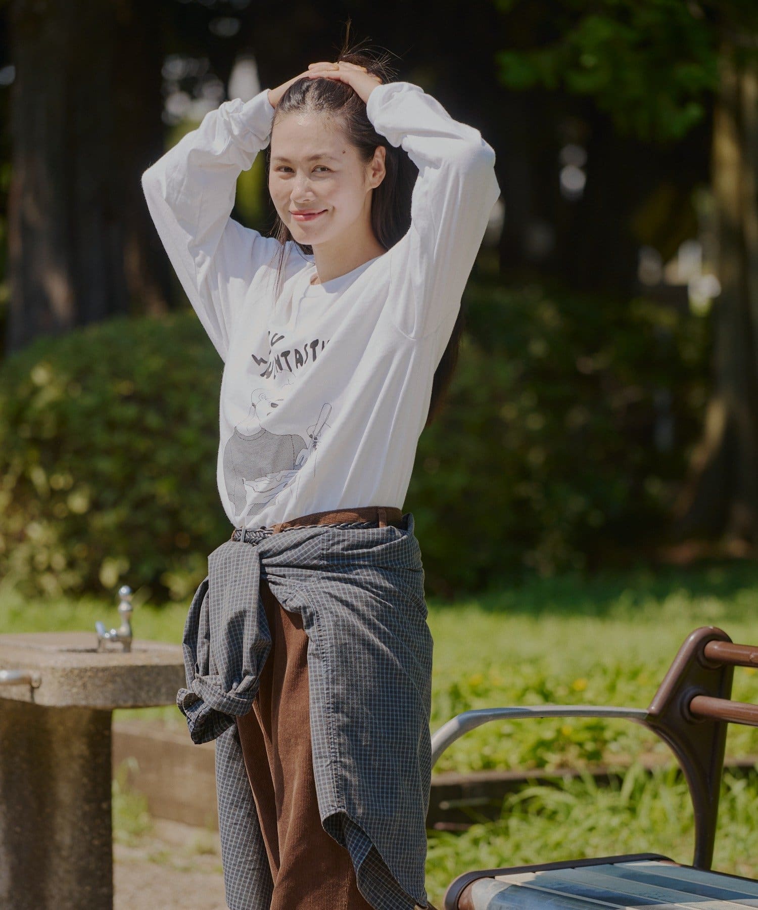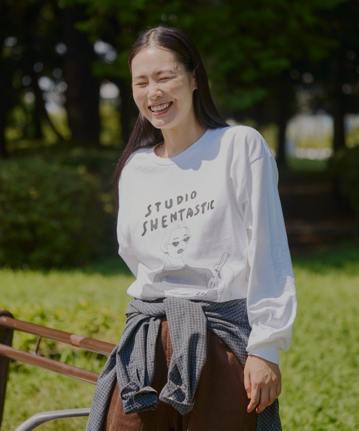 ファッションモデル 女優 イラストレーターとしてマルチに活躍している田中シェンさんがイラストを施したデザインのロングTシャツ。